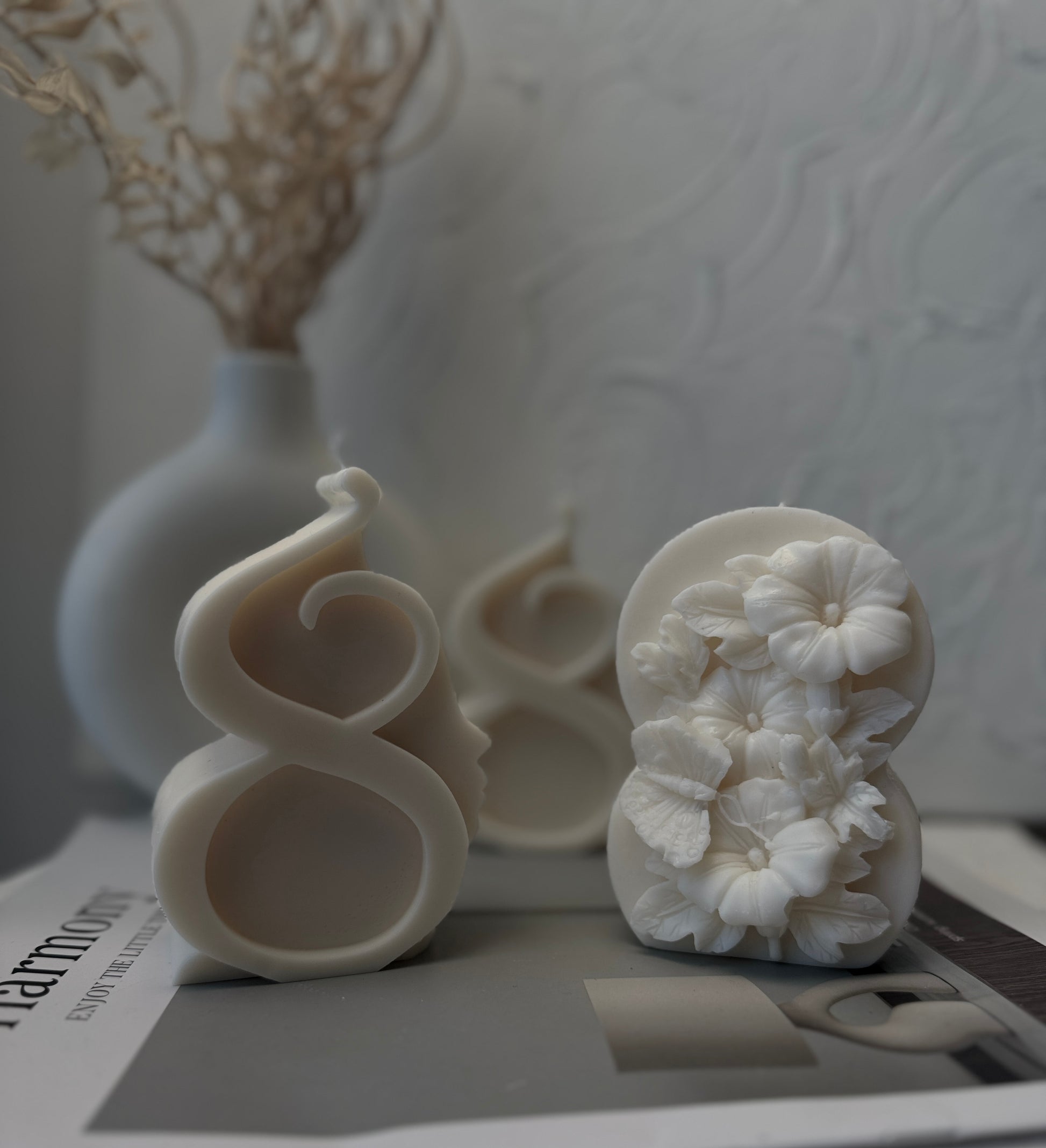 The number 8, symbol of infinity, rebirth, and balance, comes to life in our Infinity Collection. Handmade from natural soy wax, these sculptural candles are meaningful decorative pieces — elegant, symbolic, and timeless.
