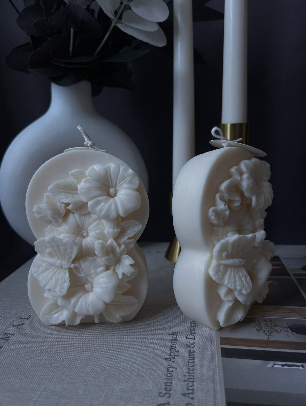 A sculptural candle featuring feminine profiles along the infinity curve — celebrating womanhood, balance, and strength.