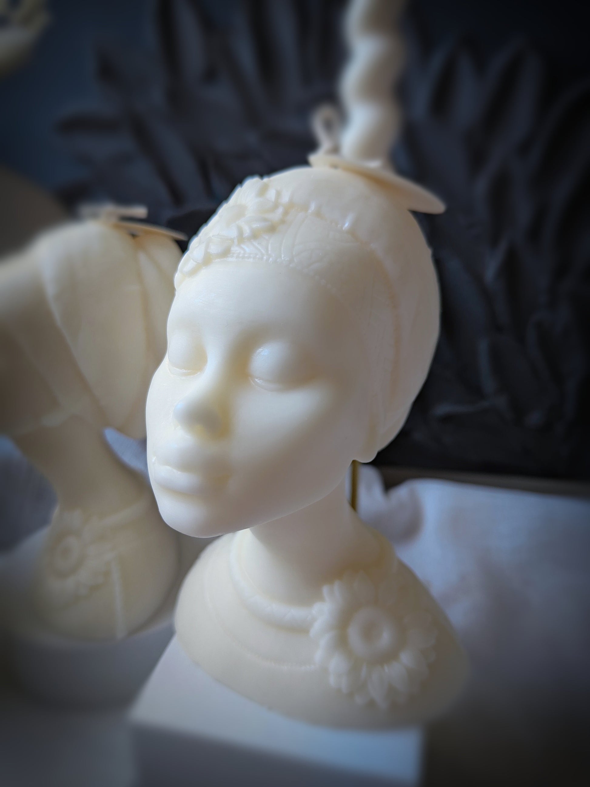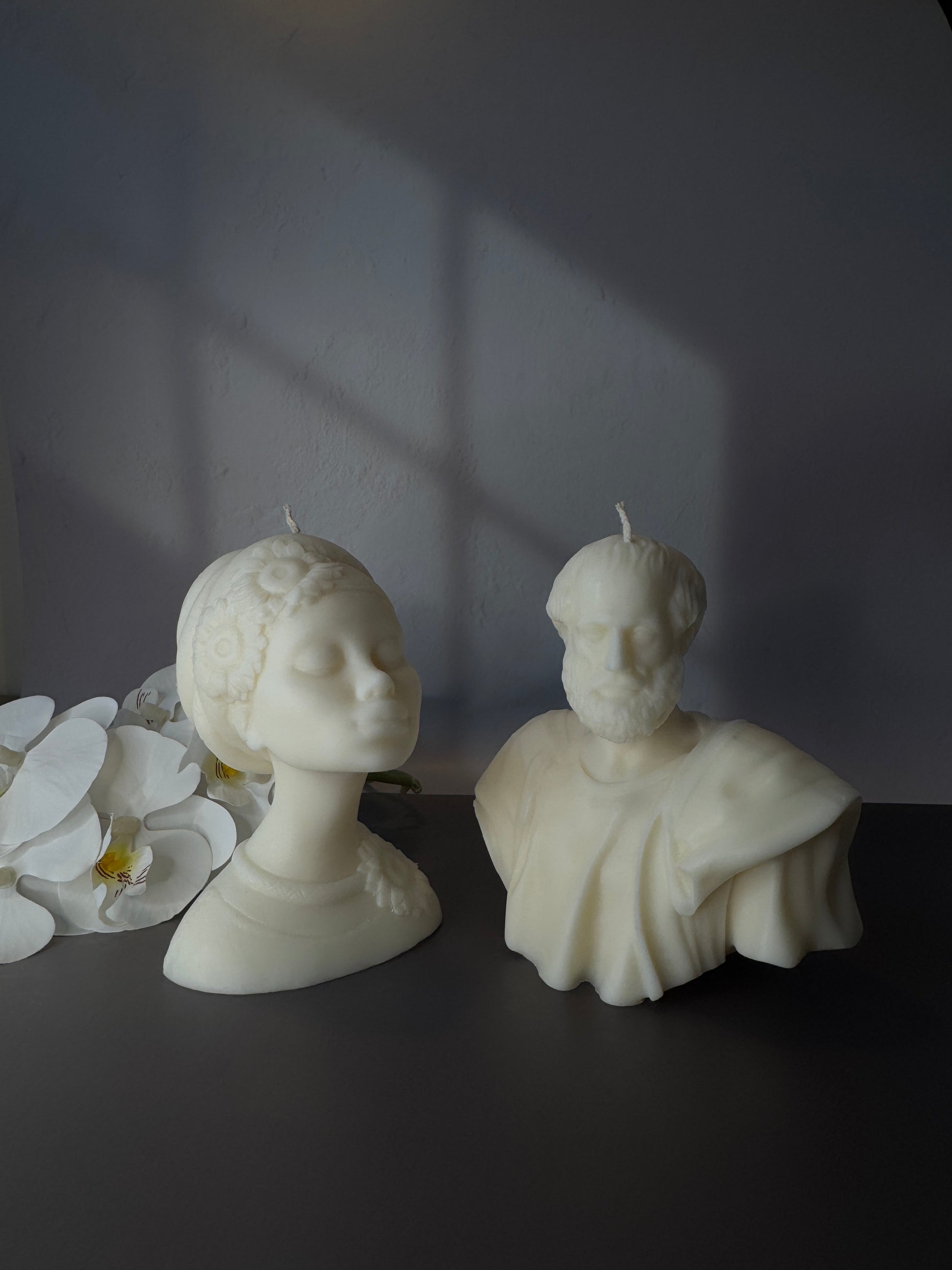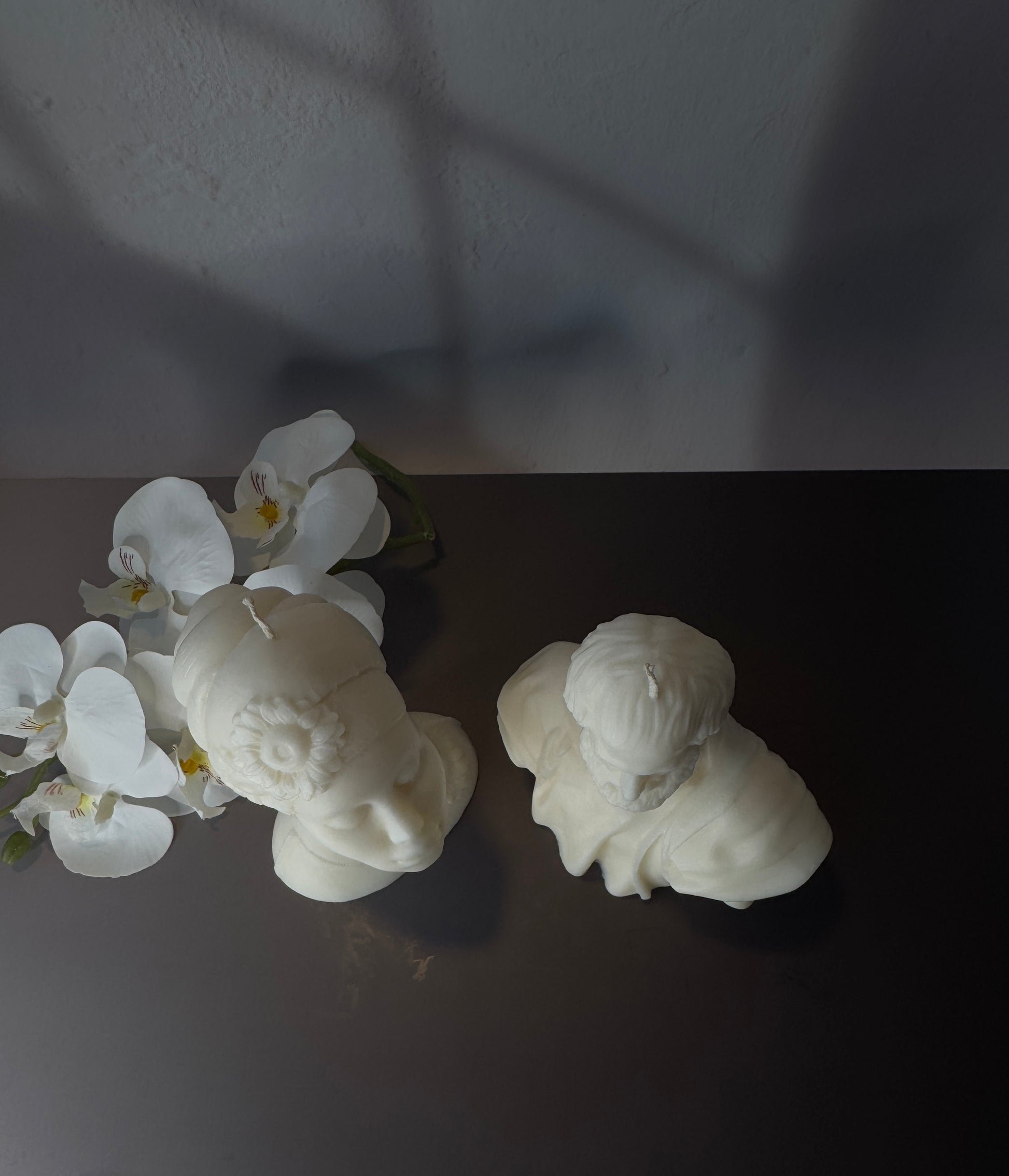 The Amara Candle from our Arche Collection draws on the immortal beauty of classical sculpture. This hand-crafted soy wax bust depicts a serene muse crowned with delicate flowers, her eyes gently closed as if lost in eternal peace. Amara’s presence exudes quiet strength and grace – a poetic tribute to unfading elegance. When lit, she casts a soft, warm glow, transforming any space into a gallery of tranquility and artful charm.