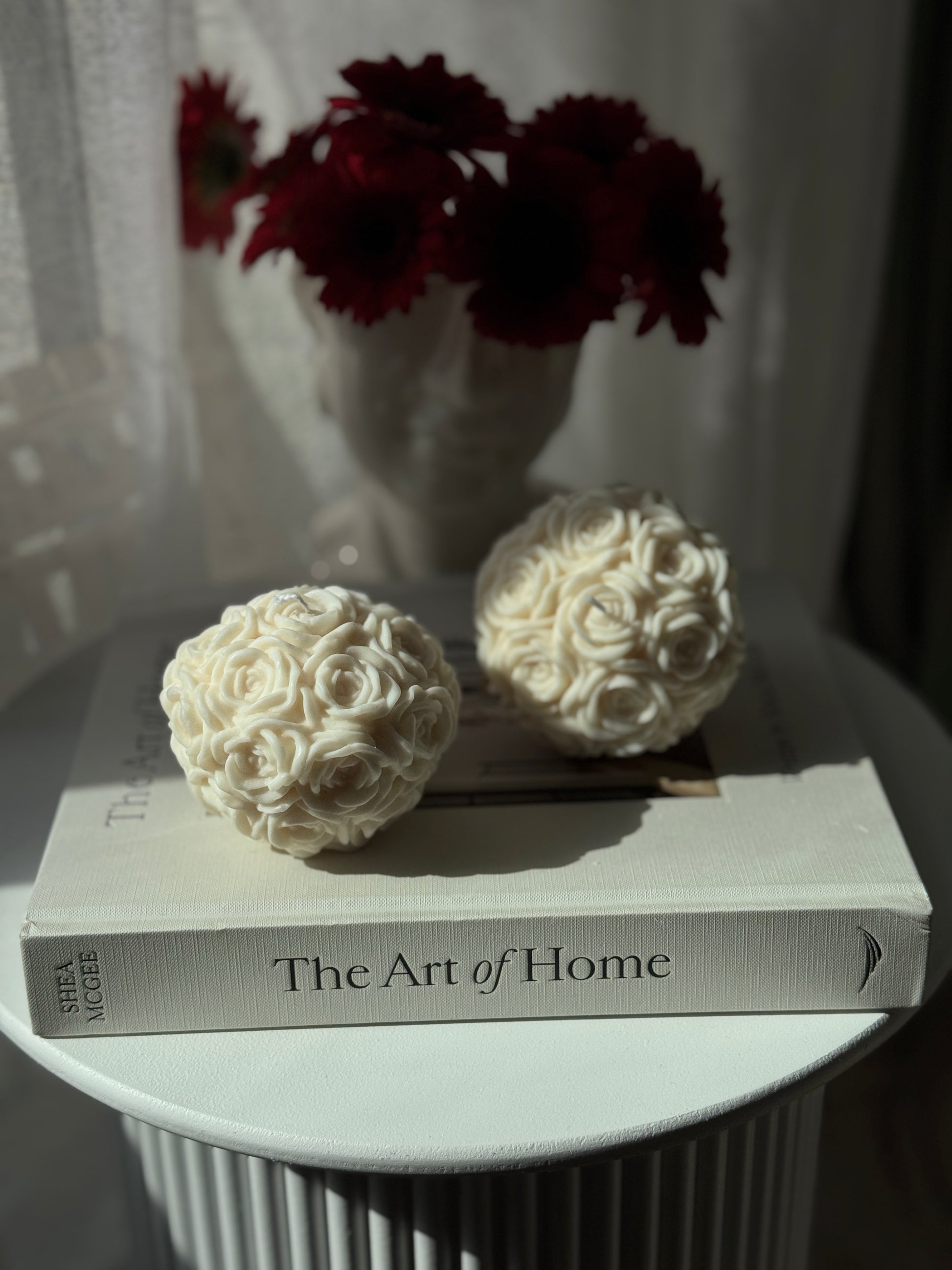 A delicate round rose candle fully wrapped in detailed petals — a symbol of love and softness, ideal as a decorative candle for special occasions.
