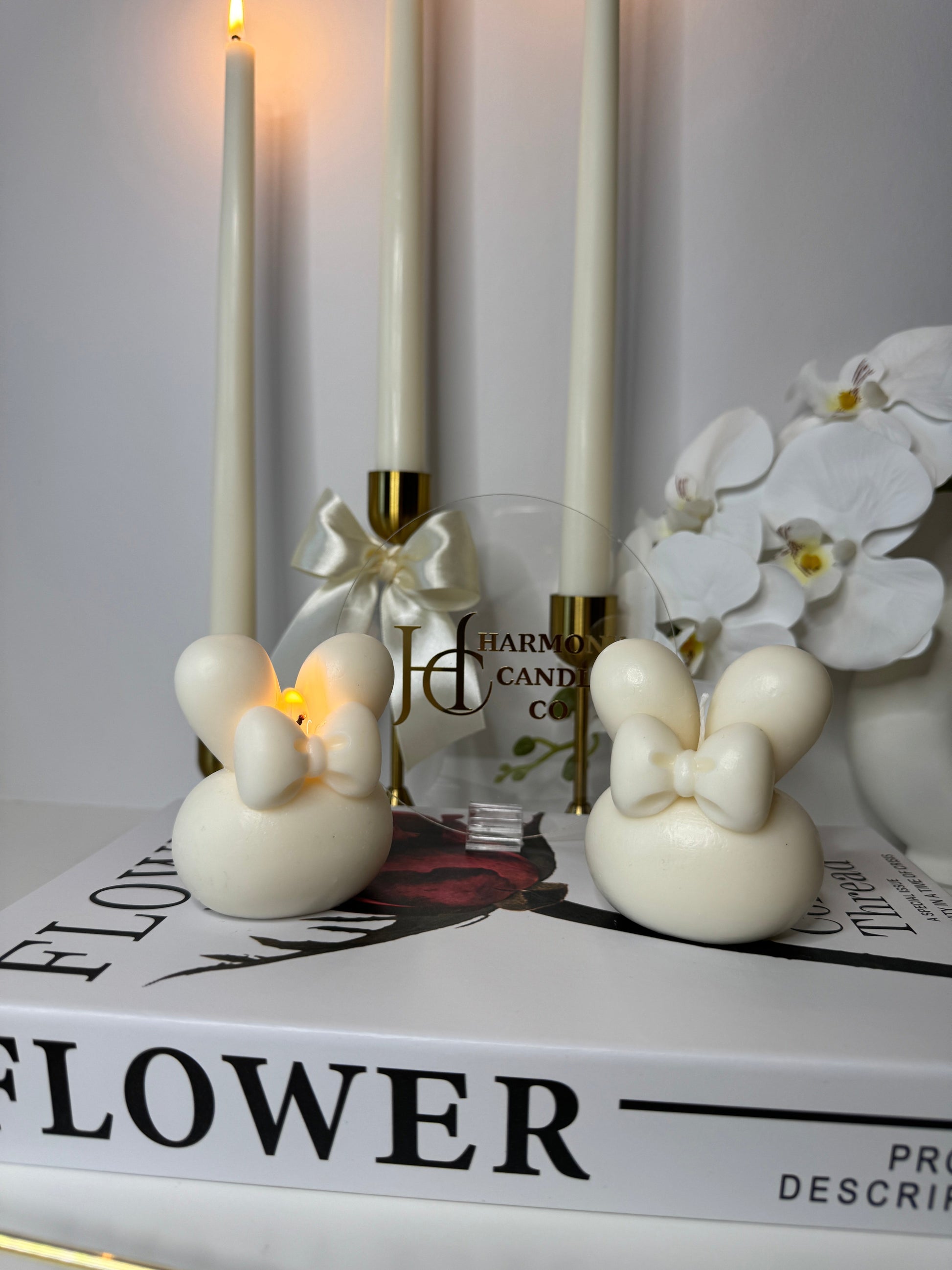 Handmade Eco-Friendly Soy Wax Bunny with Bow Sweet, sustainable, and oh-so-cute.