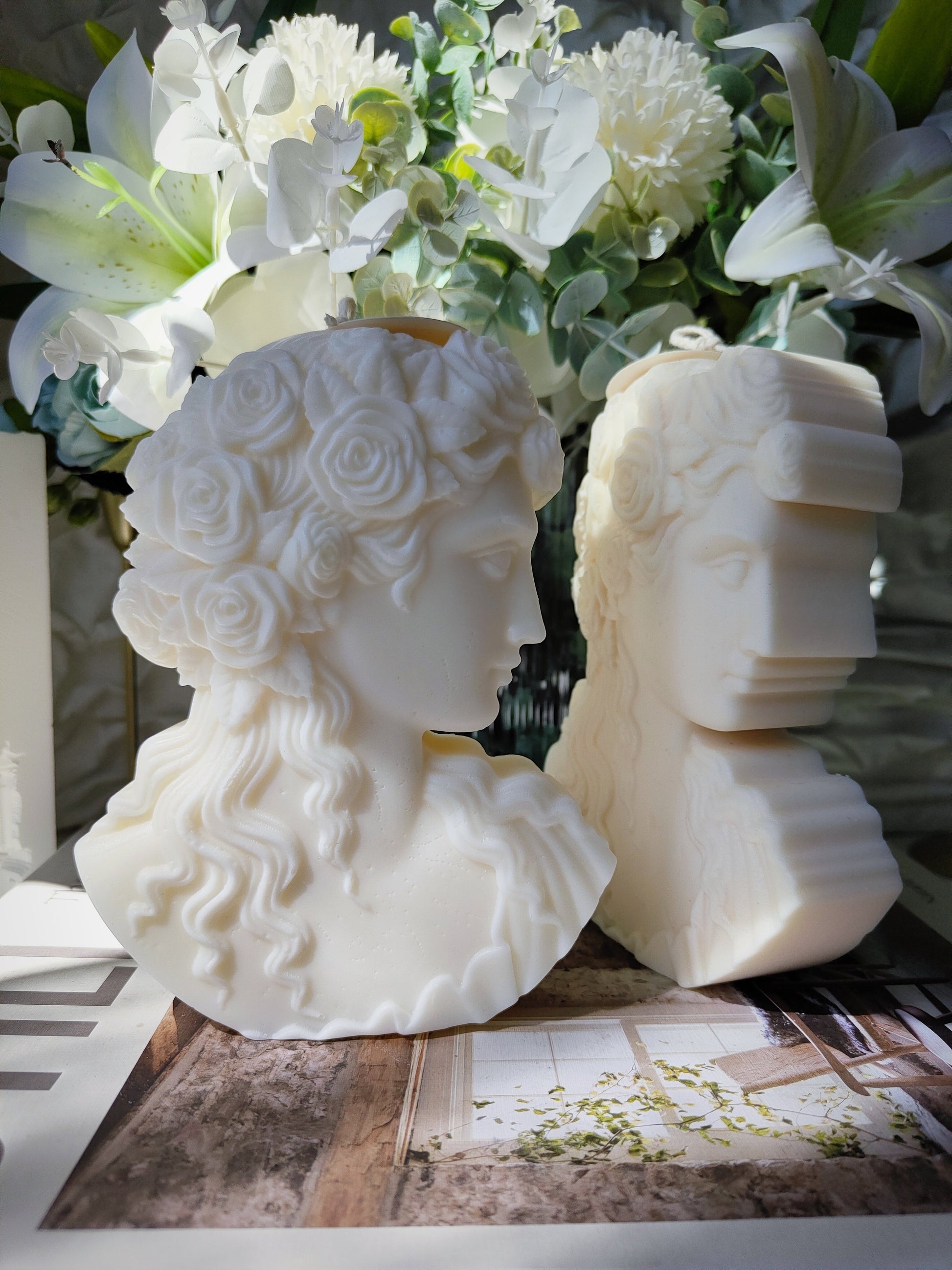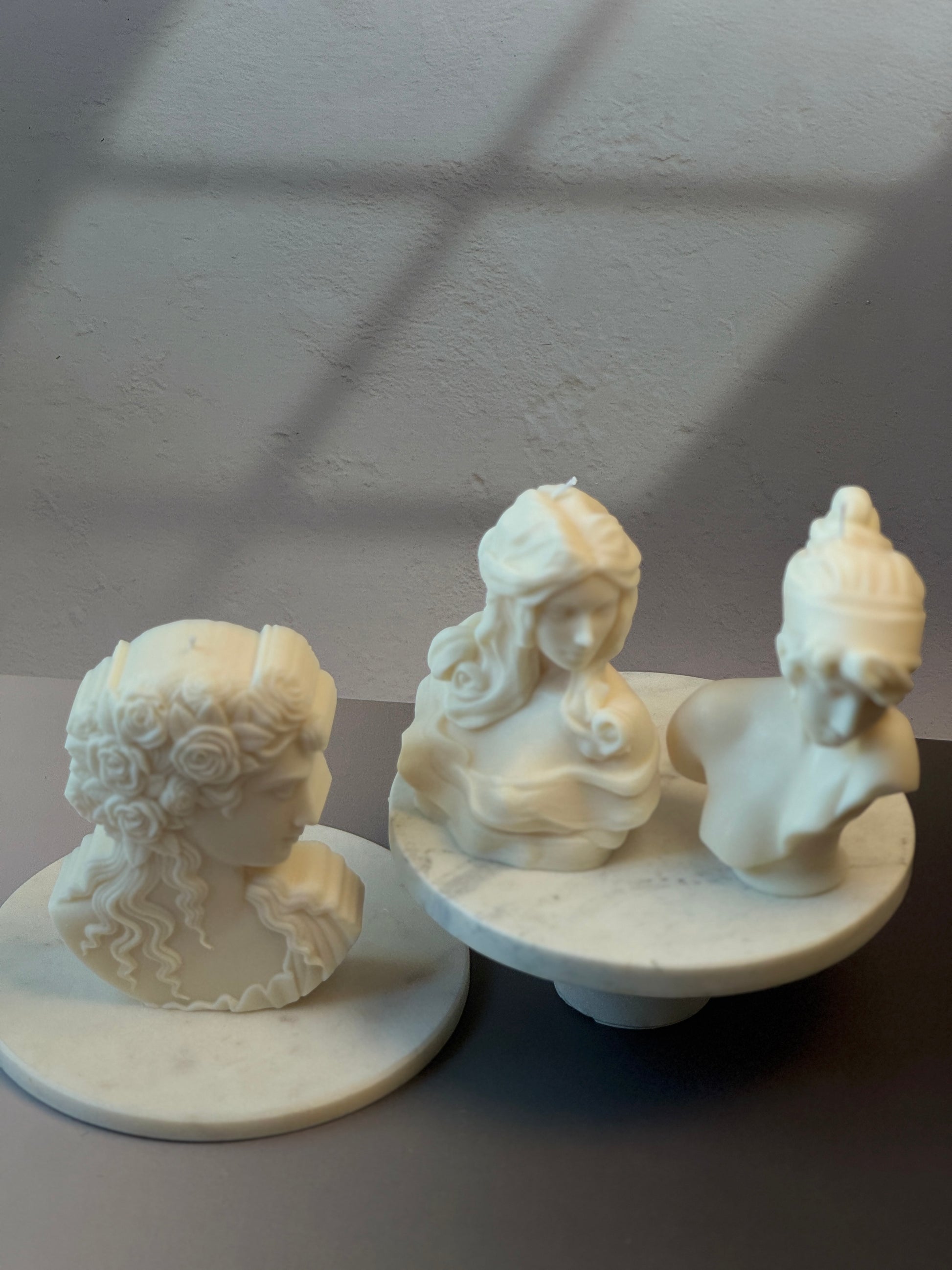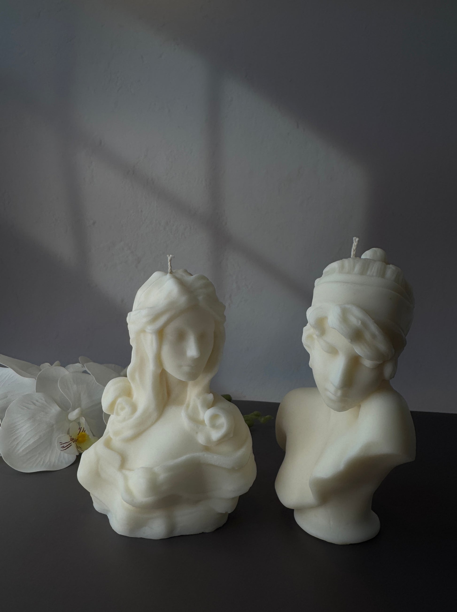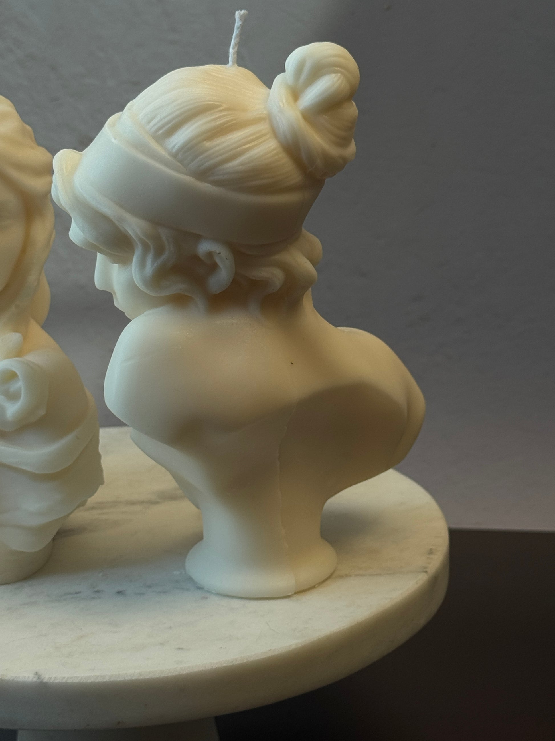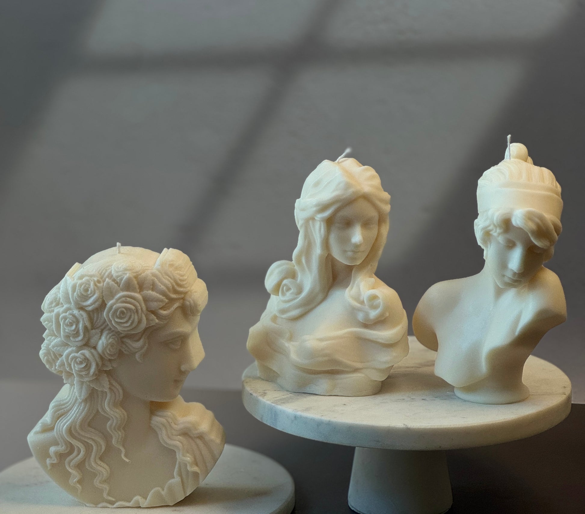 Step into timeless elegance with the Muse Collection – a trio of intricately sculpted bust candles that bring classical beauty and feminine strength into modern living. Each figure is hand-poured from eco-friendly soy wax, capturing soft facial expressions, flowing hair, and fine details in poetic form.