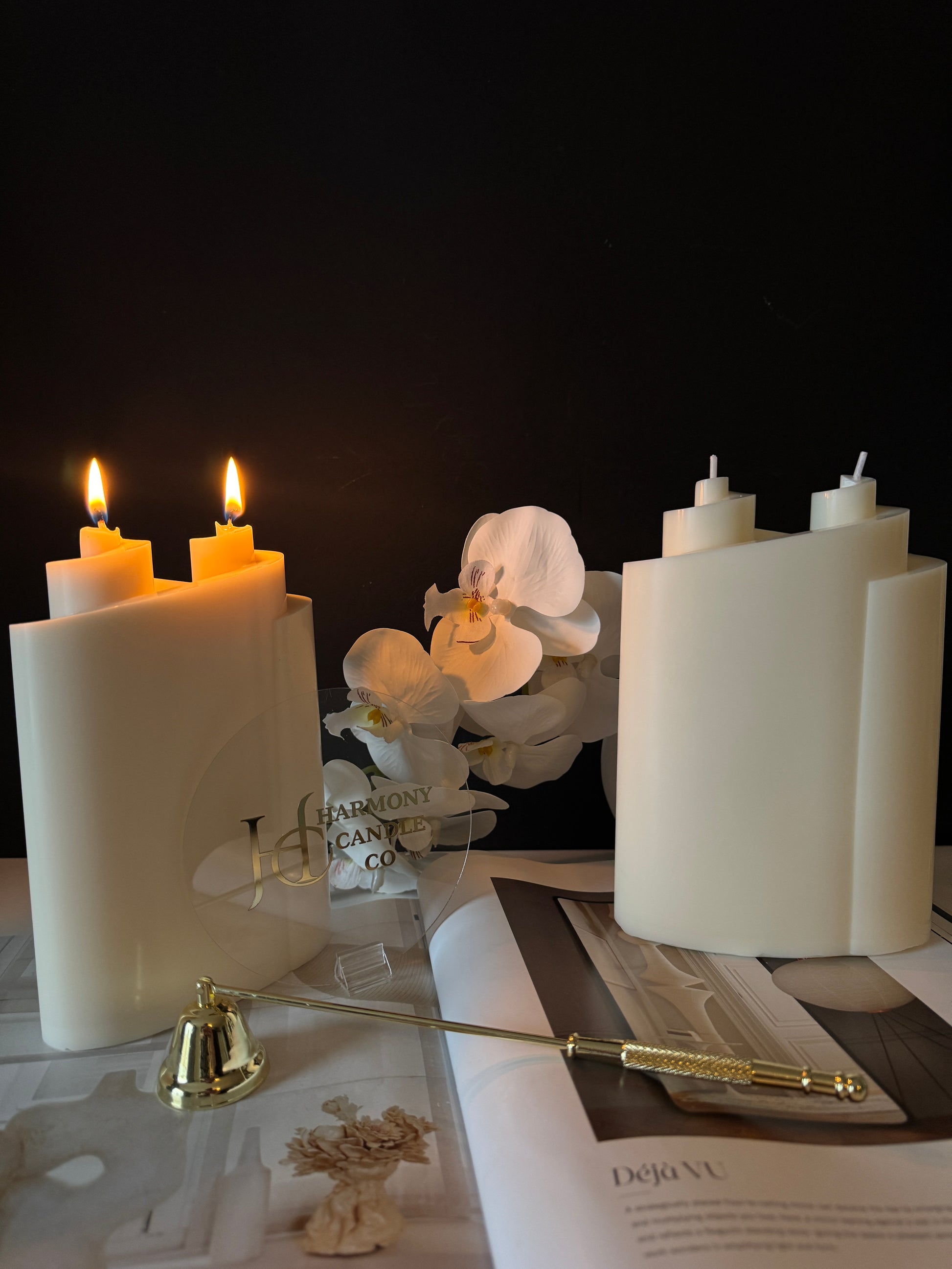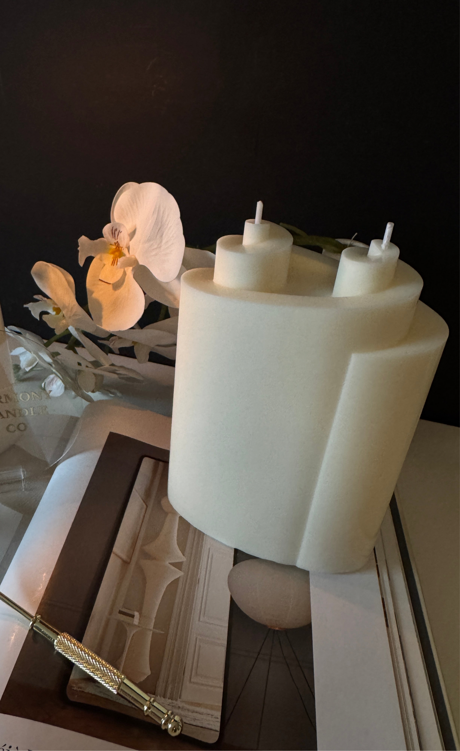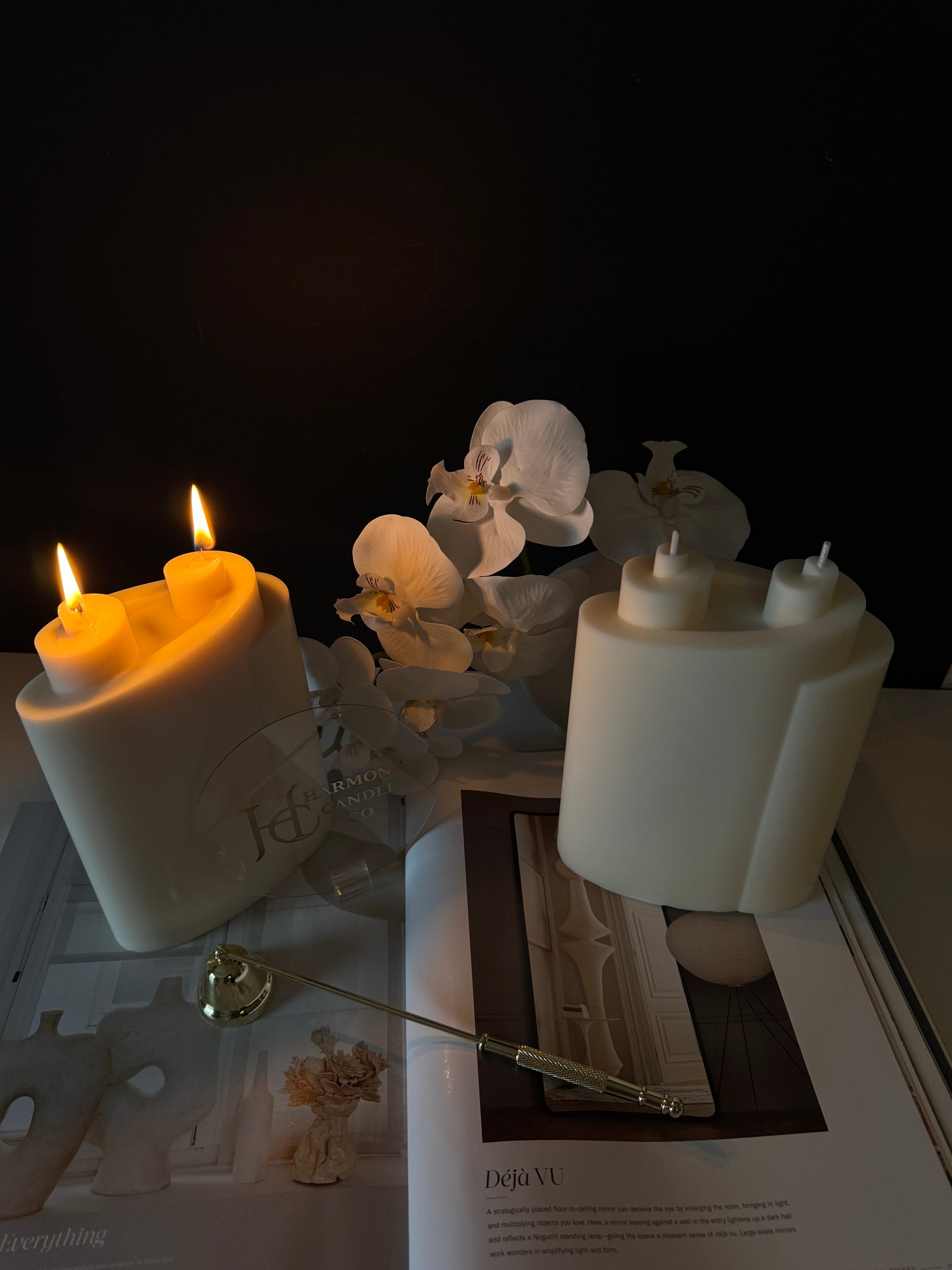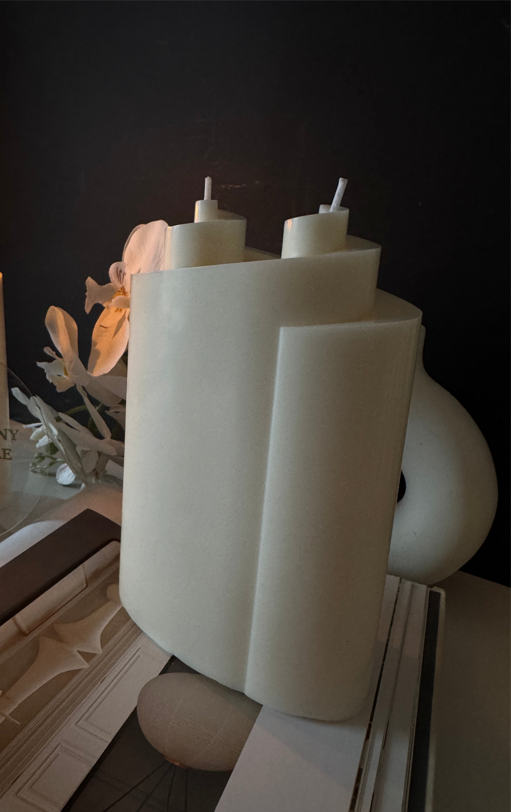 A striking sculptural piece, the Déjà Vu Candle captivates with its modern, layered silhouette and soft ivory soy wax. Each curve and edge is handcrafted to evoke an artistic, architectural feel — a perfect statement for minimalist interiors or as a luxurious accent on your table.