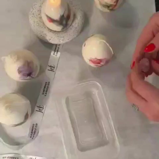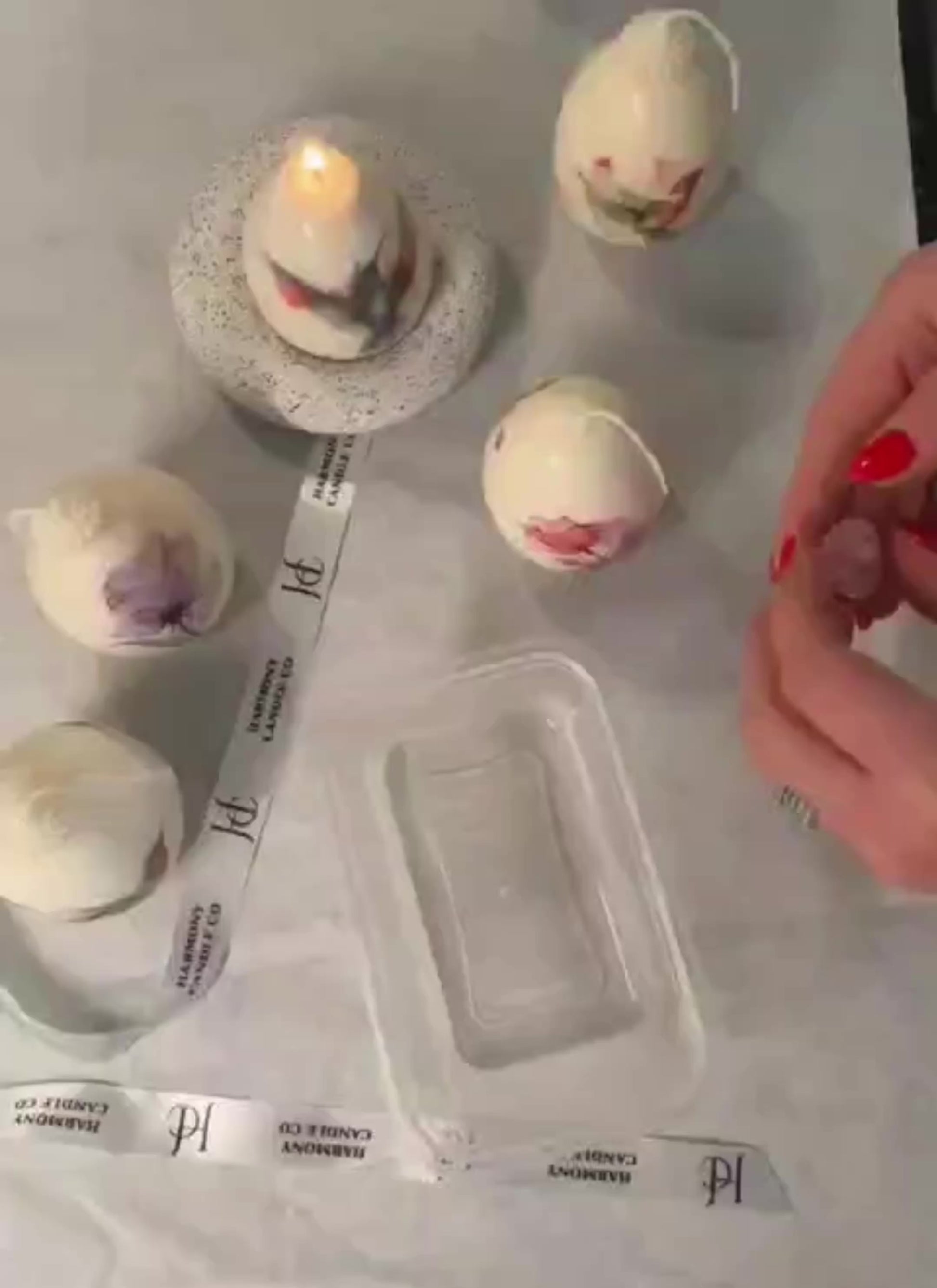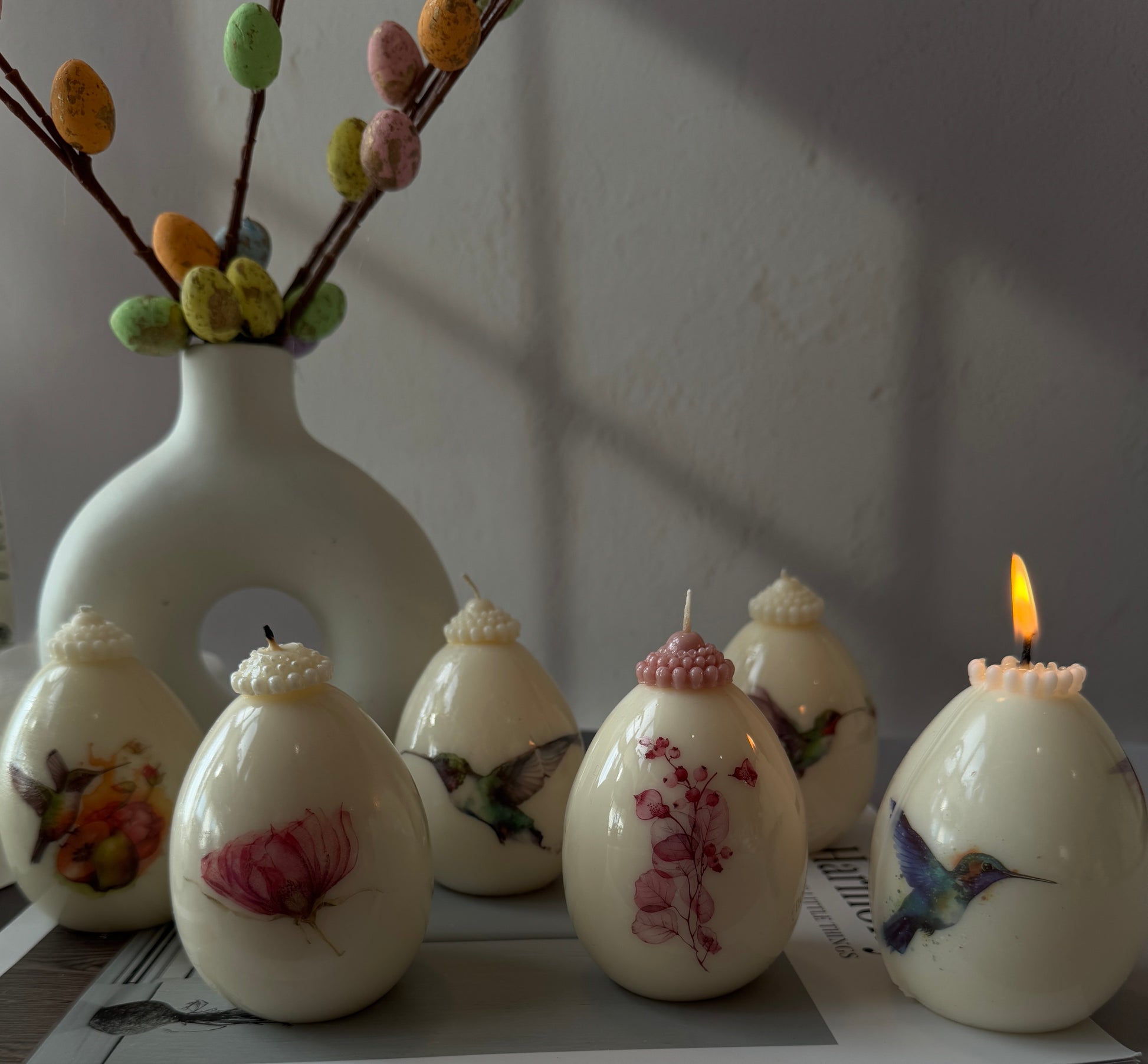 Handmade soy wax candles.Each egg it have a double size model as you can see in the video.Only the large one they have extension on top.The set of 4 it’s coming mix with 2 large,1 medium & 1 small egg,random models,in a beautiful box with red ribbon,ready to be gifted to your loves.