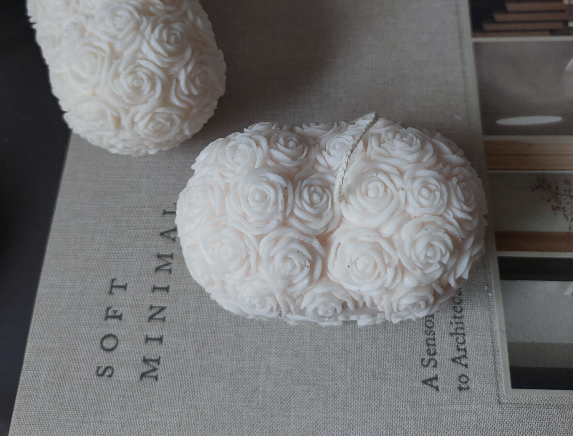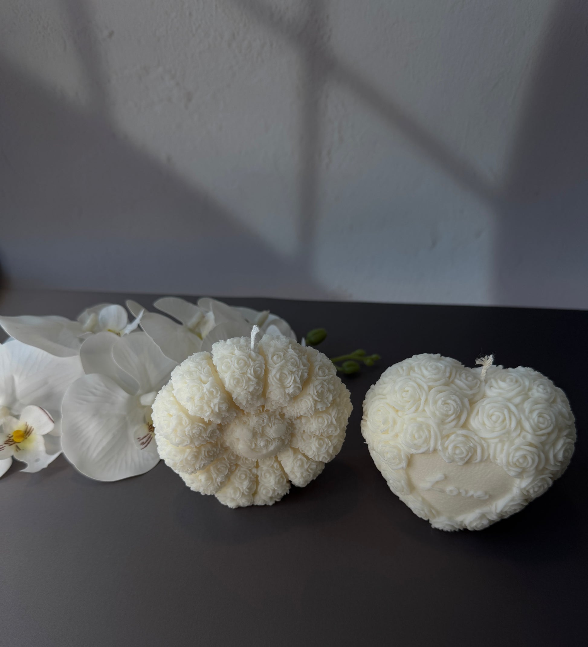 A soft, rounded candle blooming with delicate roses and a sculpted heart at its center. Elegant and full of detail, it’s ideal as a statement decor piece or a sweet gift for floral lovers.