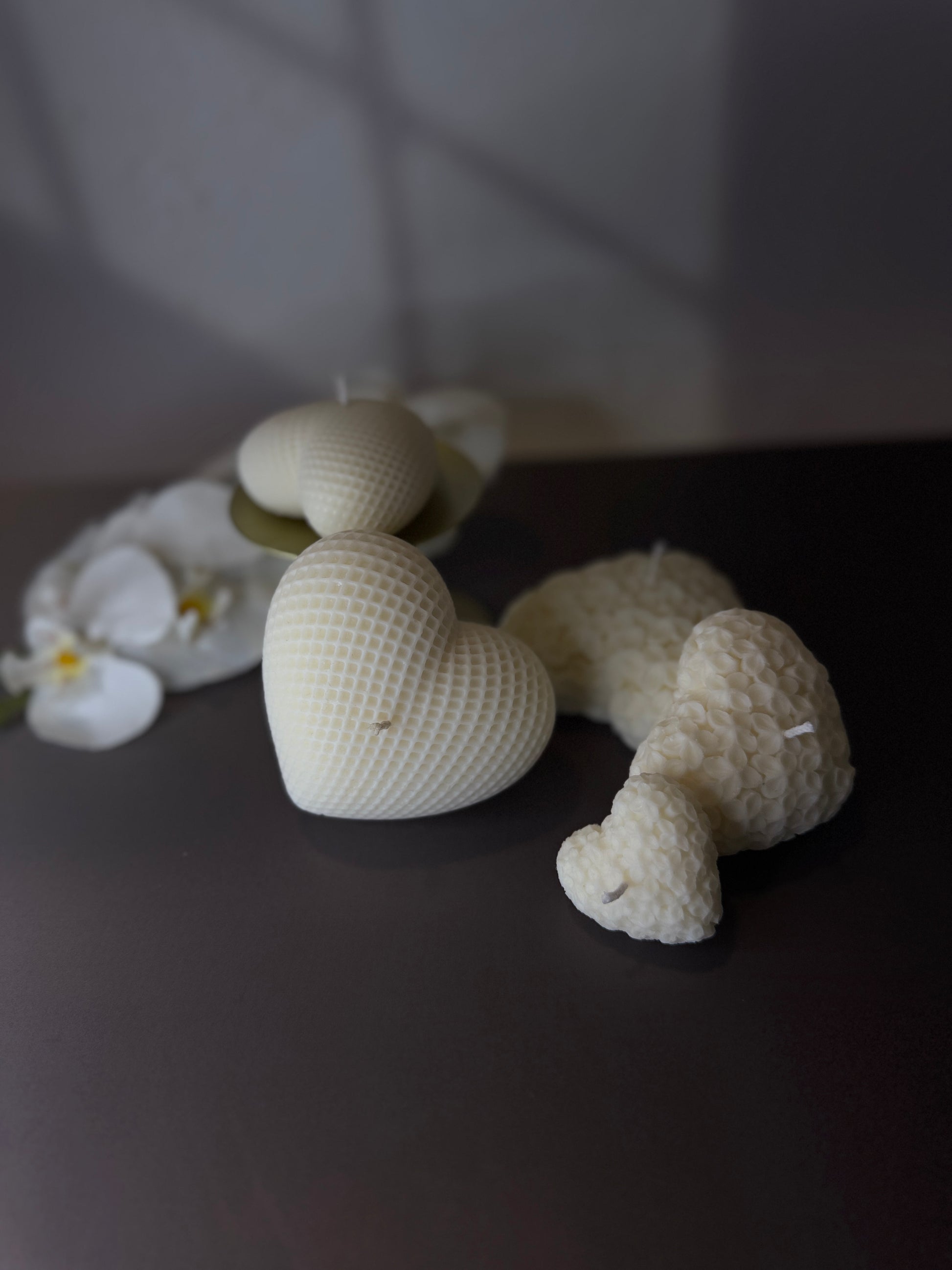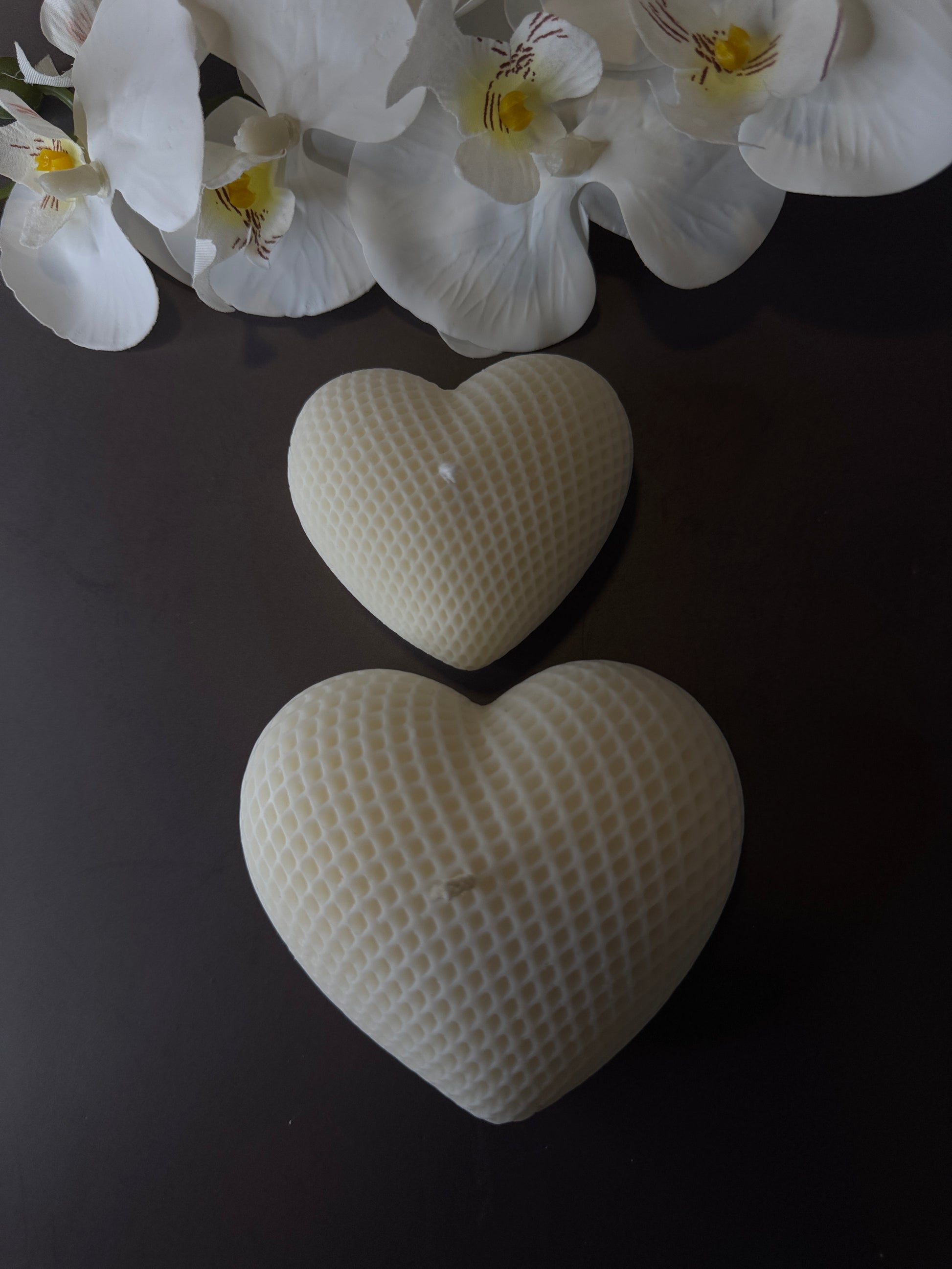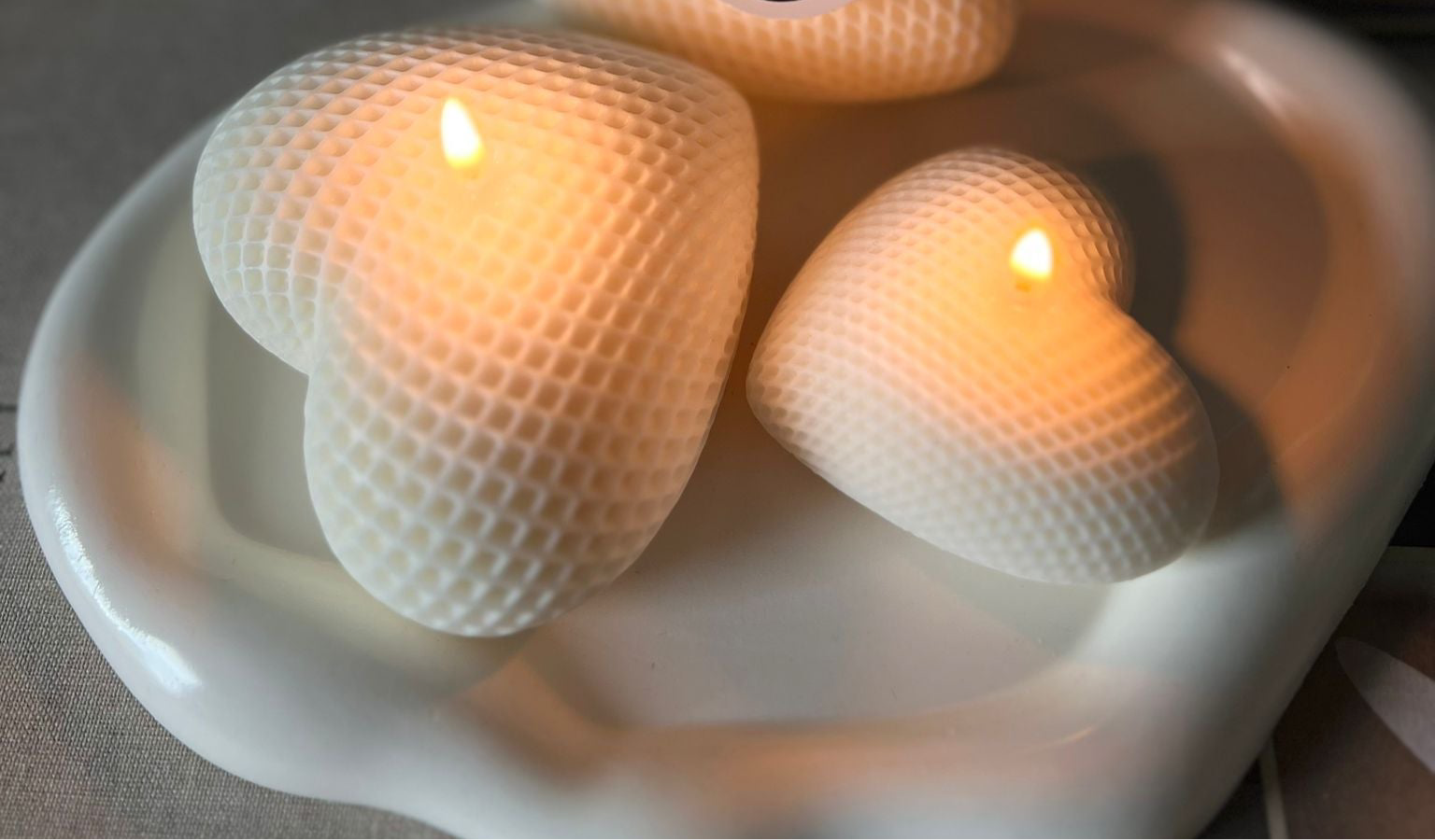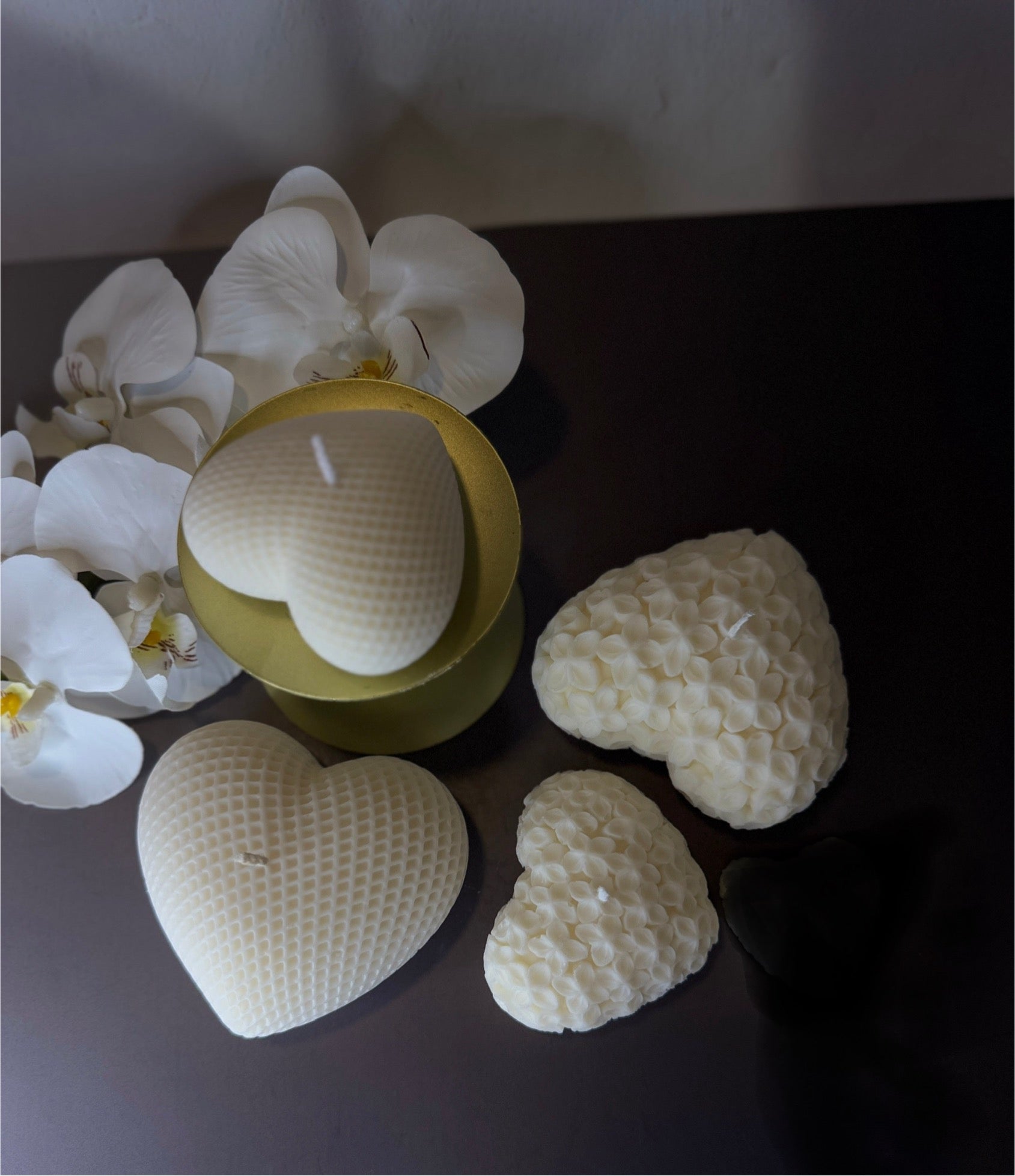 Celebrate softness, love, and artistry with our Hearts in Bloom Collection – a series of sculptural soy wax candles in textured heart shapes, blending minimalist form with intricate surface detail. From the modern waffle-textured hearts to the romantic bloom design adorned with delicate florals, each piece is hand-poured with eco-friendly soy wax and customisable in both colour and fragrance.