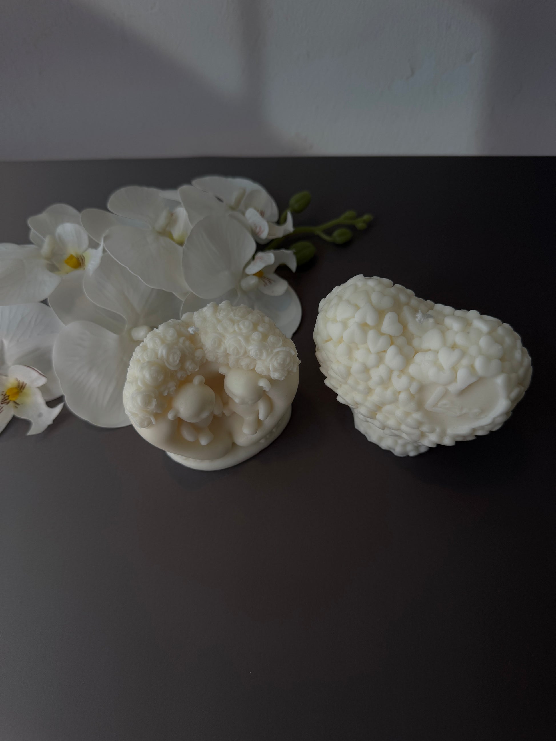 These two charming bears, surrounded by roses, symbolize pure affection and connection. Handcrafted from natural soy wax, they bring a playful yet elegant touch to your décor or gift-giving moments.