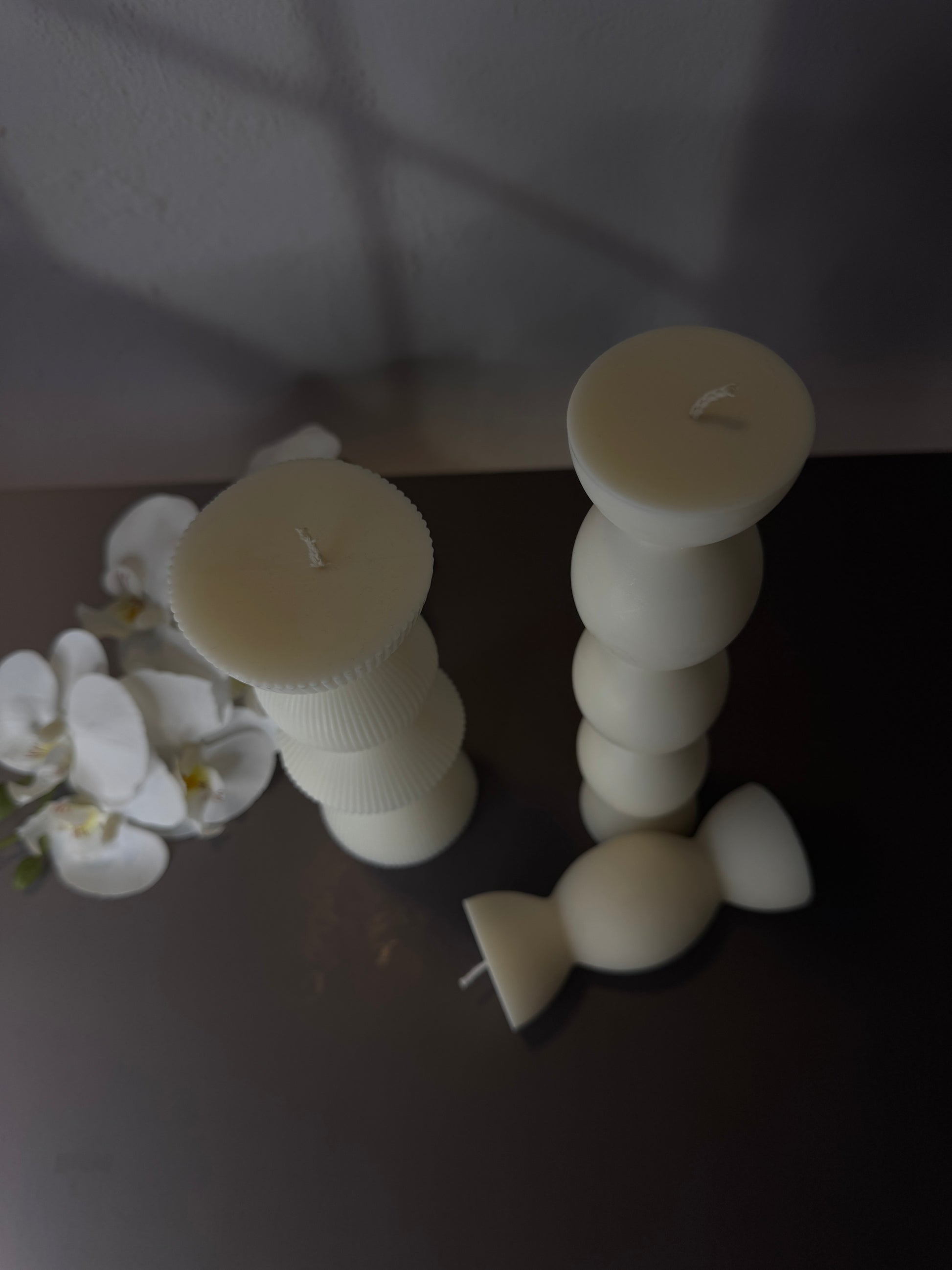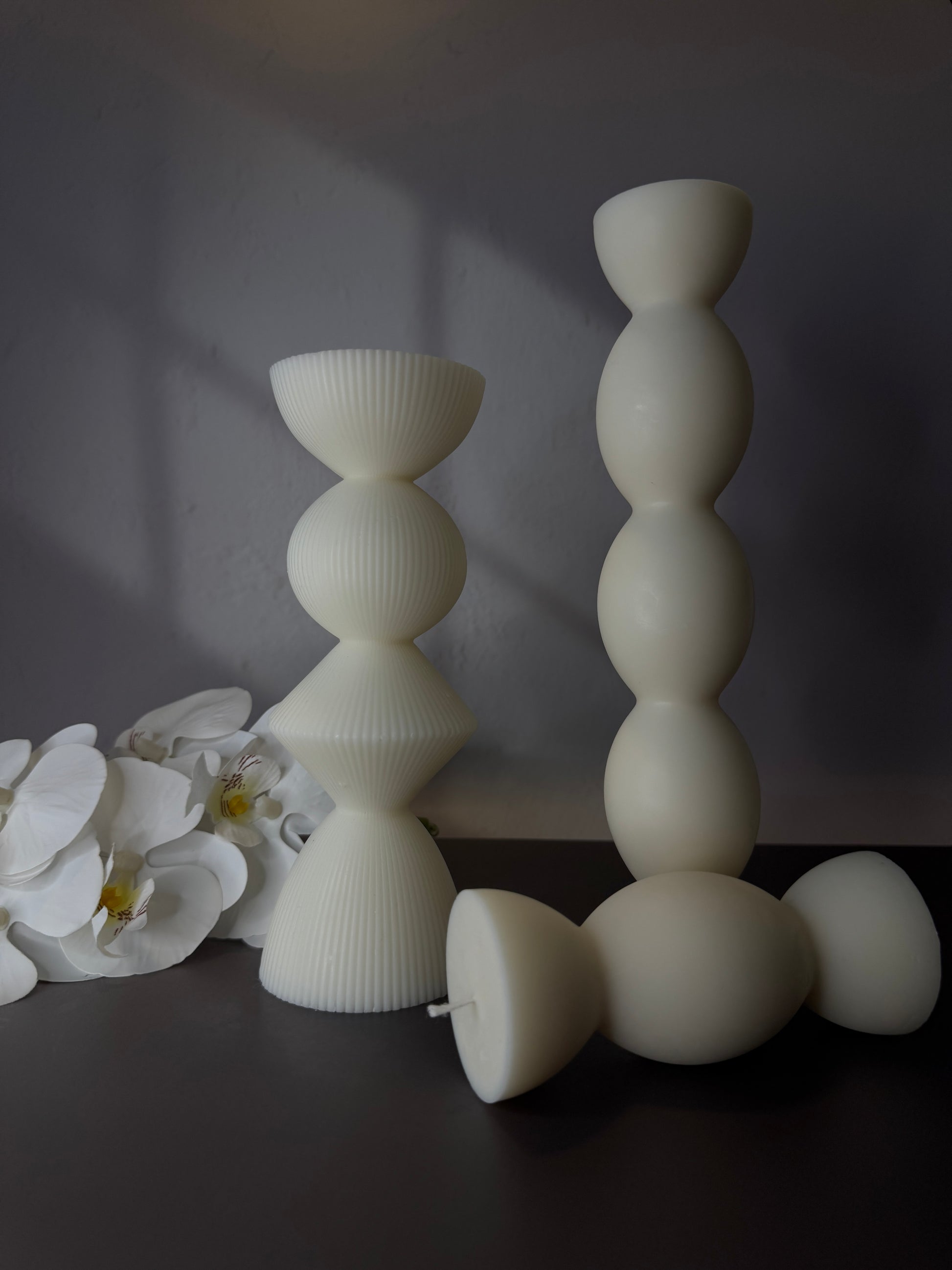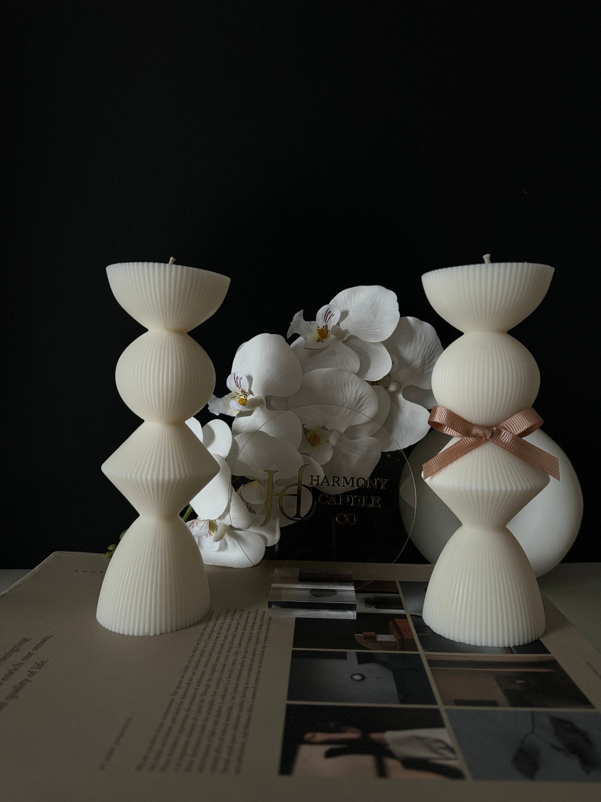With curves that evoke movement and harmony, the Ona series plays with symmetry and softness. These candles invite both touch and stillness—beautifully untraditional, unmistakably intentional.