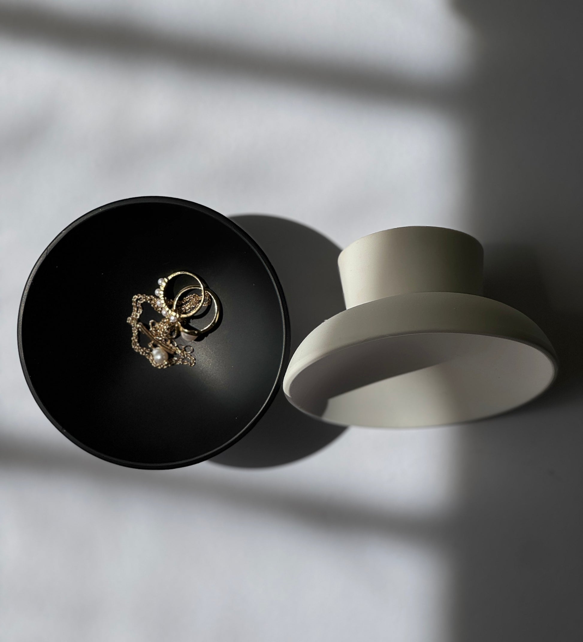 Each piece is hand-poured and sanded to a silky finish, available in matte ivory and bold black—designed to elevate the little moments of your day. Eos is more than a tray; it’s a celebration of minimal form and mindful living.