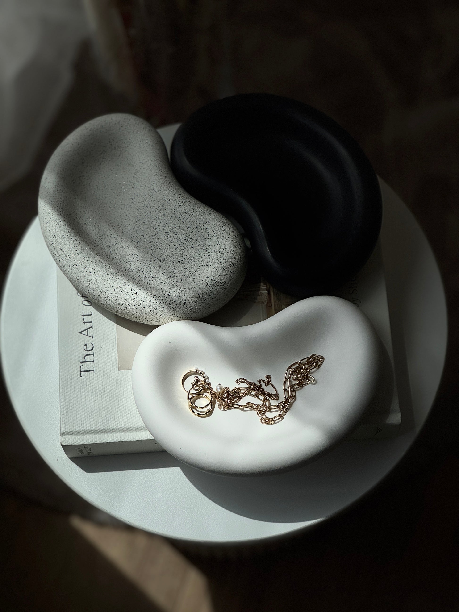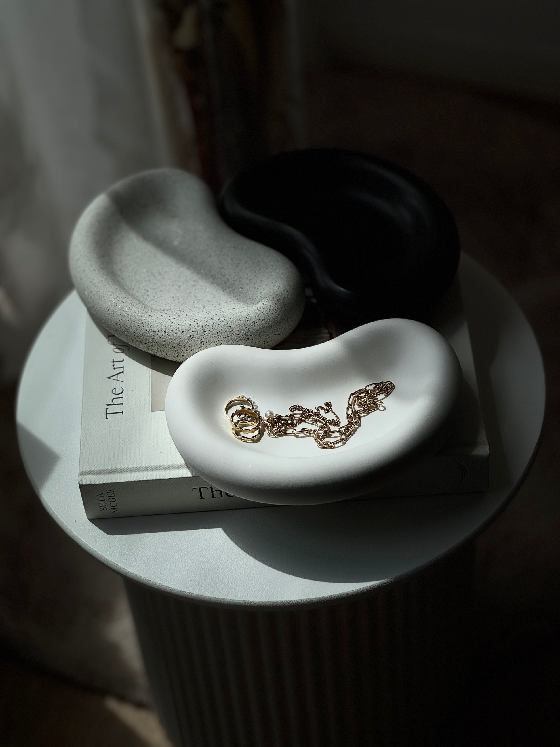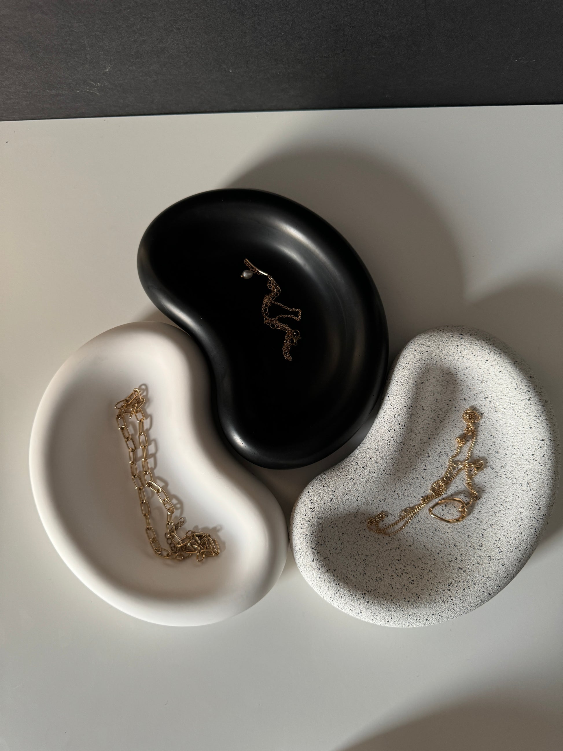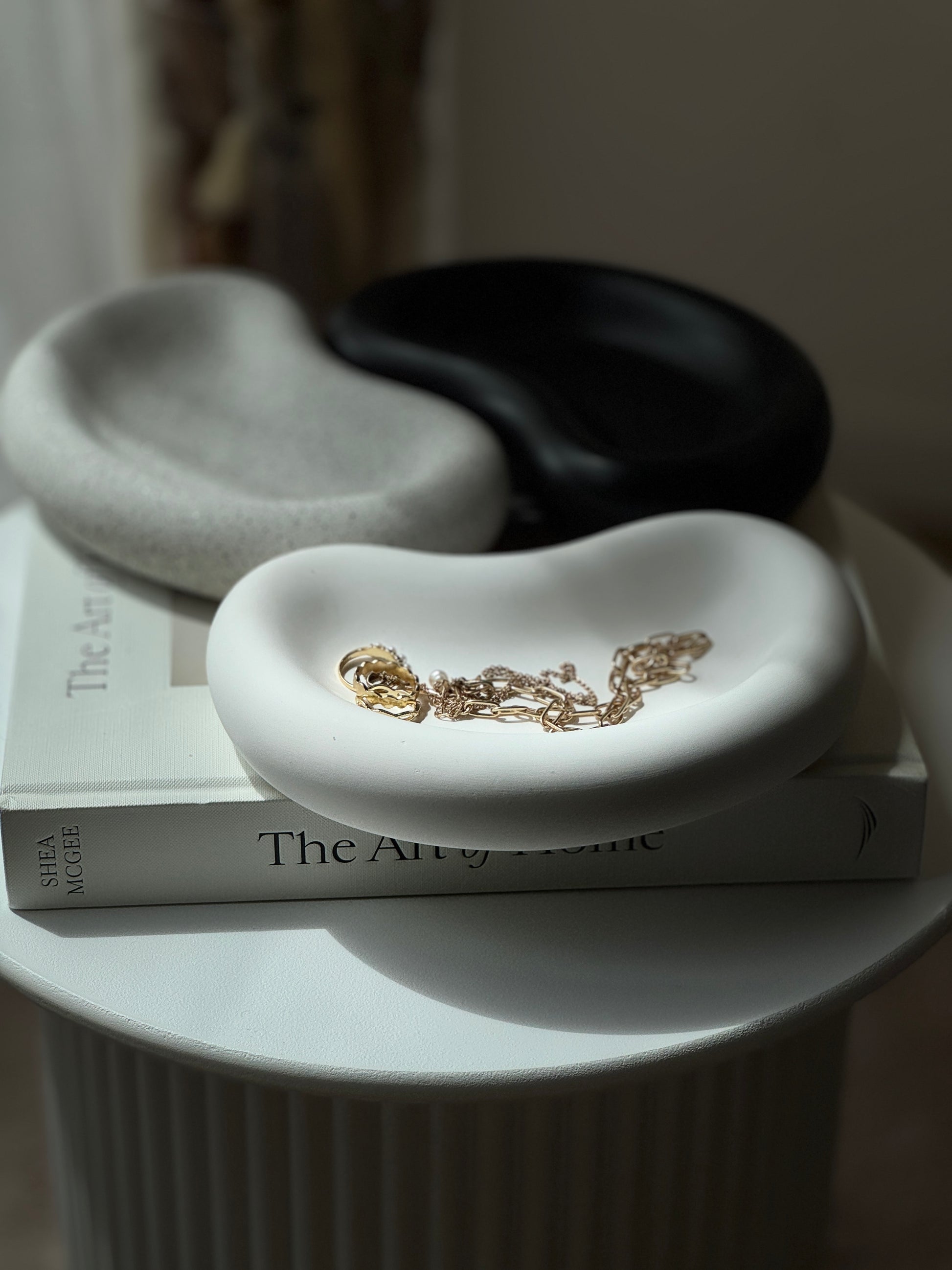 Meet the Luna Tray — a sculptural, organically curved dish that brings a calming, modern touch to your space. Handcrafted in jesmonite, porcelain, or granite finish, its smooth contours resemble a gentle moon shape, perfect for holding jewelry, candles, or everyday essentials.