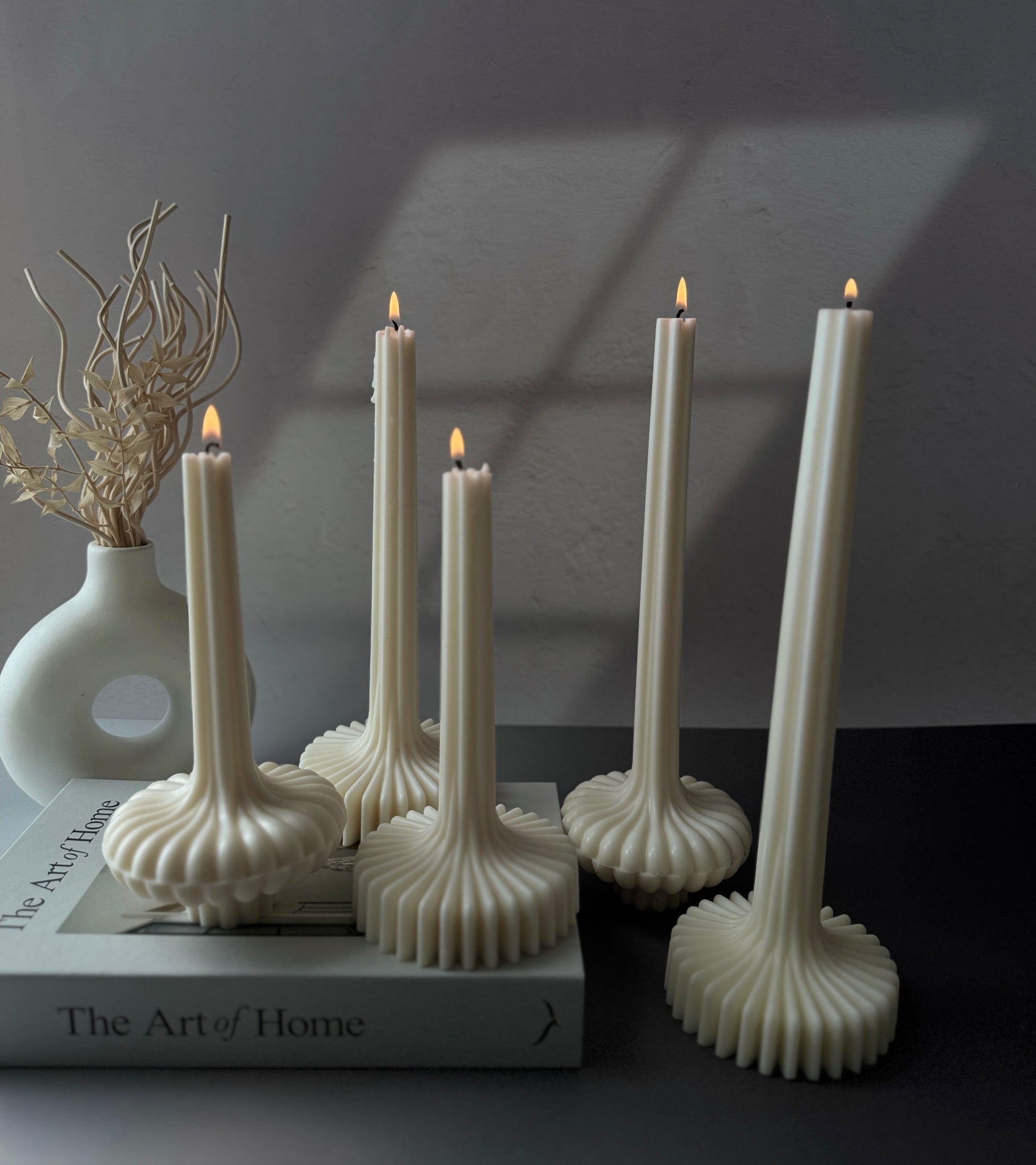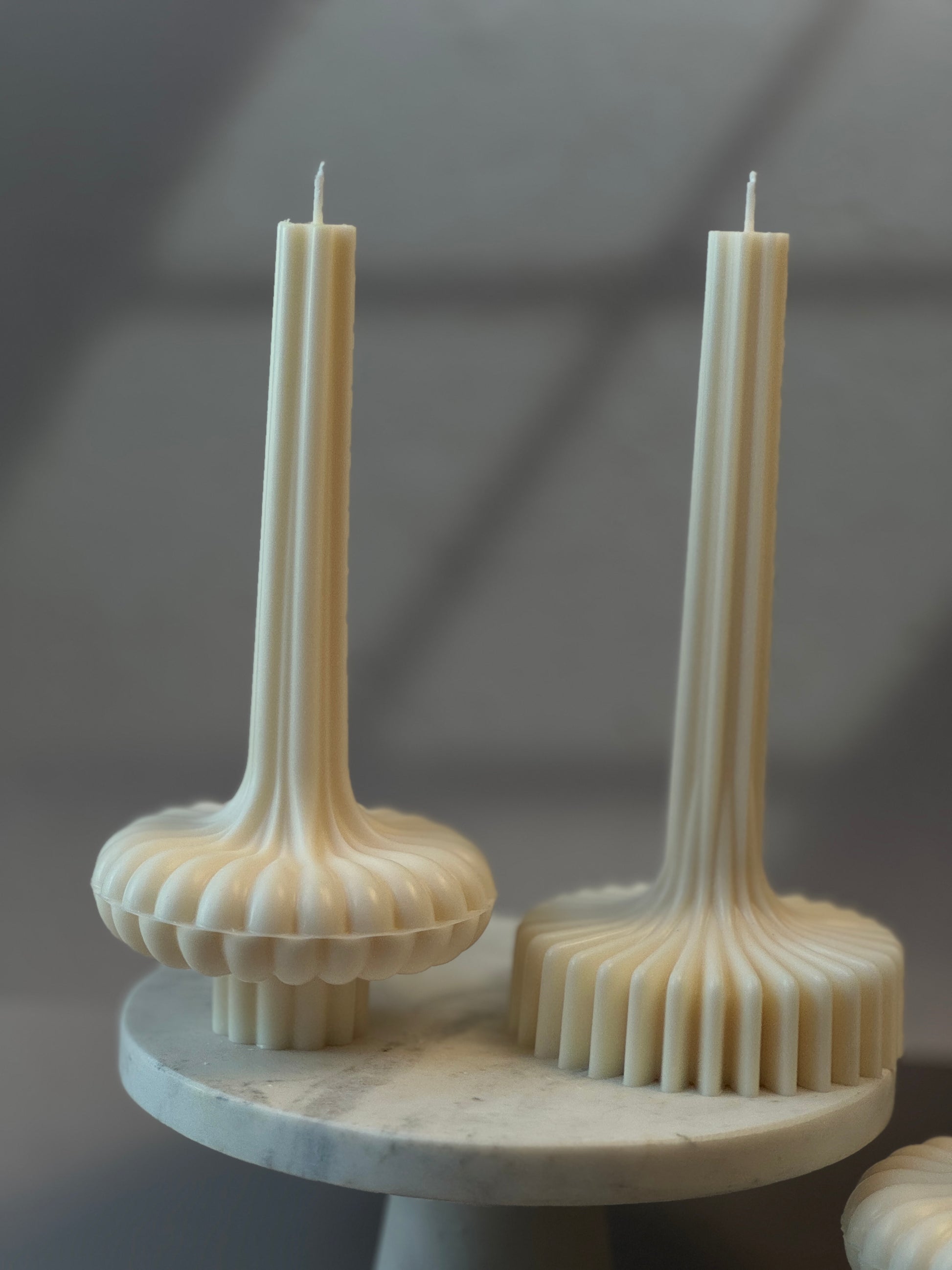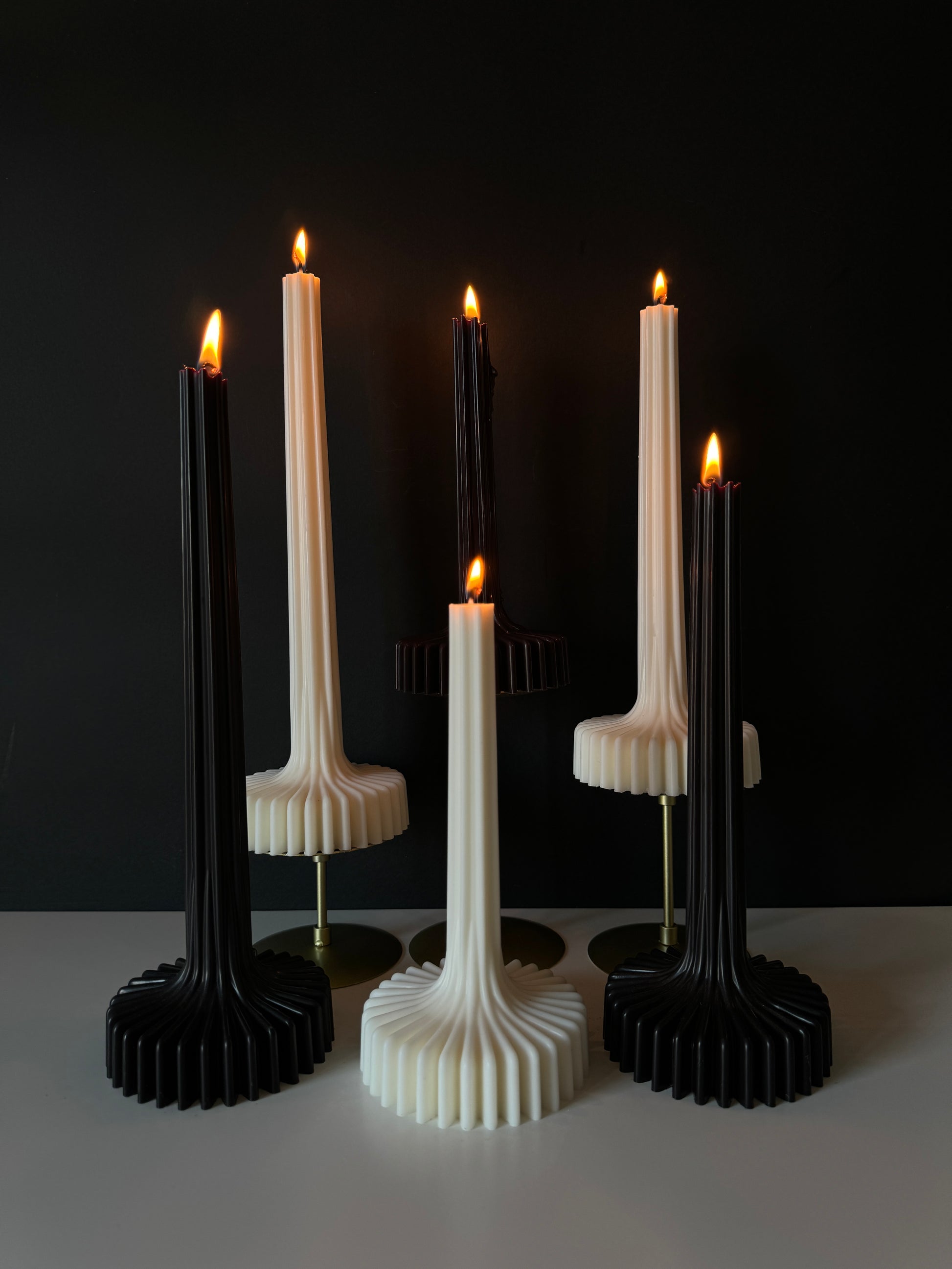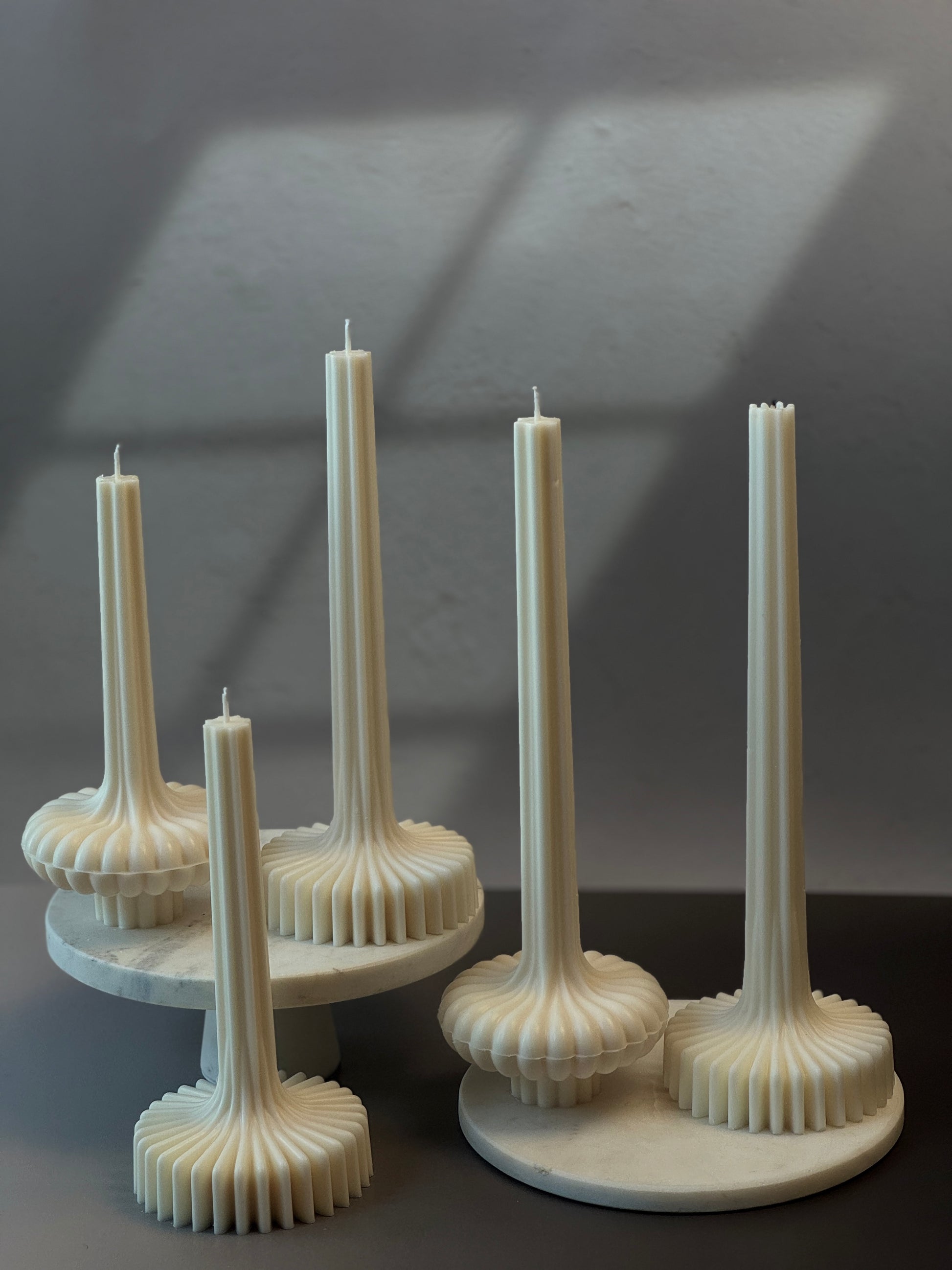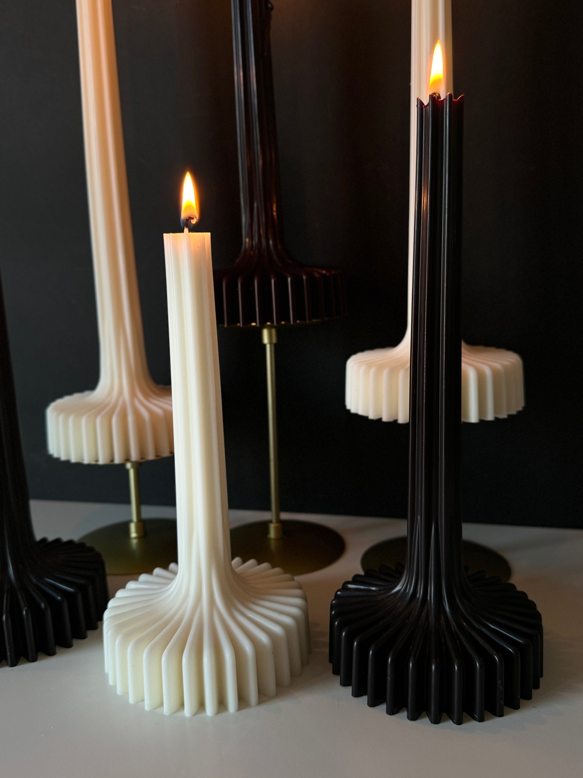 Discover timeless elegance with the Linéa Collection — a curated set of sculptural taper candles blending architectural form with artisanal craftsmanship. Featuring two distinct silhouettes, each handcrafted from natural soy wax: