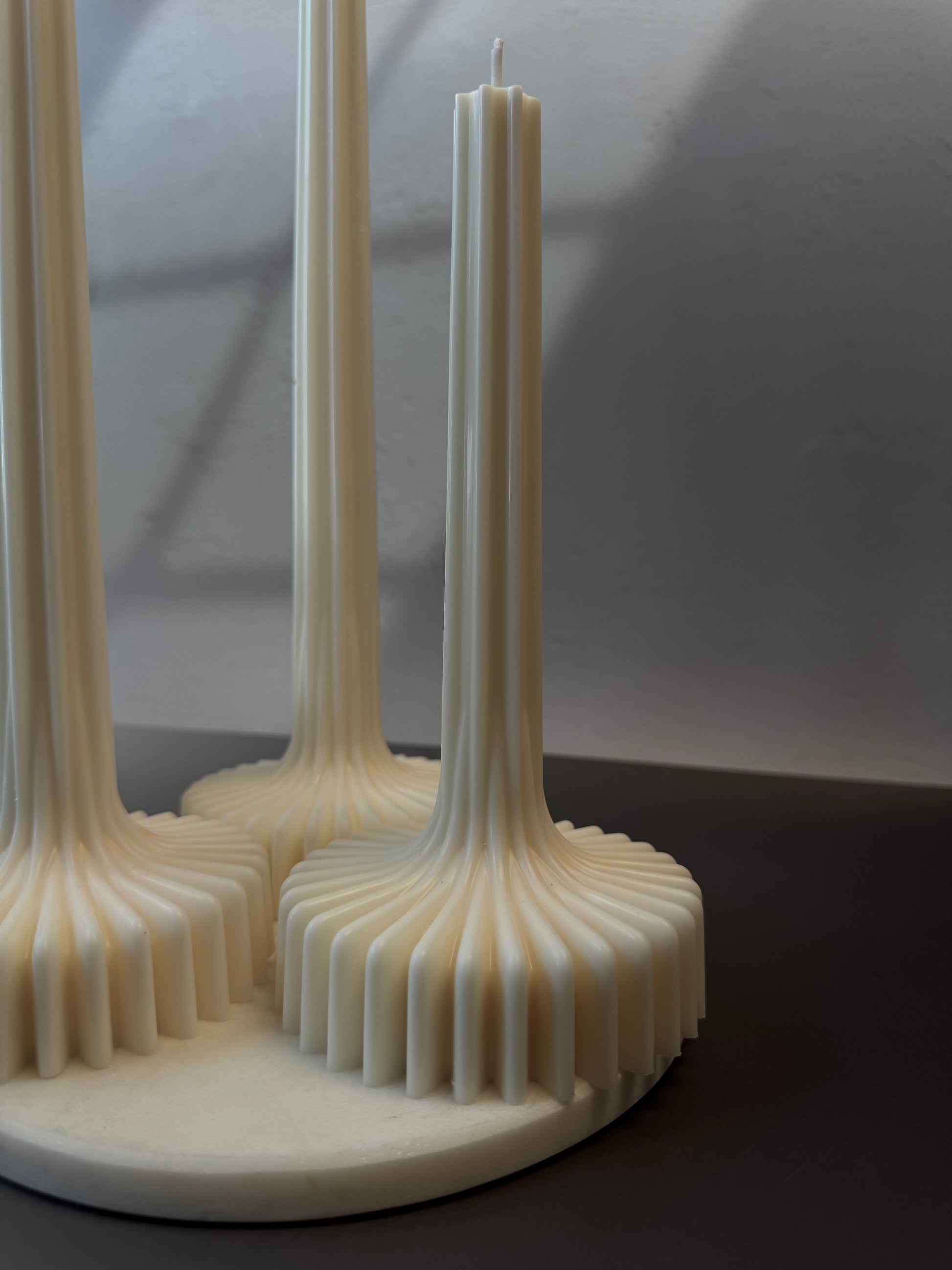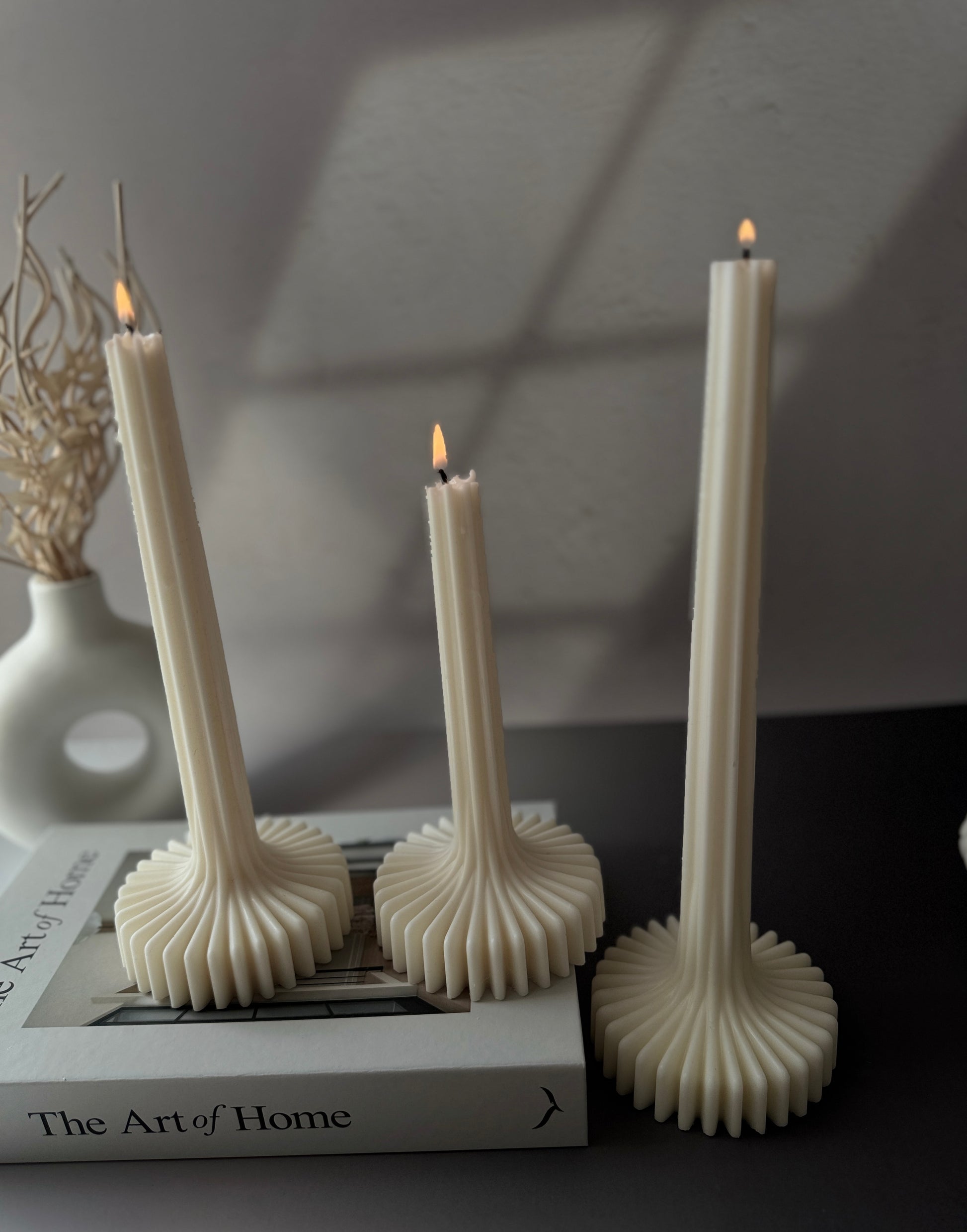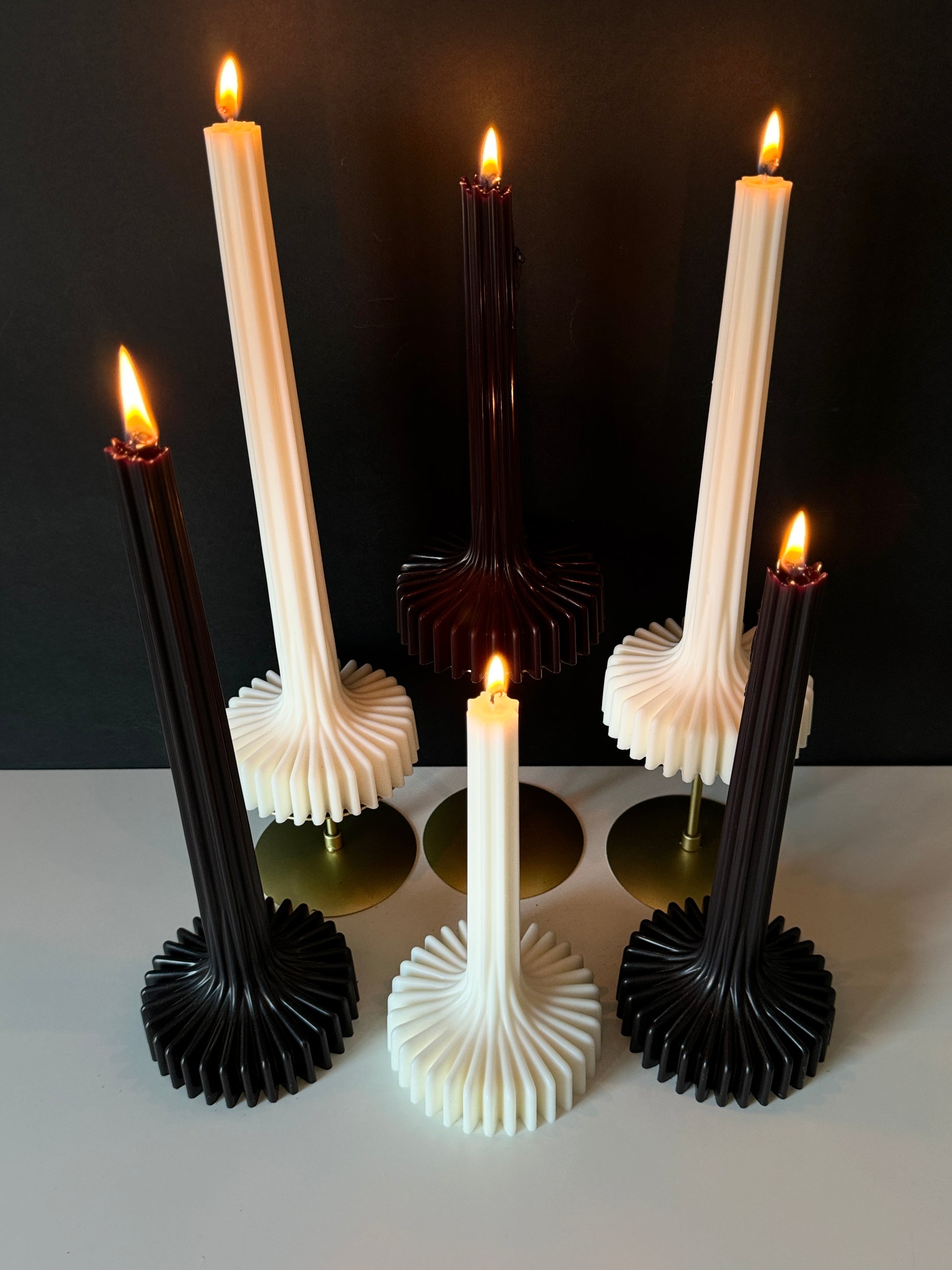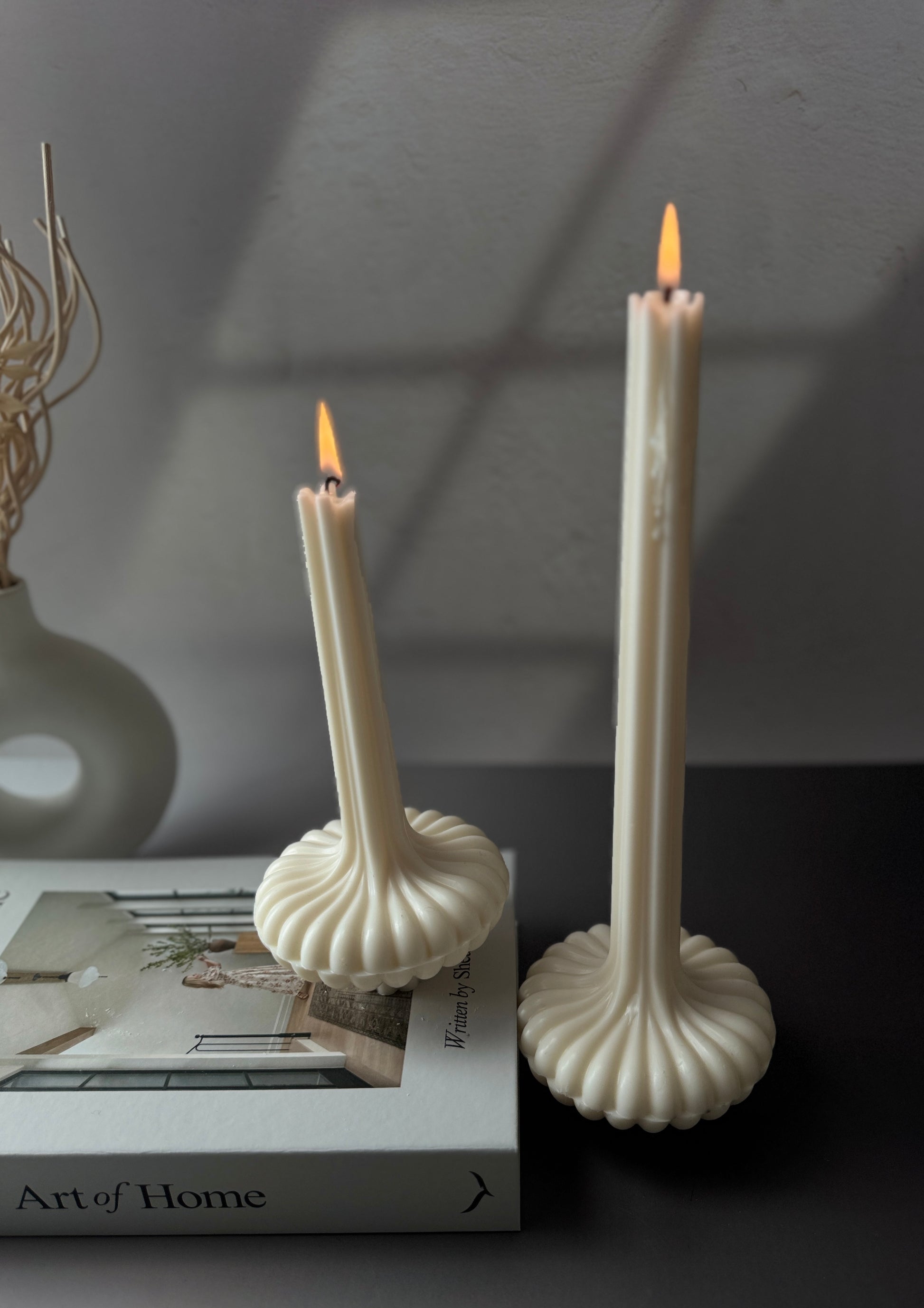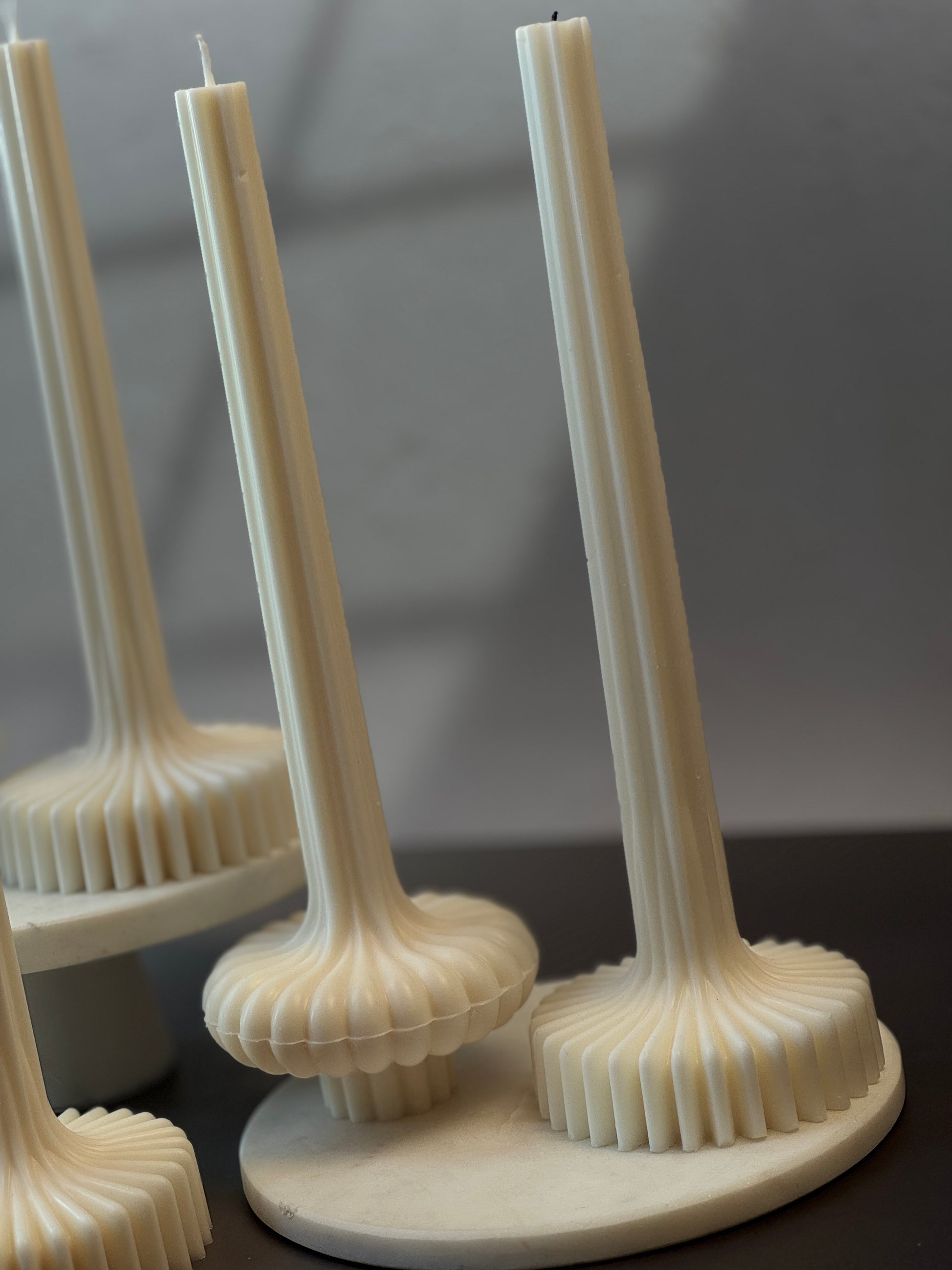 Discover timeless elegance with the Linéa Collection — a curated set of sculptural taper candles blending architectural form with artisanal craftsmanship. Featuring two distinct silhouettes, each handcrafted from natural soy wax: