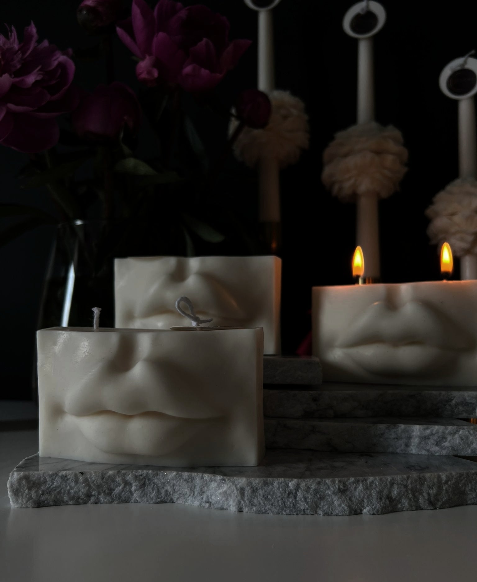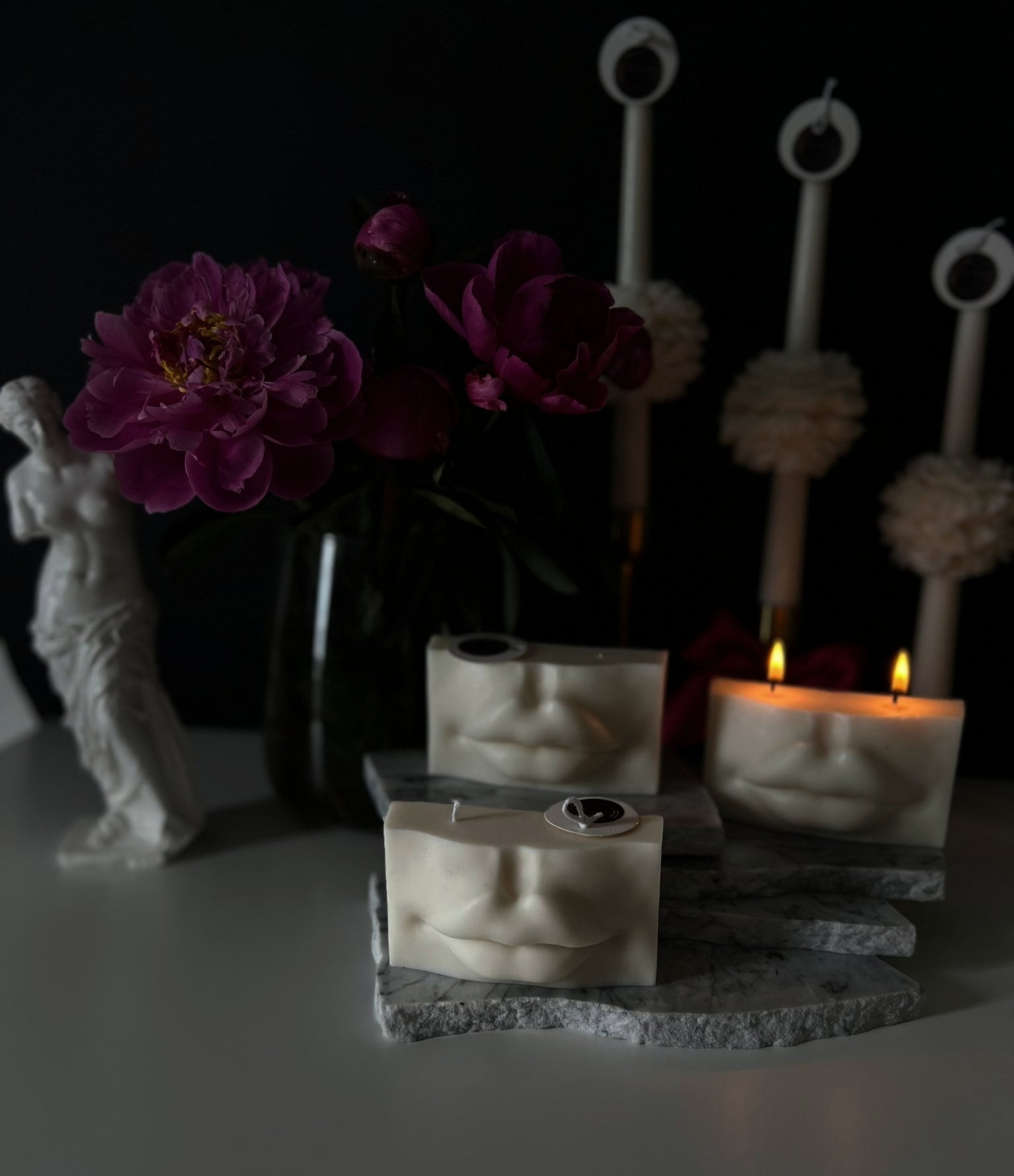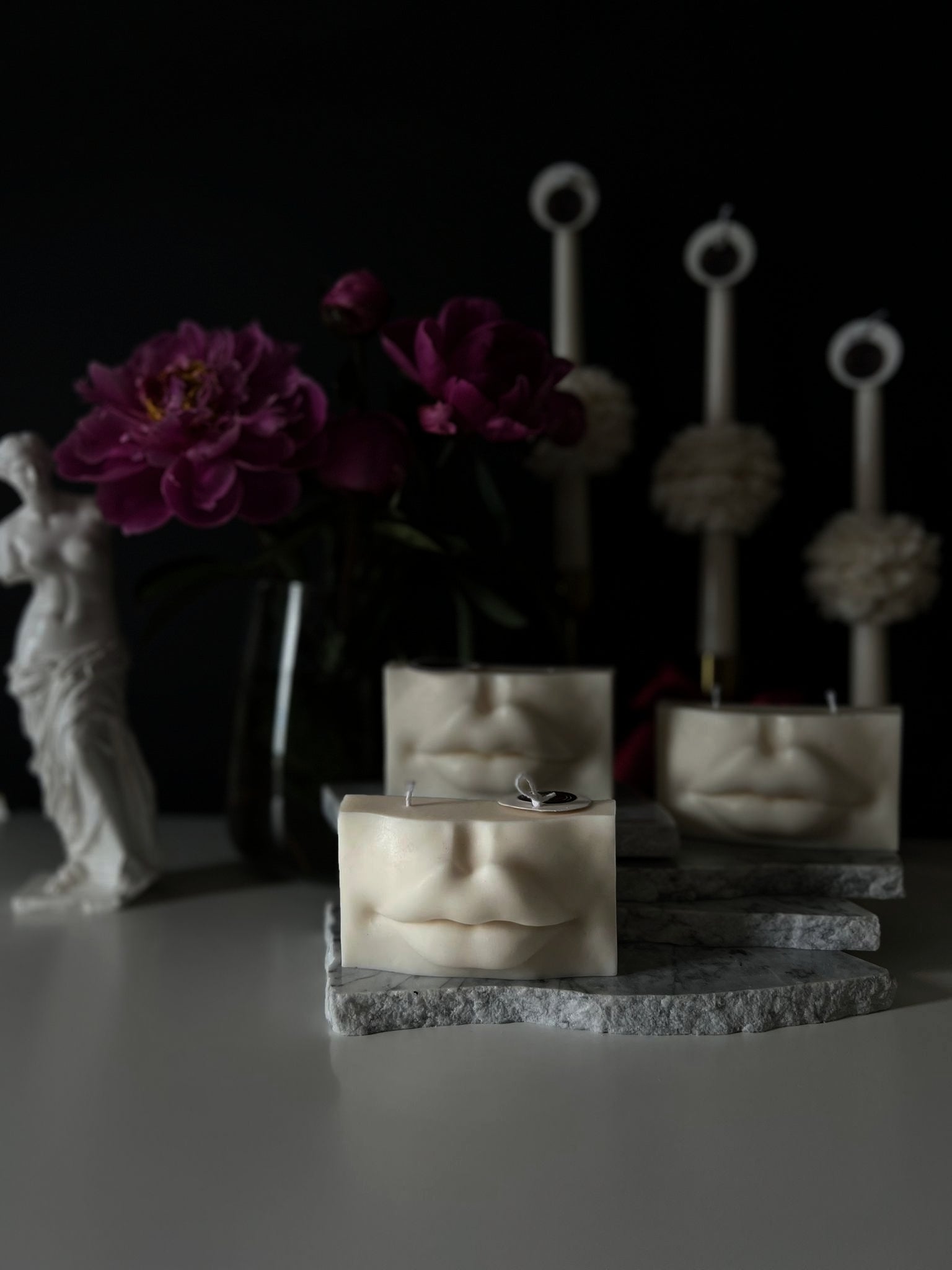 Bold, minimal, and full of expression — the Muse Candle brings a touch of modern art to your space. Featuring soft, sculpted lips in a sleek rectangular form, this statement piece is hand-poured with 200g of eco-friendly soy wax.