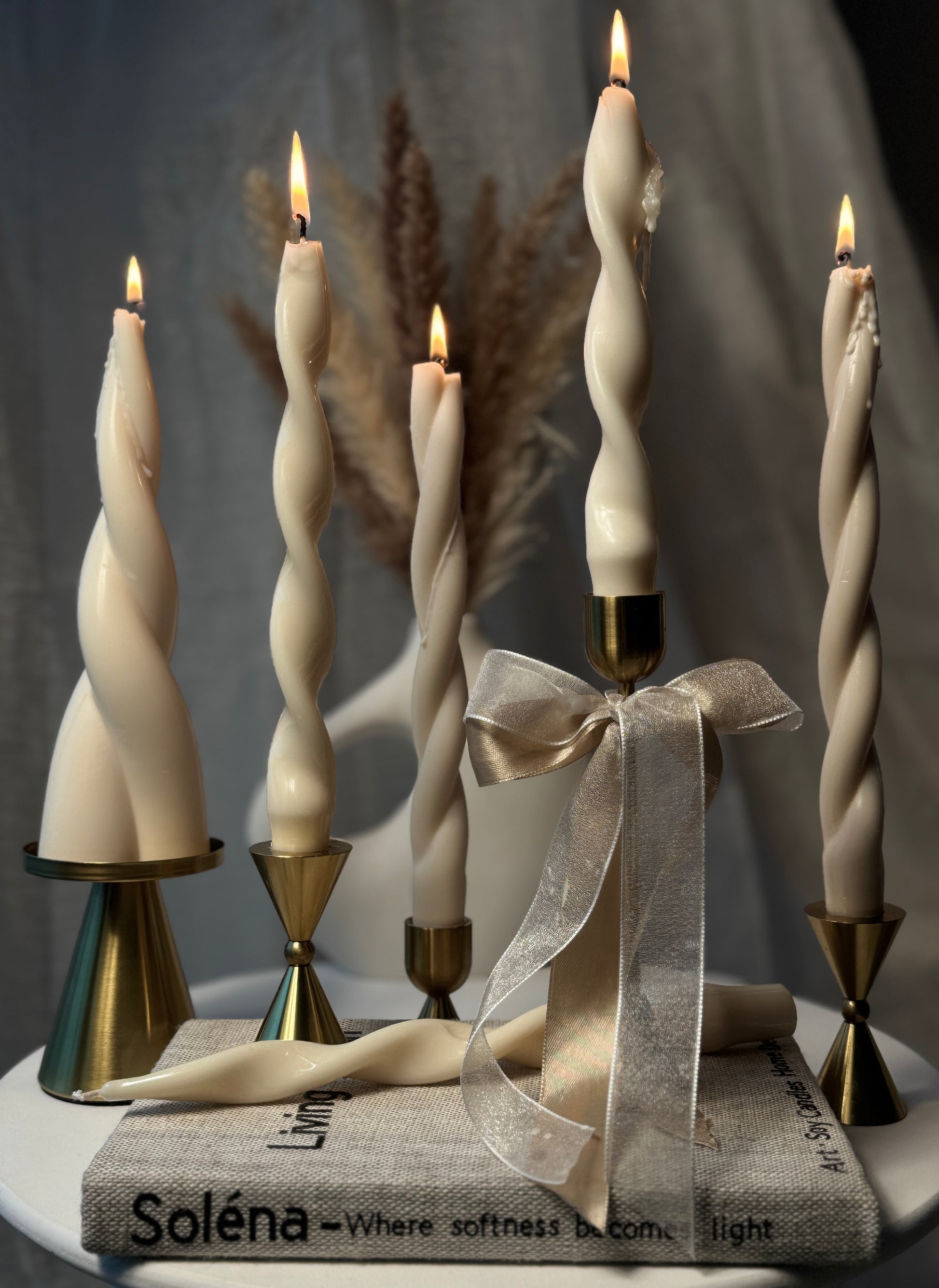 This sculptural taper candle collection brings together floral elegance and modern twisted forms. Each candle is individually handmade using natural soy wax and finished with a cotton wick, offering a clean burn and a refined decorative presence.