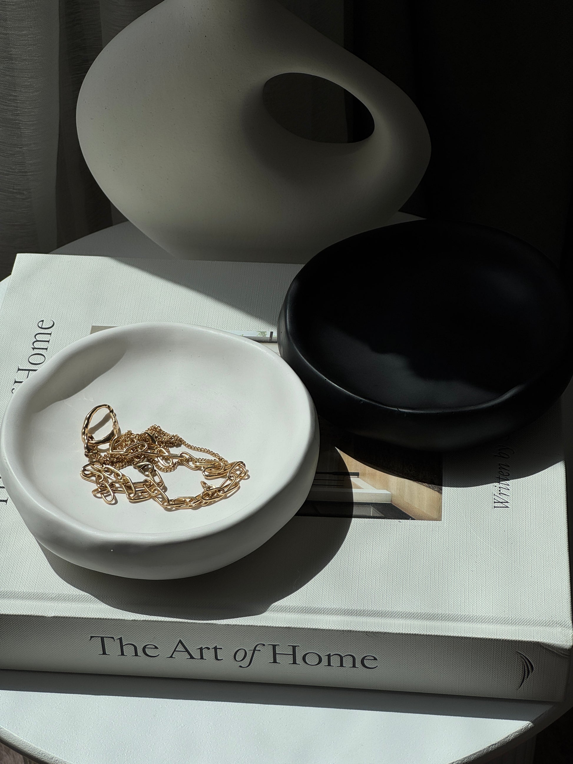 With soft curves and smooth matte finishes, each piece from the Pure line captures quiet elegance. Sculptural yet functional, these bowls are designed for jewelry, candles, or as minimalist accents that bring balance to any space. Handmade from eco-resin and available in timeless black or white.