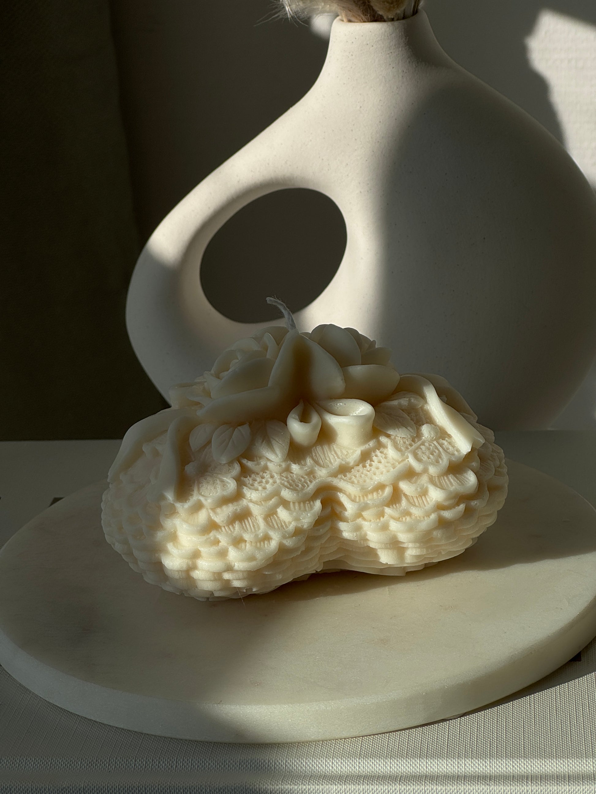 Delicately sculpted with intricate lace-like details and crowned with blooming roses, this heart-shaped candle is a statement of romance and craftsmanship. Perfect as a gift for weddings, anniversaries, Valentine’s Day, or simply to add a touch of grace to your home décor.