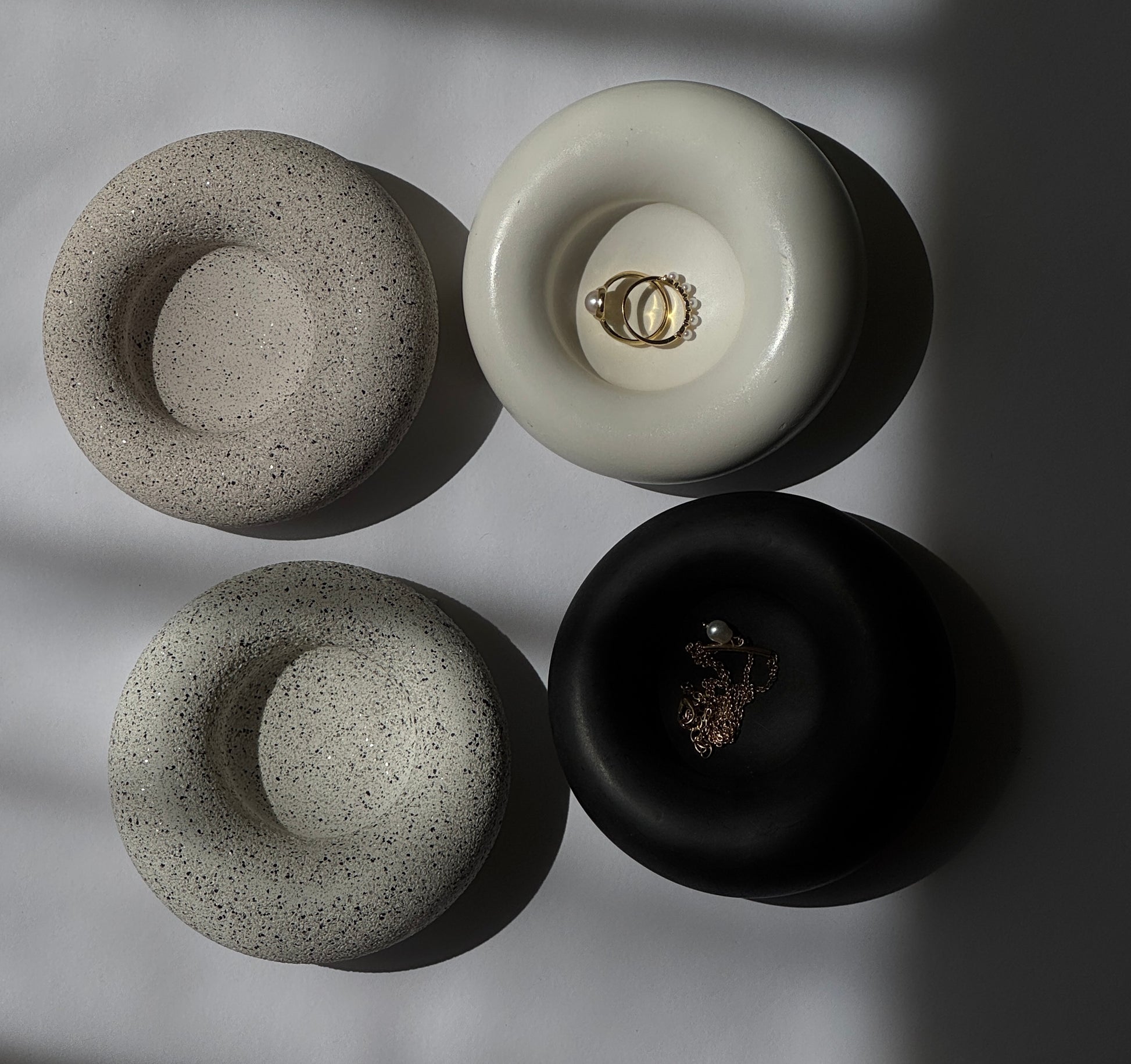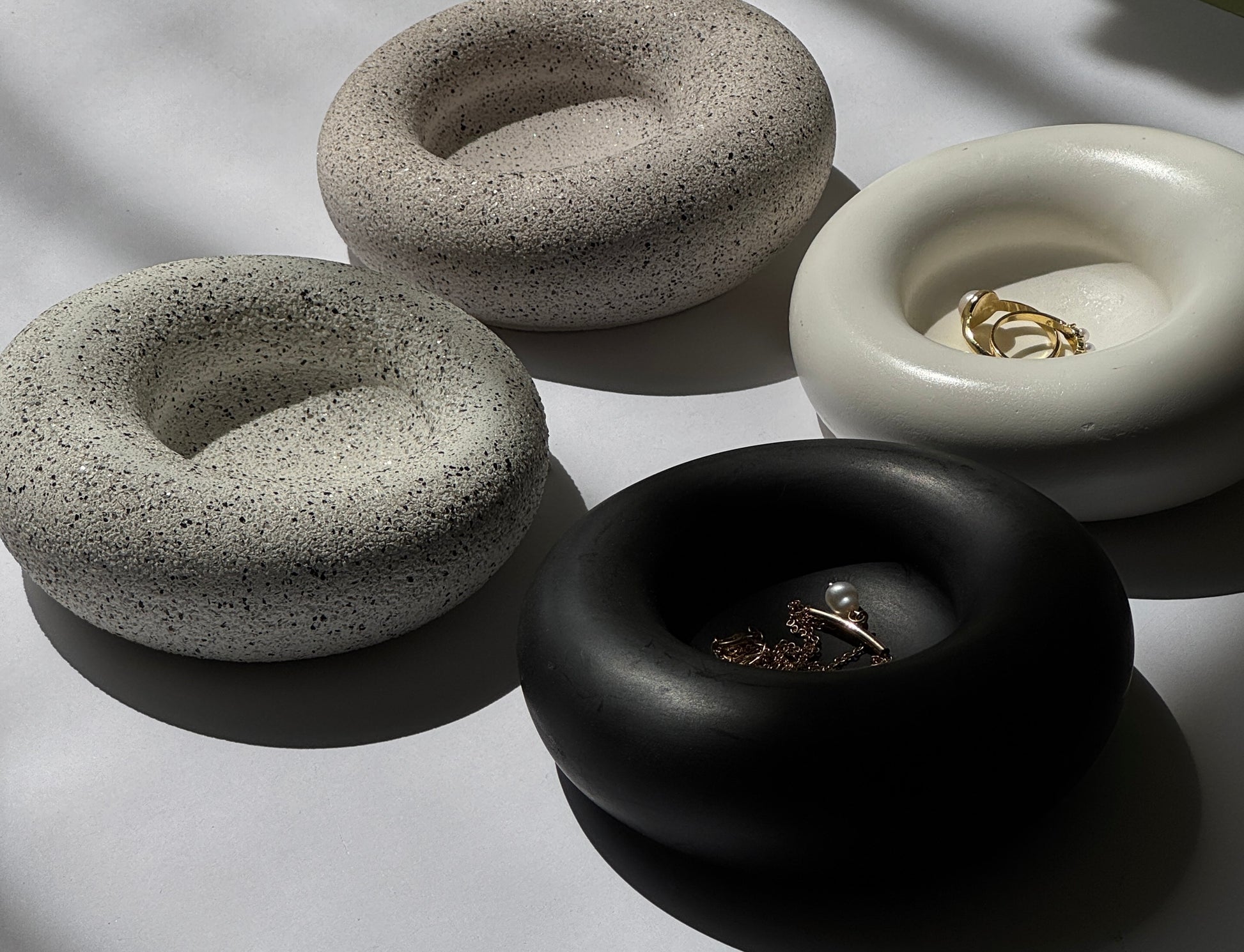 Elegant in form and practical in function, the Halo Dish is a handcrafted piece designed to elevate your daily rituals. Perfect for storing rings, earrings, or small personal treasures, each dish is made from high-quality Jesmonite, granite, or porcelain—offering a beautifully smooth finish and minimalist design. Its soft, rounded silhouette adds a touch of modern sculpture to your bedside, vanity, or coffee table.
