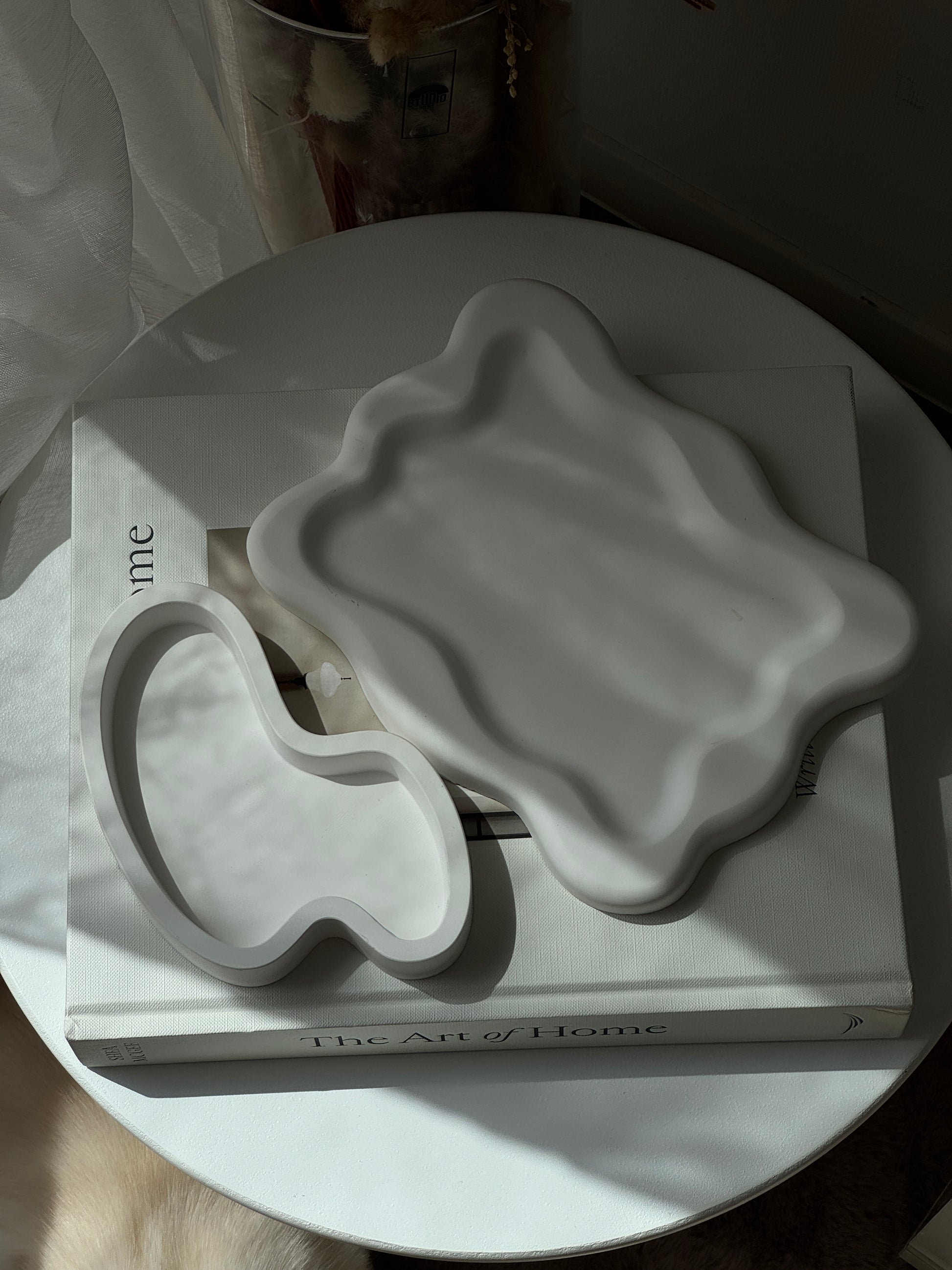 Designed with flowing silhouettes and grounded presence, the Atlas and Varn trays bring balance and strength to any surface. Handcrafted from durable Jesmonite in a matte white finish, they serve as minimalist bases for candles, jewelry, or curated styling.