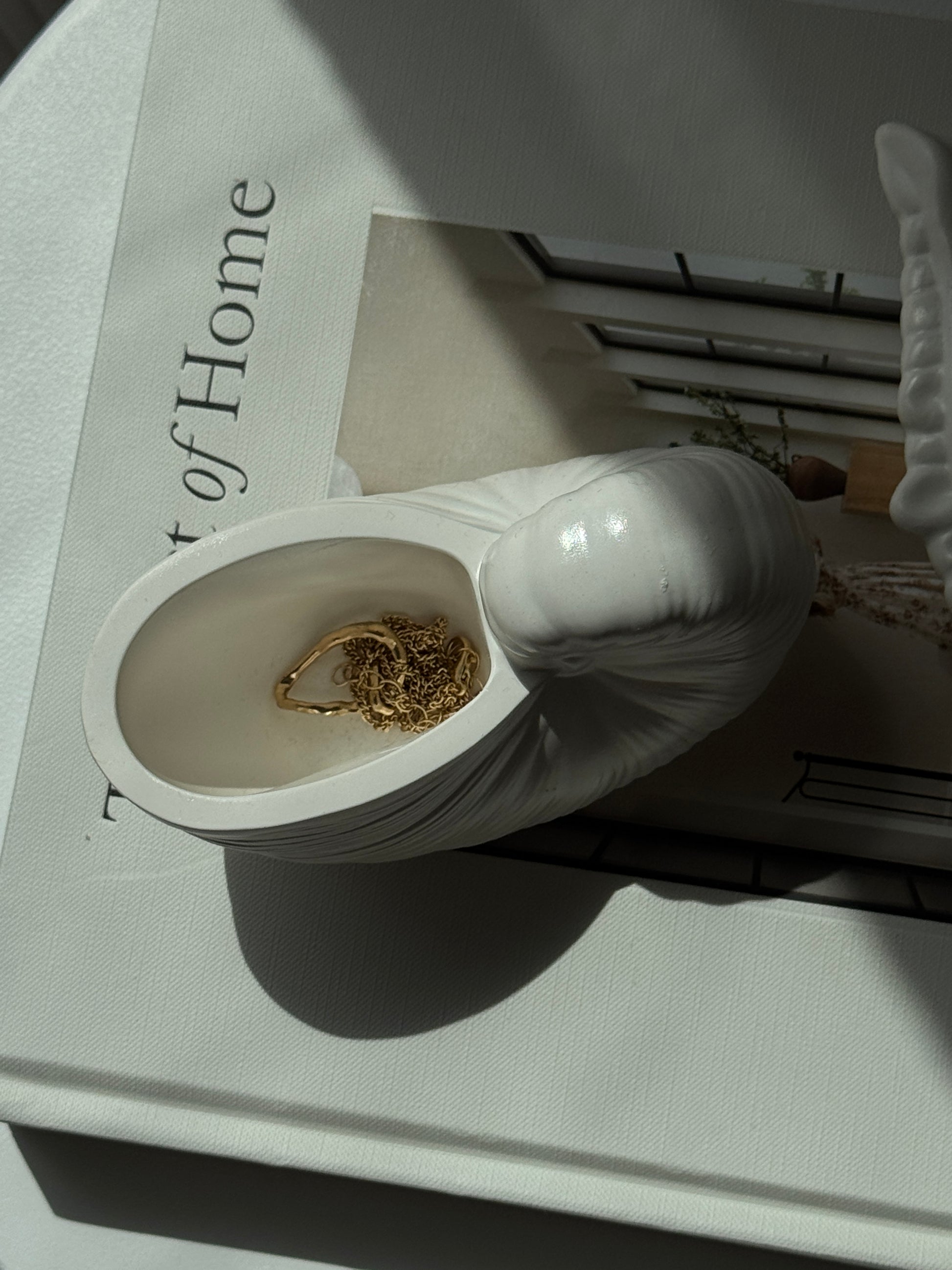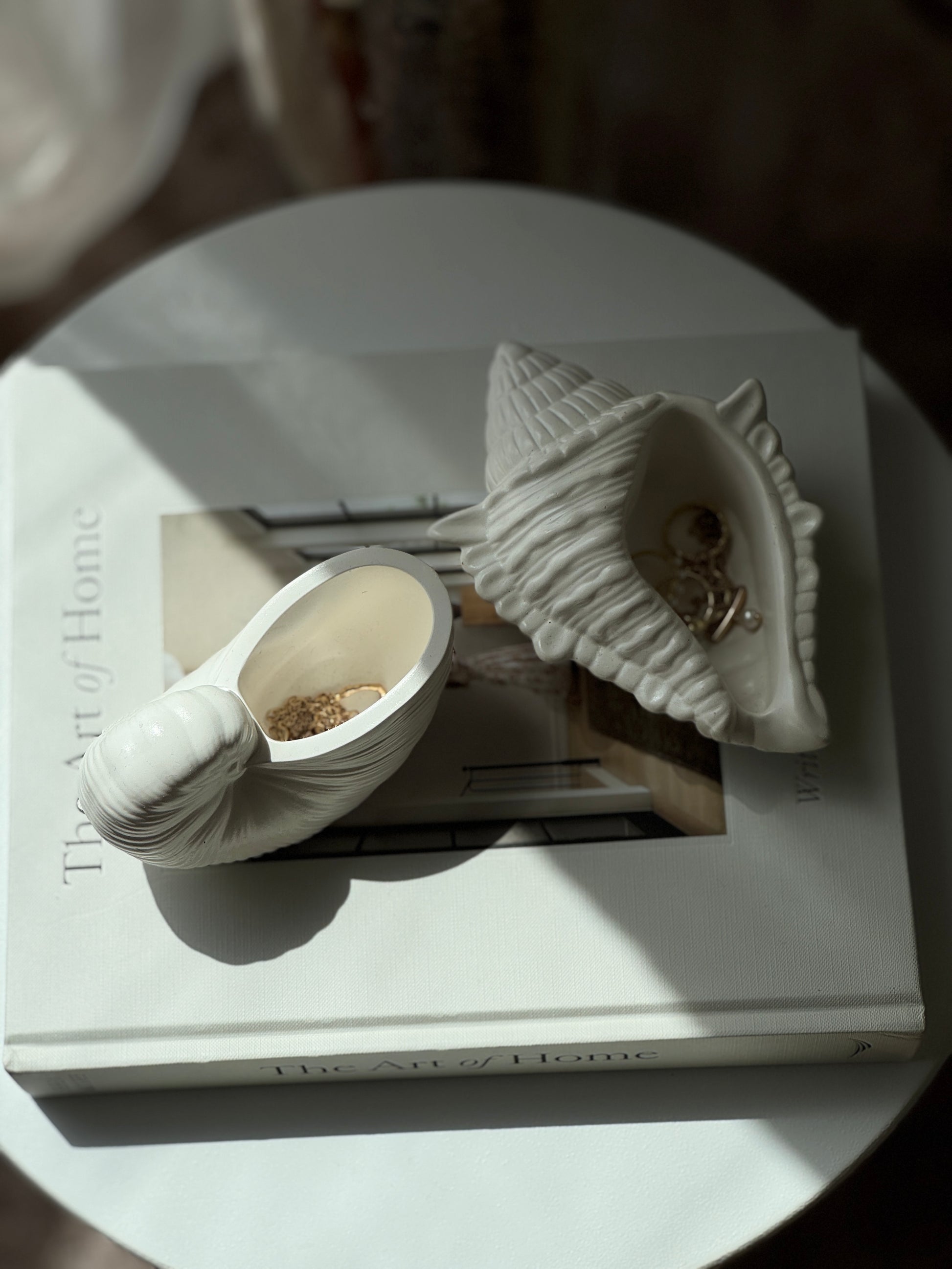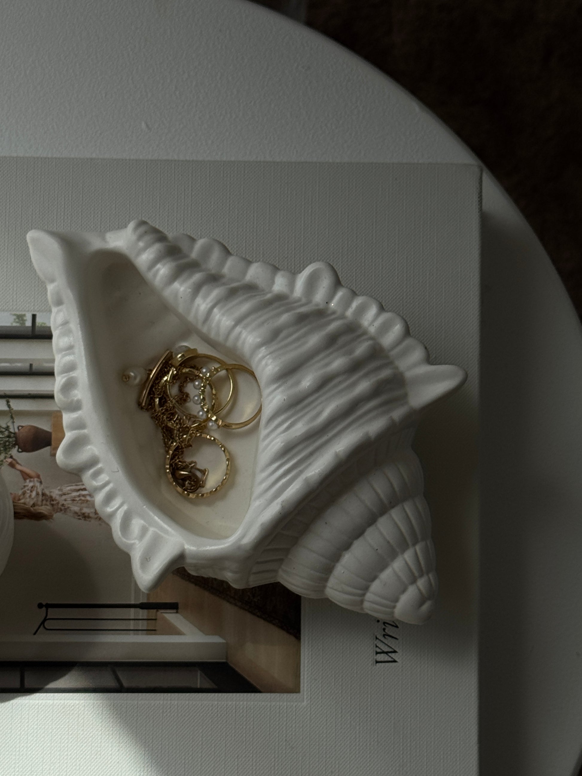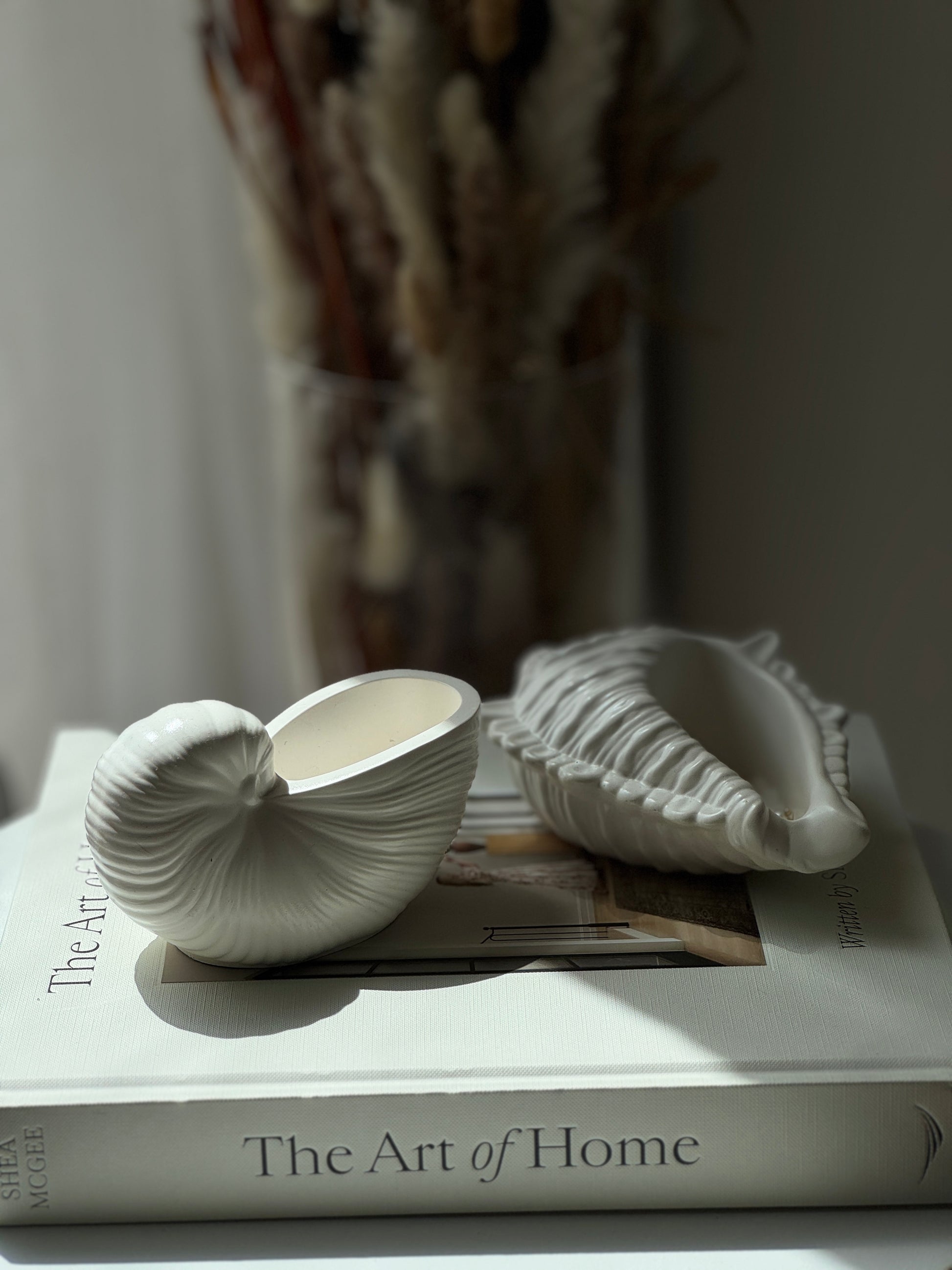 A sculptural conch shell form, bold and detailed, perfect for a statement styling piece.