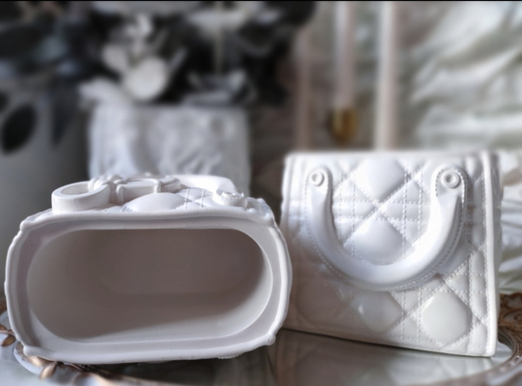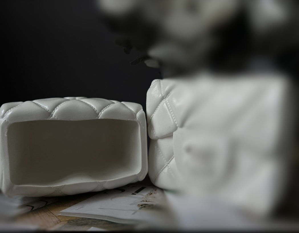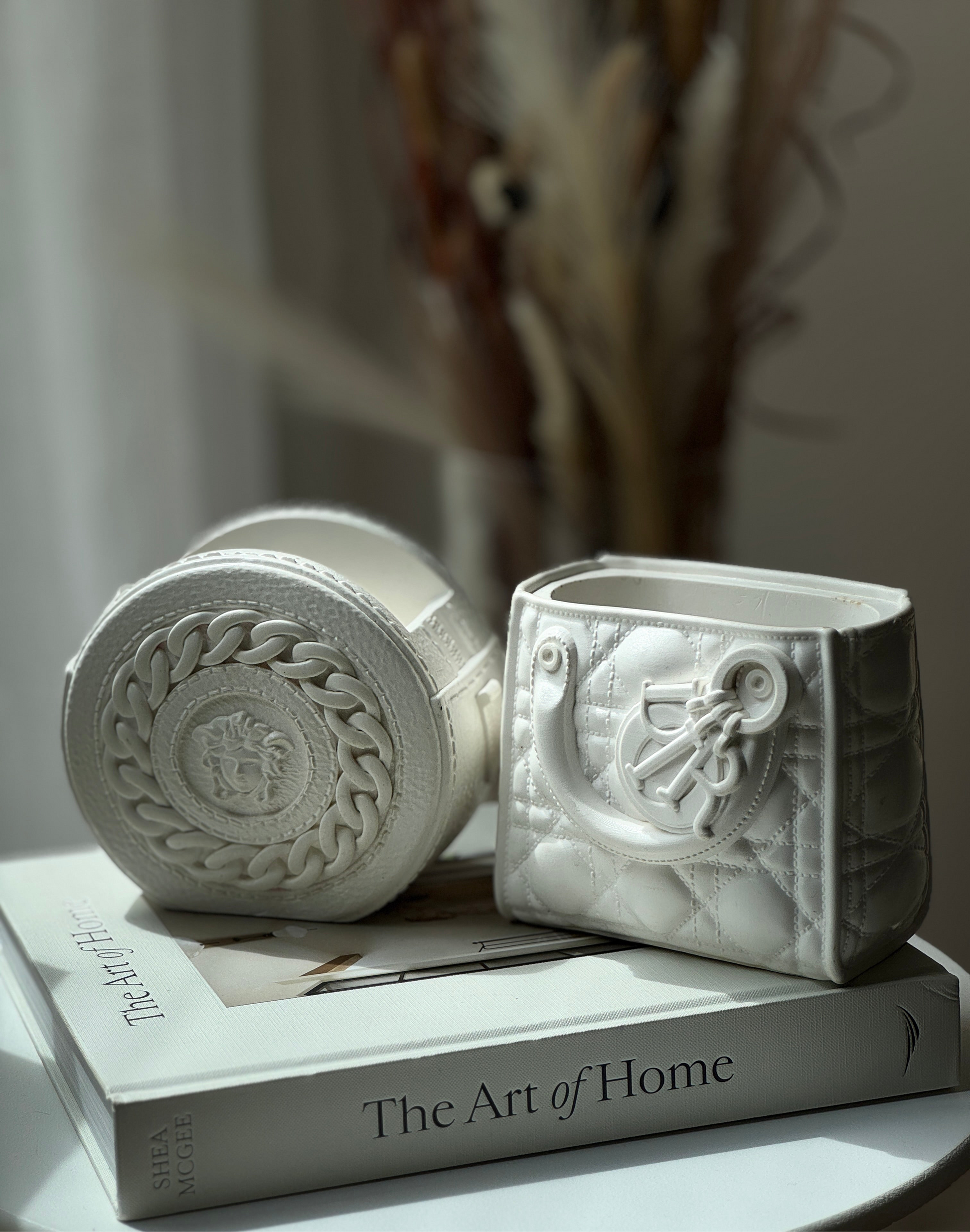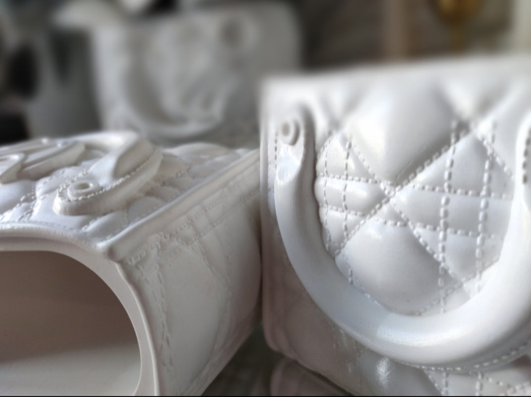 A collection of handmade vases inspired by couture accessories, reimagined as bold, sculptural home objects. Each piece is carefully crafted from eco-resin, making them durable, sustainable, and unique. Perfect as decorative accents, flower vases, or simply as artful statement pieces.
