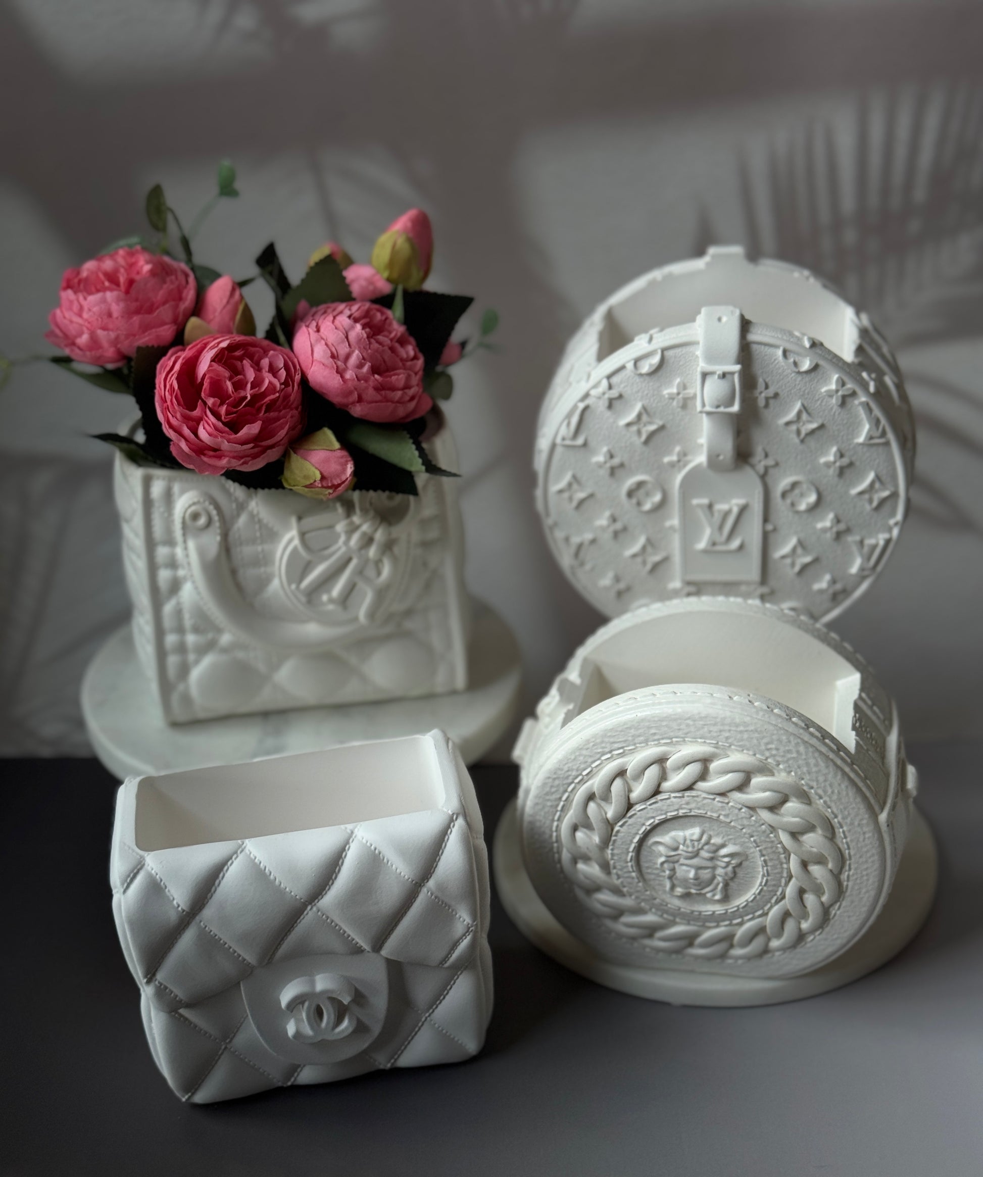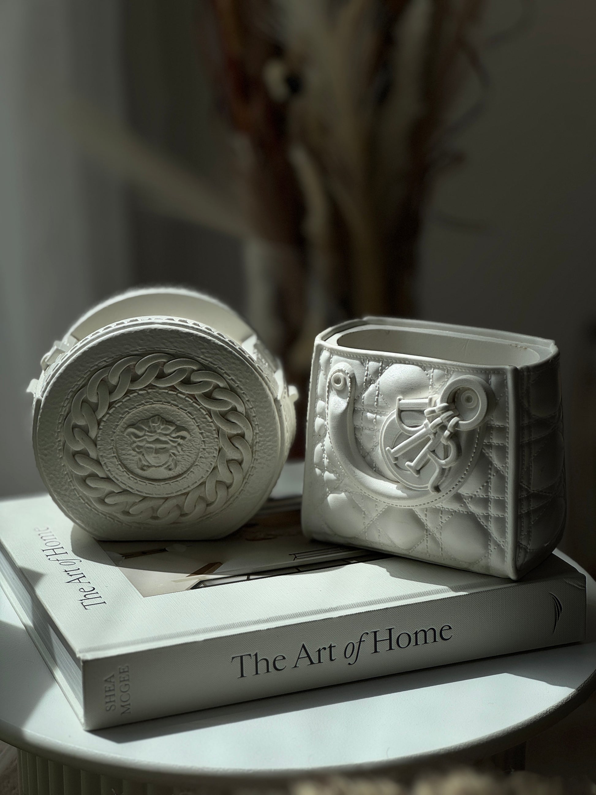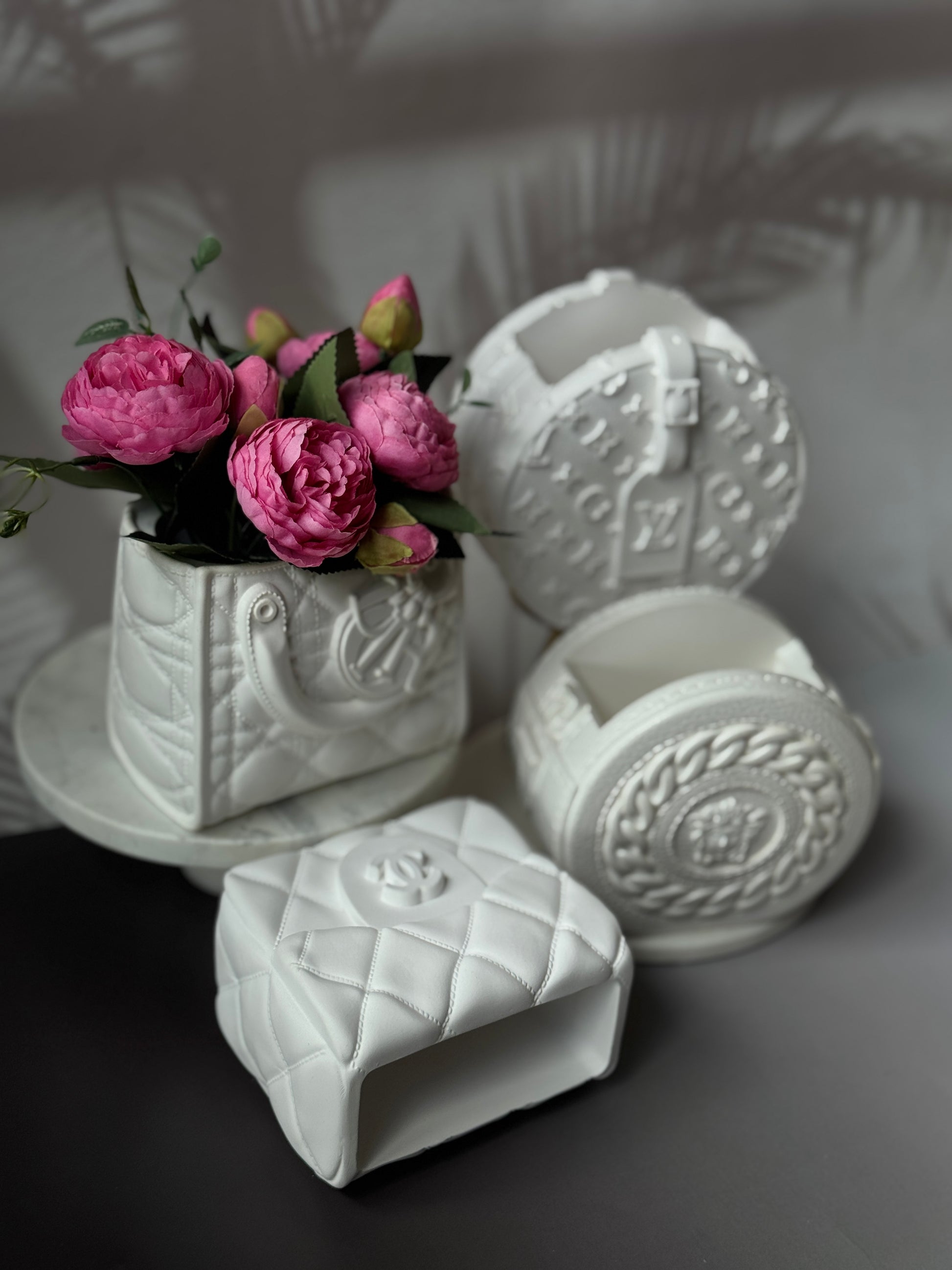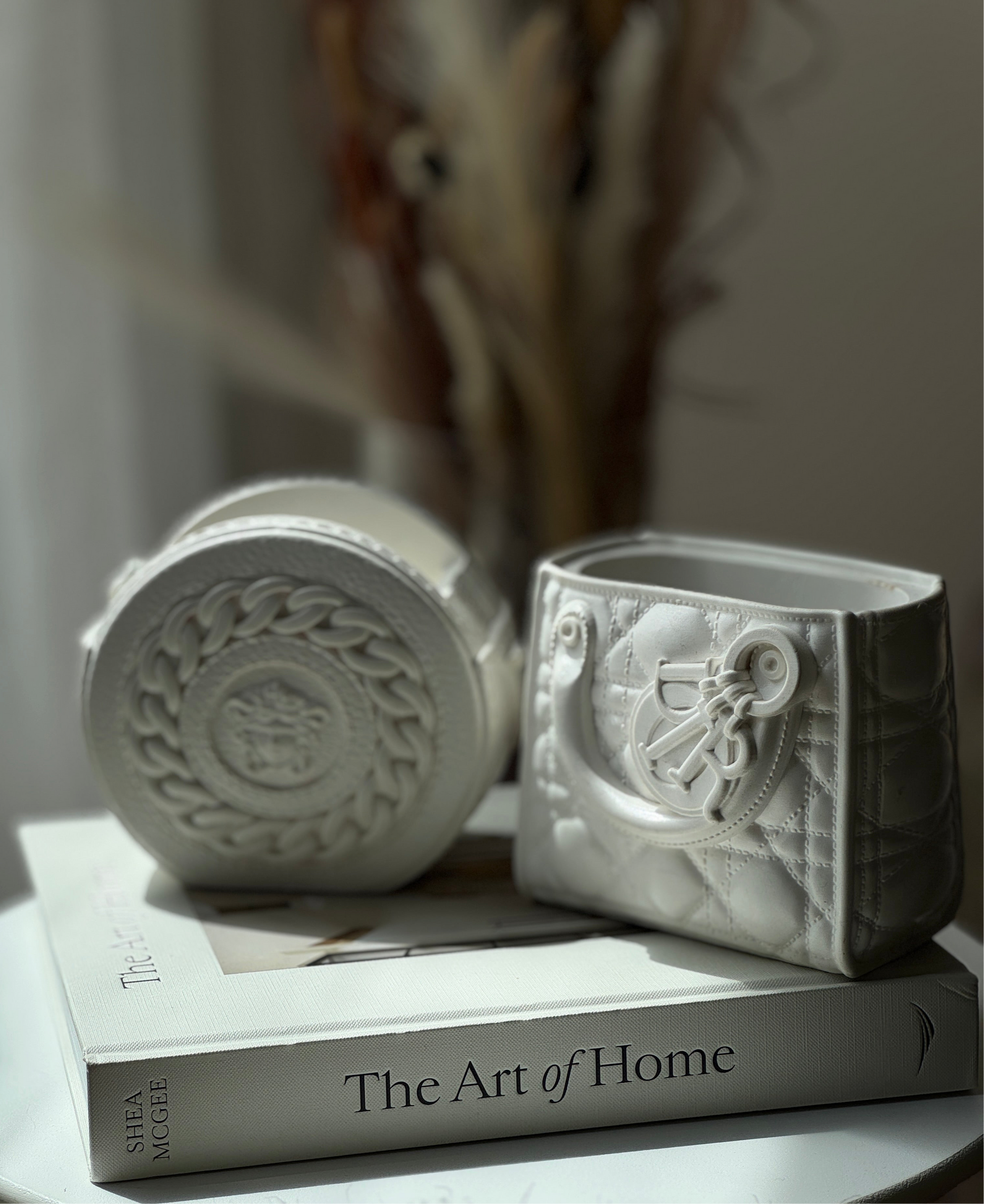 A collection of handmade vases inspired by couture accessories, reimagined as bold, sculptural home objects. Each piece is carefully crafted from eco-resin, making them durable, sustainable, and unique. Perfect as decorative accents, flower vases, or simply as artful statement pieces.