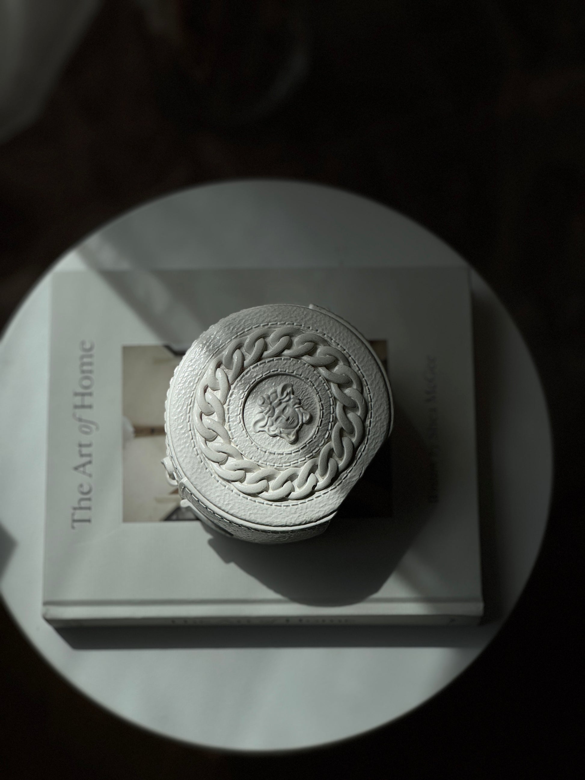With its bold circular silhouette and detailed chain relief, Nero brings strength and elegance into your space.
