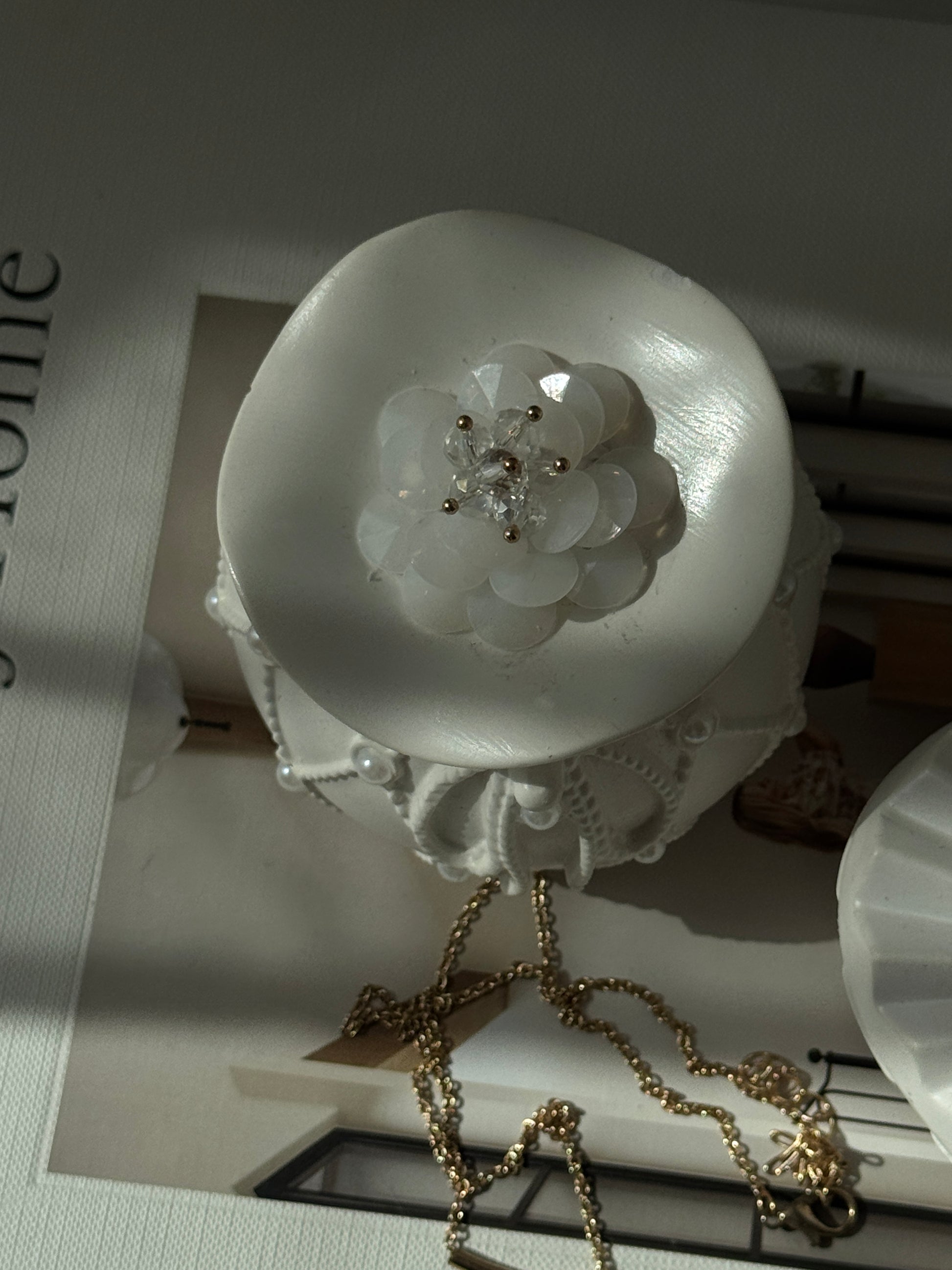 - Embellishments: Individually adorned with floral and pearl décor by hand