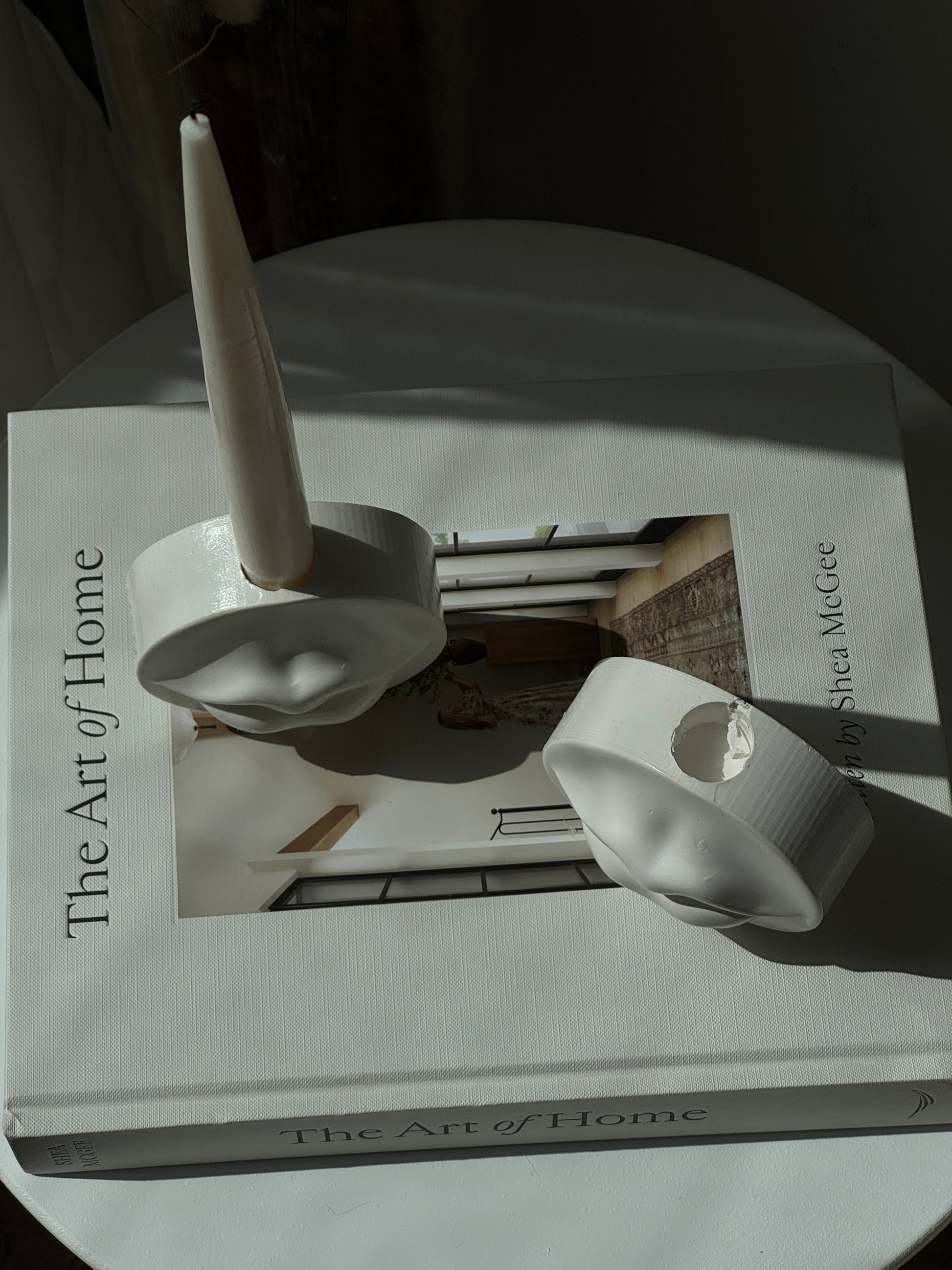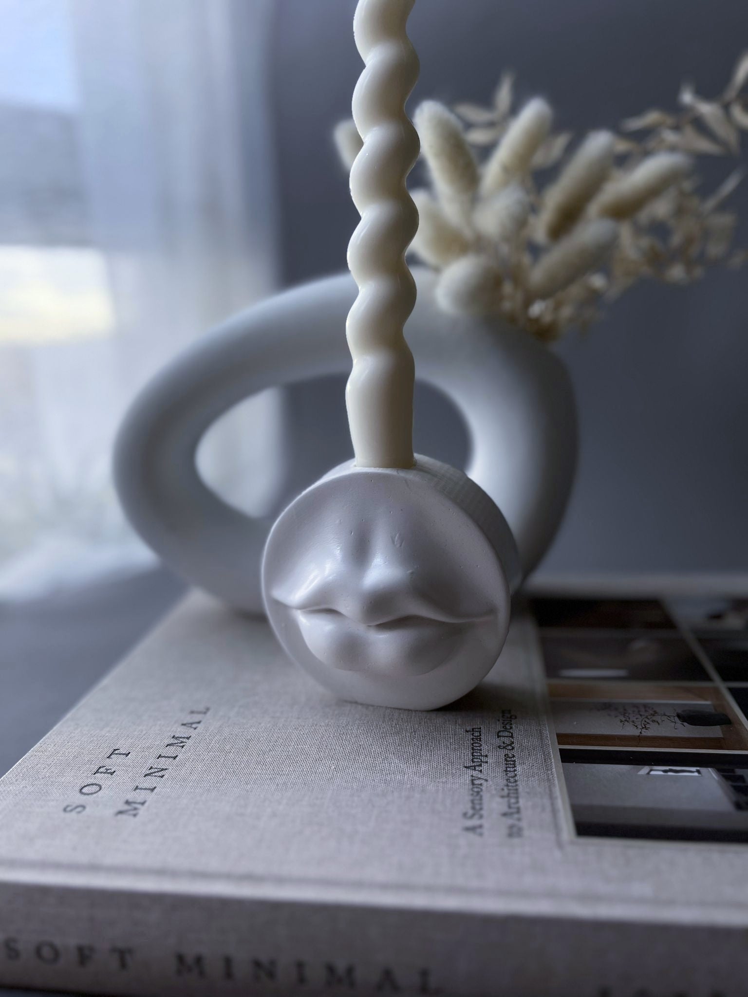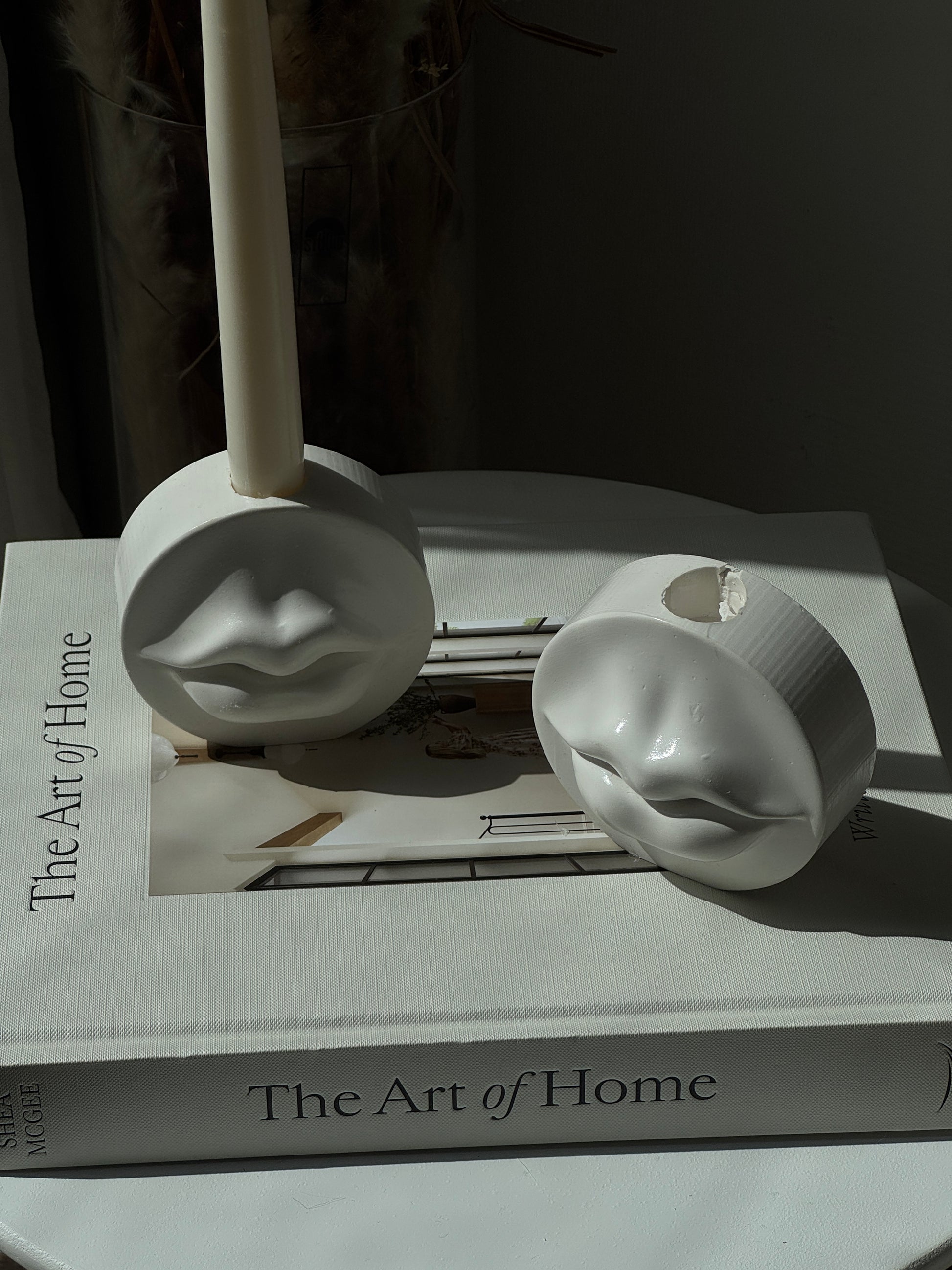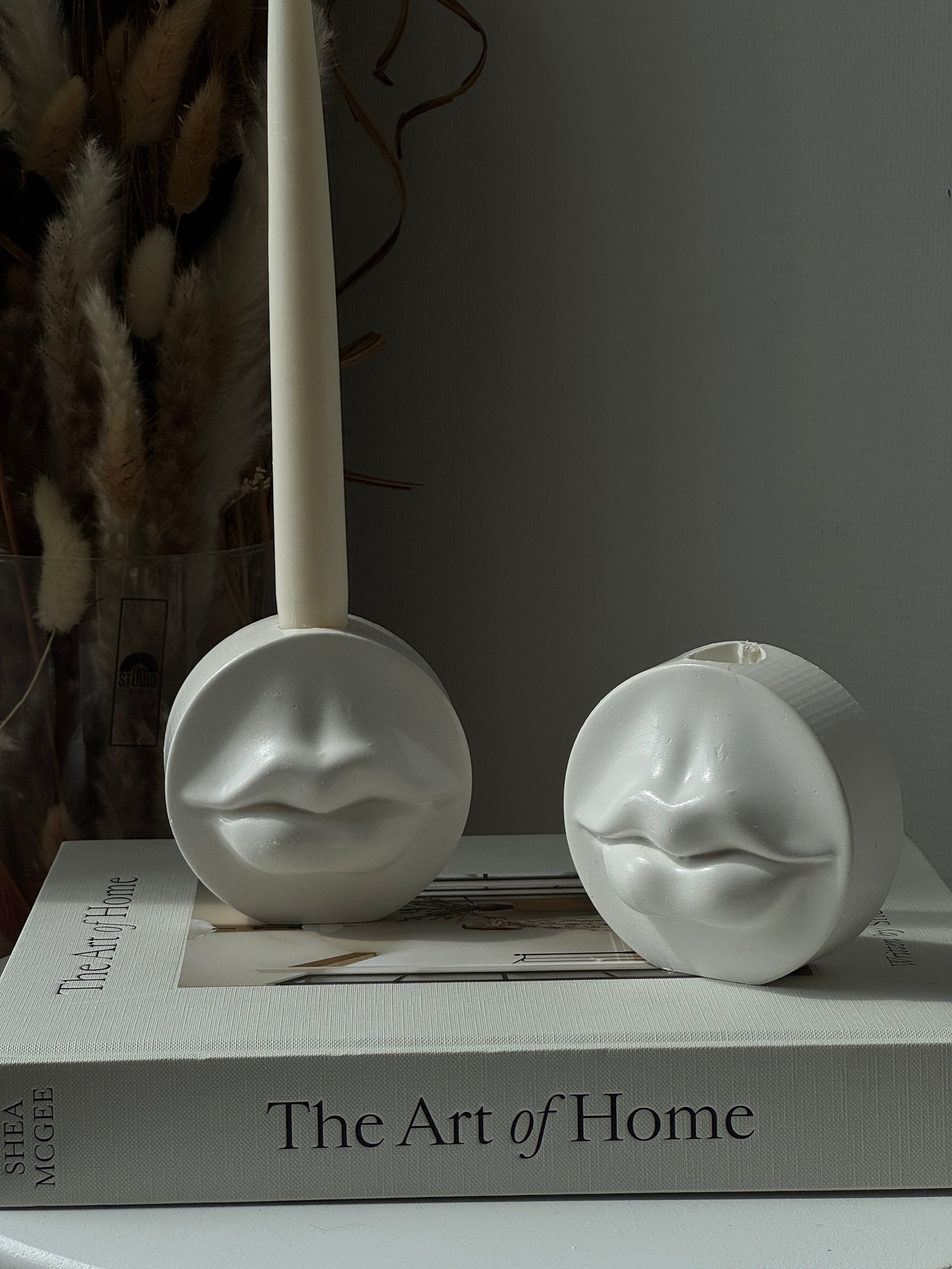 The Muse Lips holders make a striking statement — playful, bold, and sculpturally refined. With their full lips embossed on a circular form, they add a modern, artistic flair to your space. Perfect for taper candles or simply as decor objects, they embody charm and character in every curve.