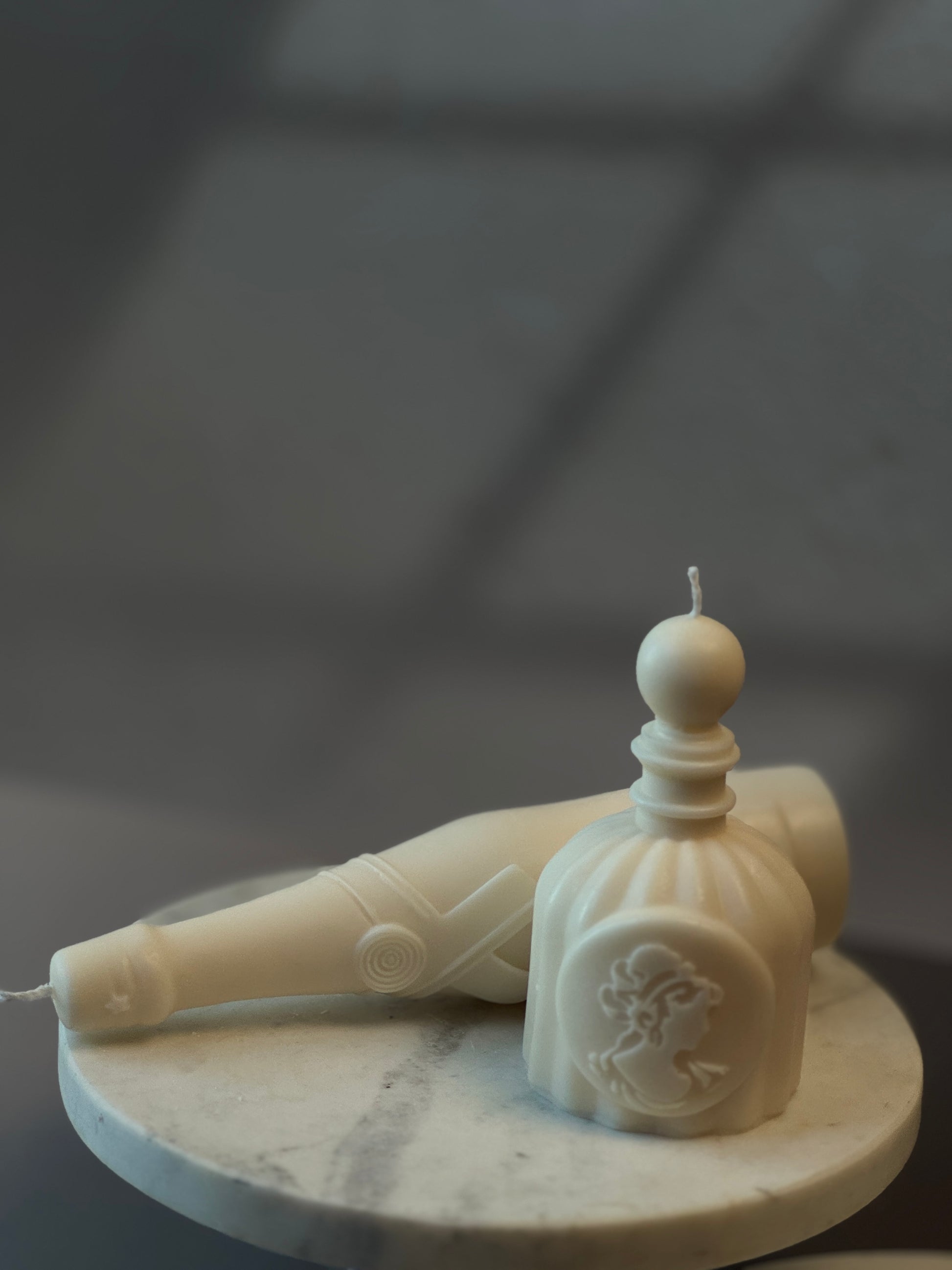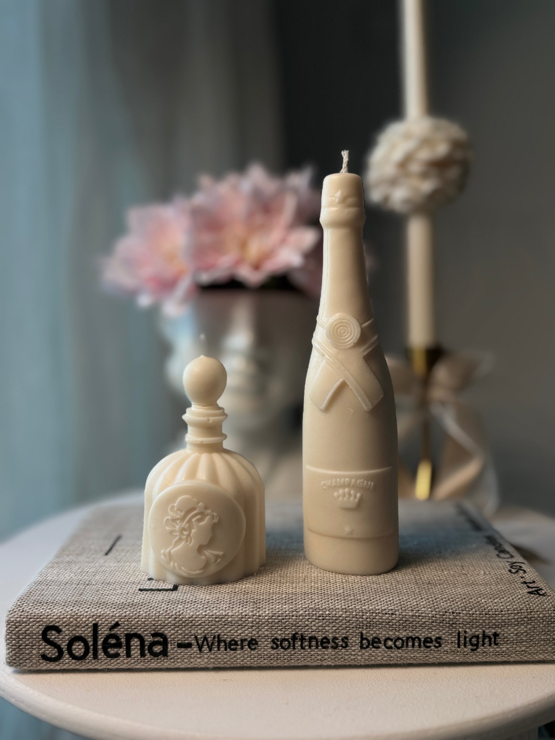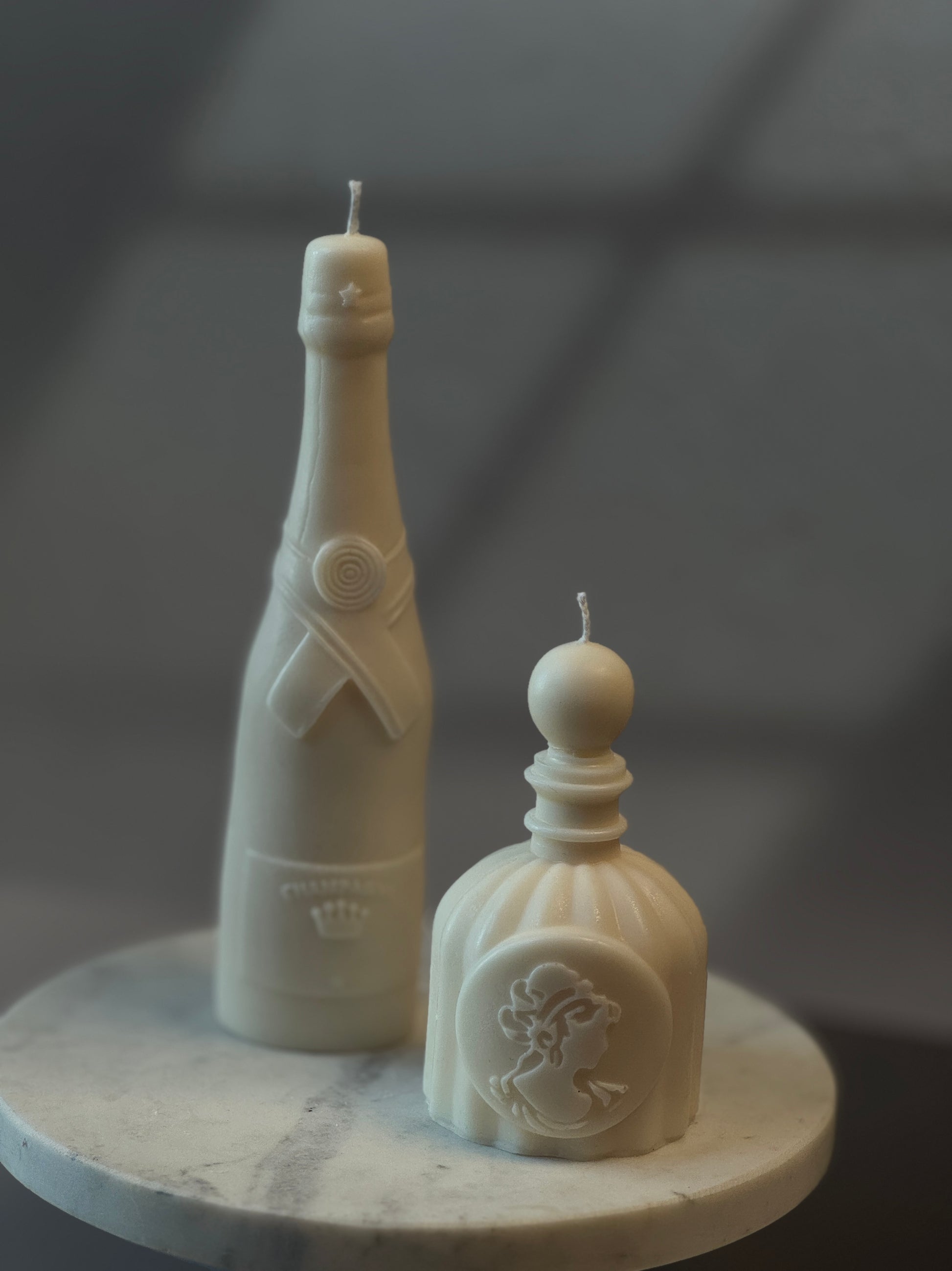 Parfum Bottle Candle 150 g | 11 × 6 cm A delicate, vintage-inspired parfum bottle shape, this candle adds a touch of timeless beauty and charm. Hand-poured with natural soy wax, it’s a perfect accent for vanities, shelves, or thoughtful gifts.