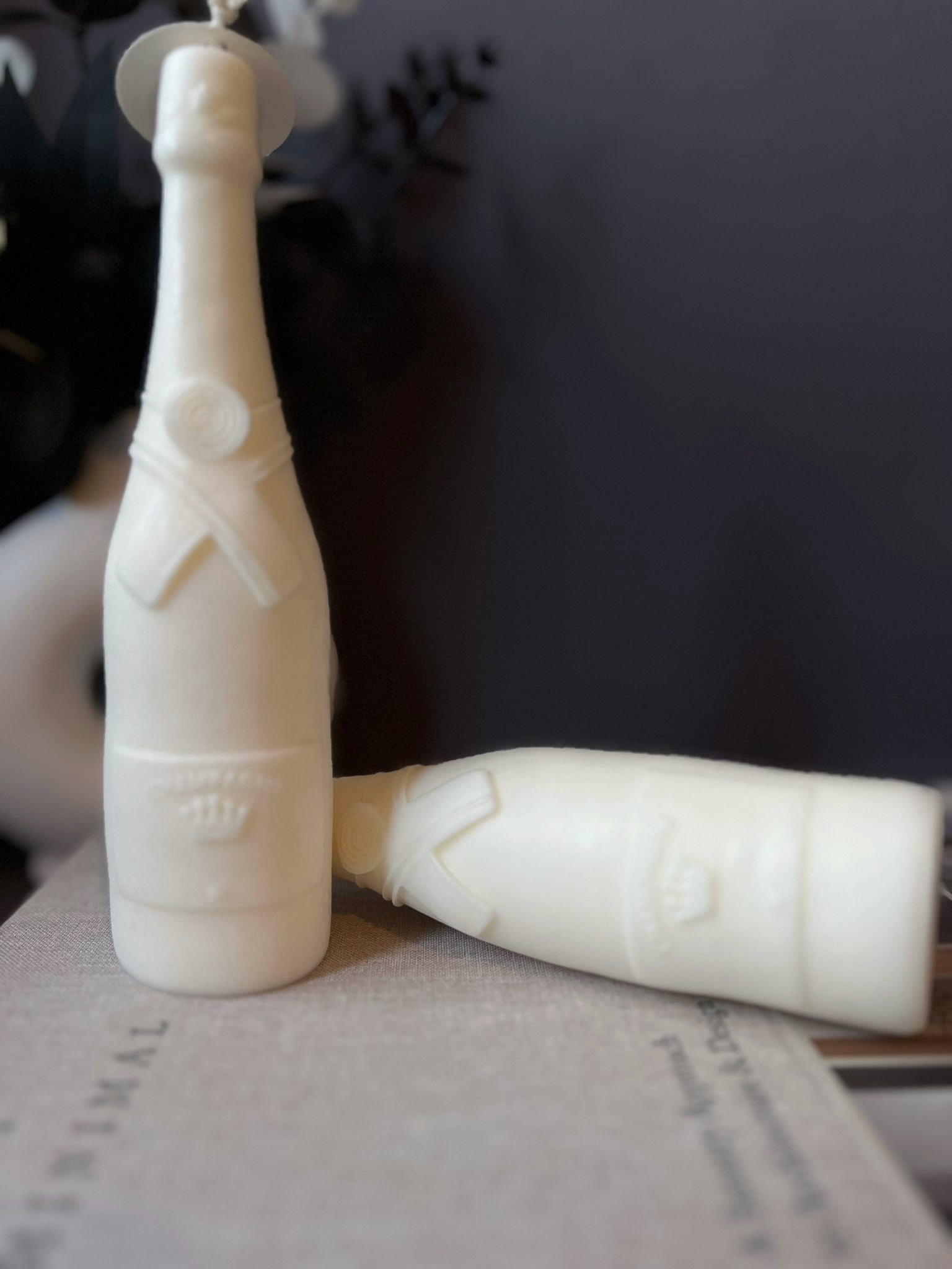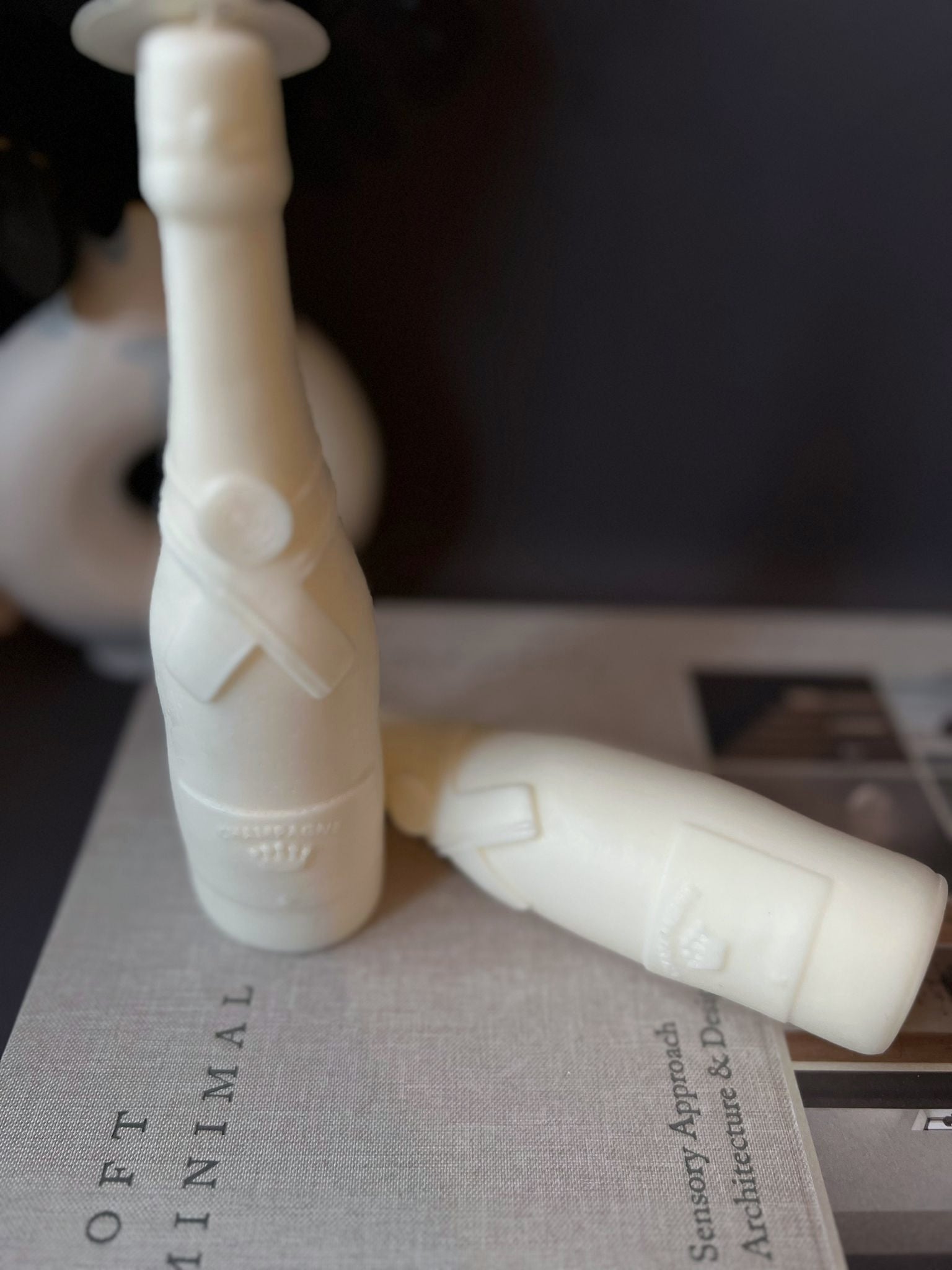 Champagne Bottle Candle 215 g | 20 × 5 cm Celebrate in style with this chic champagne bottle candle. Its graceful silhouette and smooth wax finish make it a festive, eye-catching piece — ideal for special occasions or as a playful, luxurious decor detail.