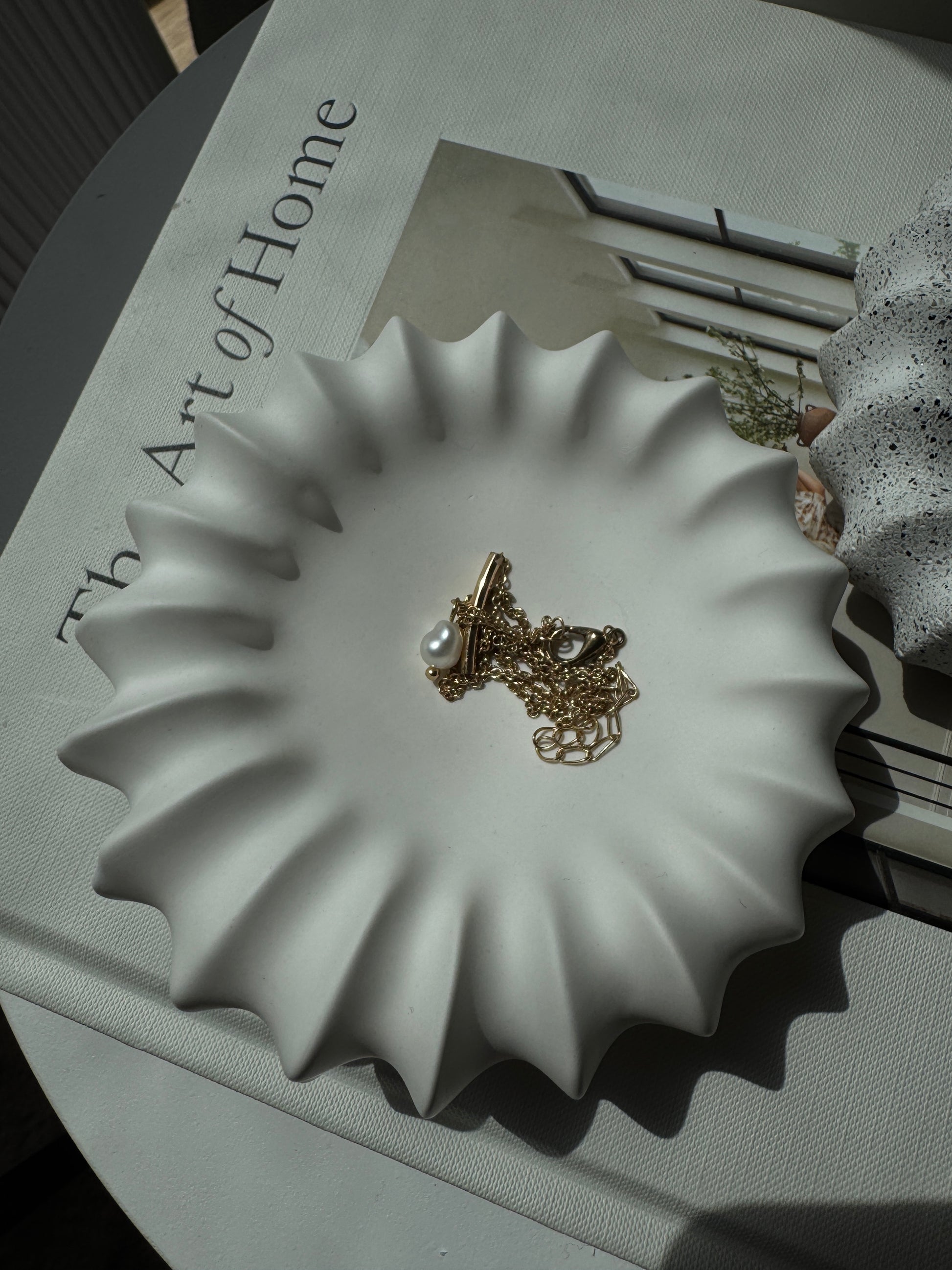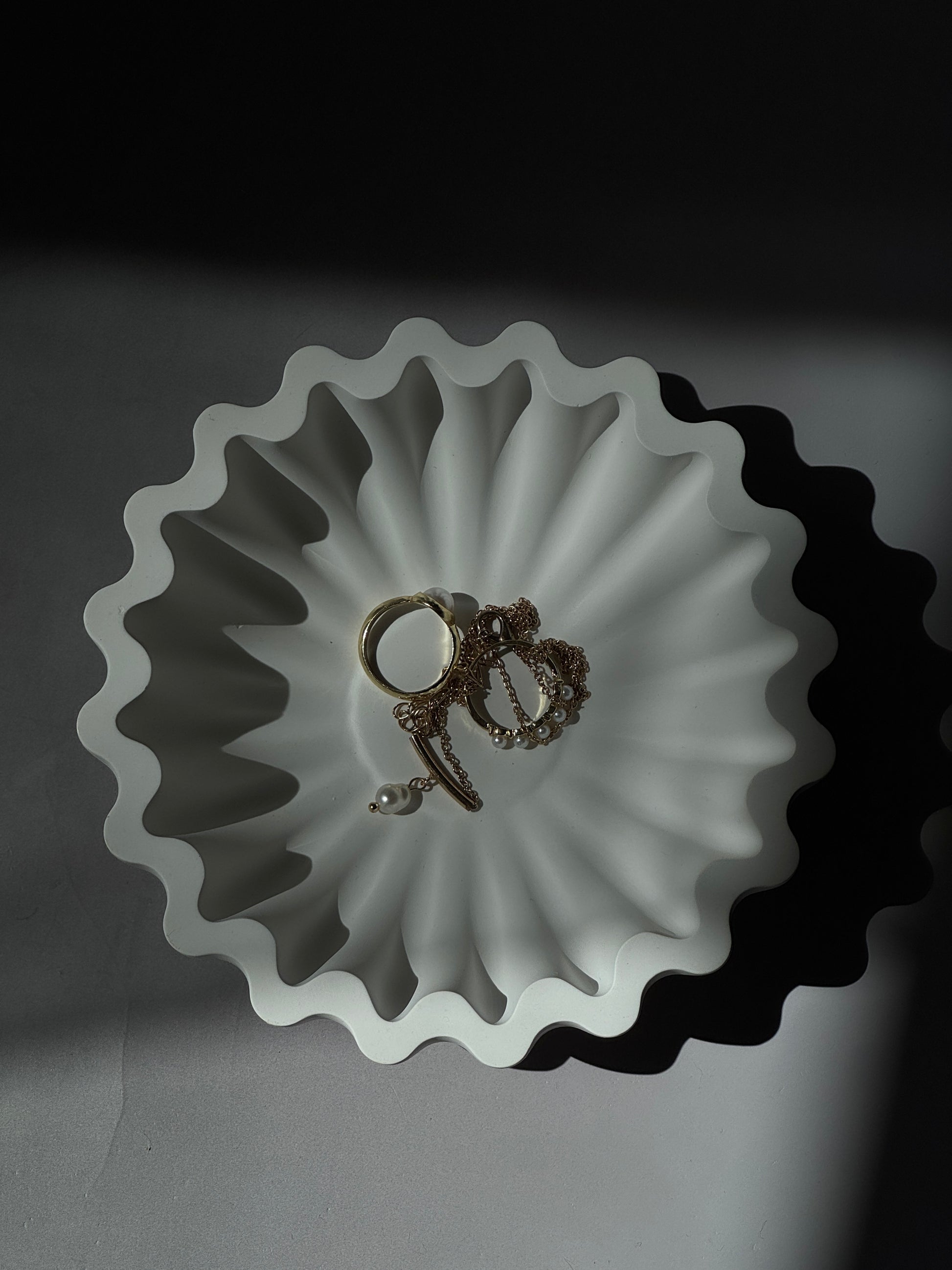 A delicate version of our signature ripple design, the Luma Bowl offers understated charm for bedside tables, vanities, or gift sets. Perfect for rings, pearls, or a minimalist touch of decor.