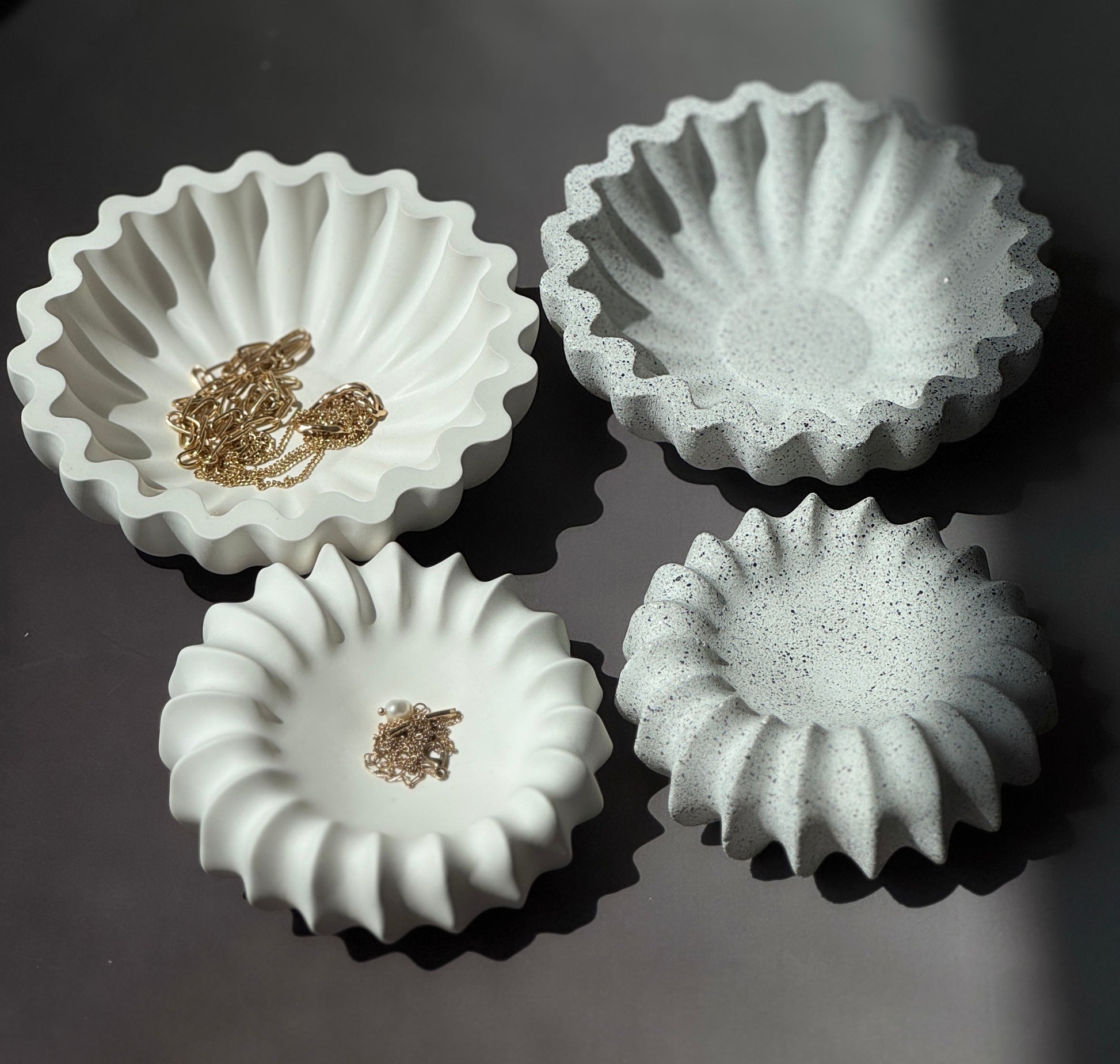 Vela & Luma Bowls – Ripple-Edge Sculptural Trays