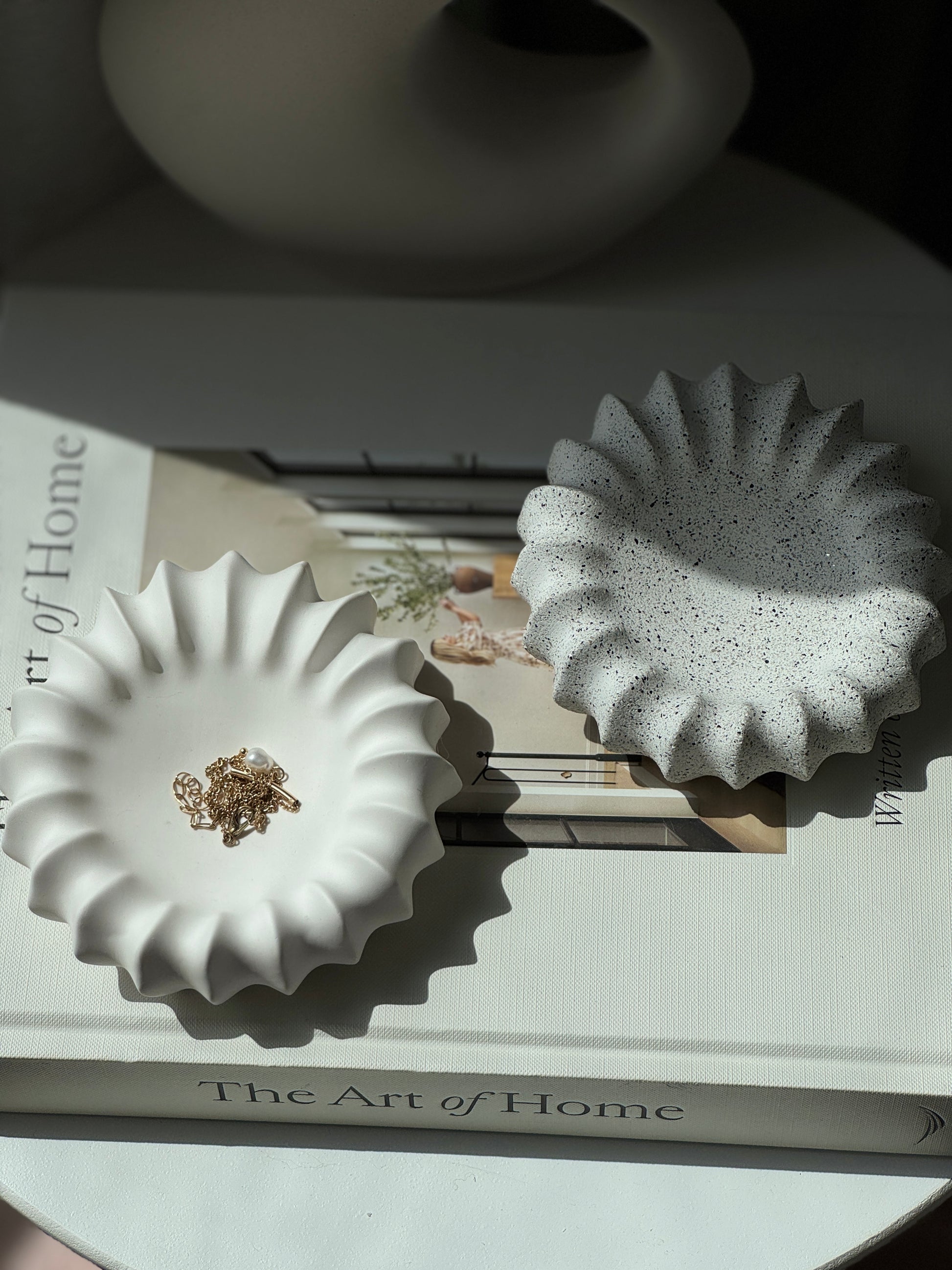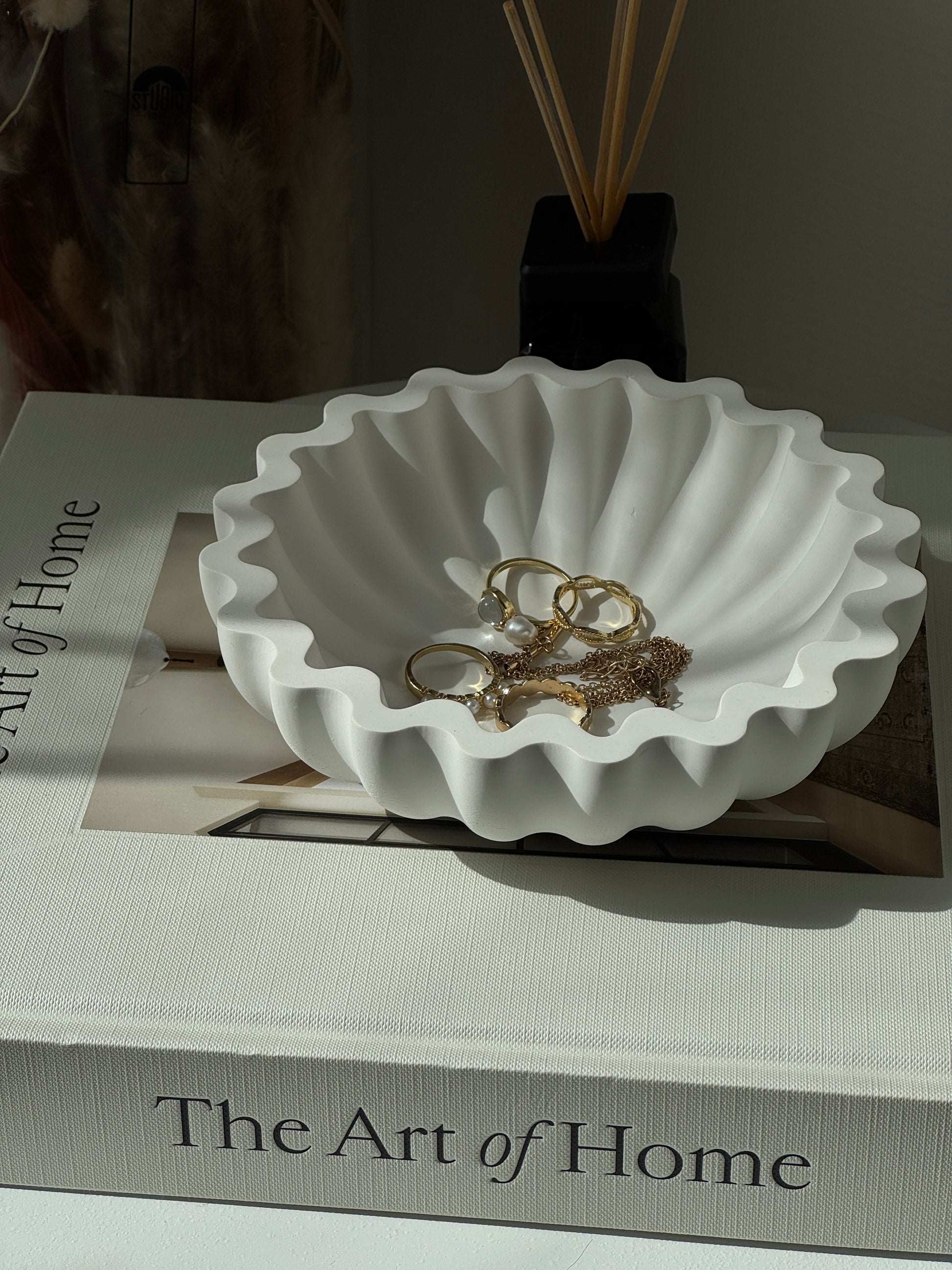 A sculptural centerpiece with deep curves and flowing edges. Ideal for storing keys, accessories, or as a standalone decorative object. Elegant and bold, it complements modern and organic interiors alike.