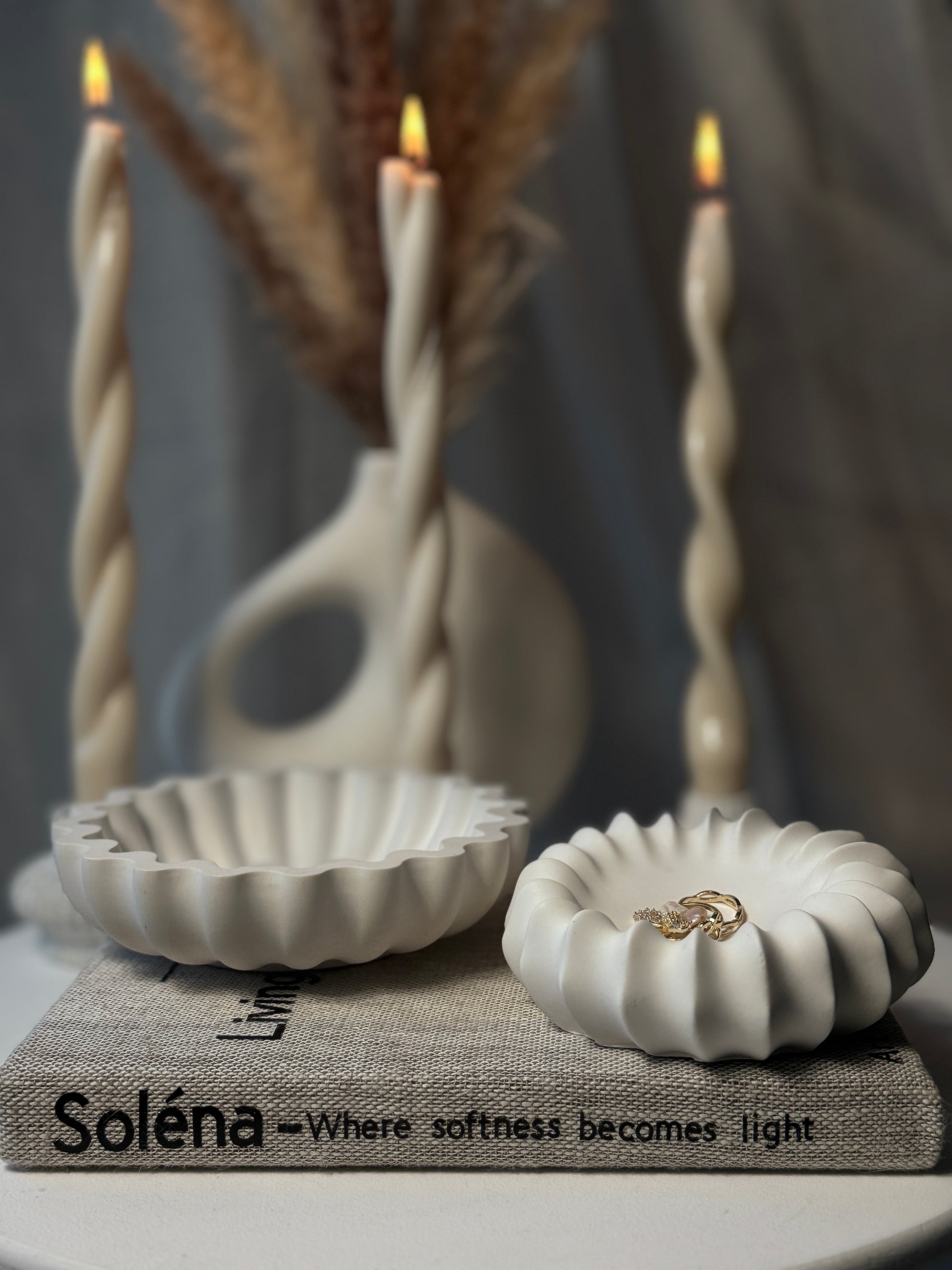 Vela & Luma Bowls – Ripple-Edge Sculptural Trays