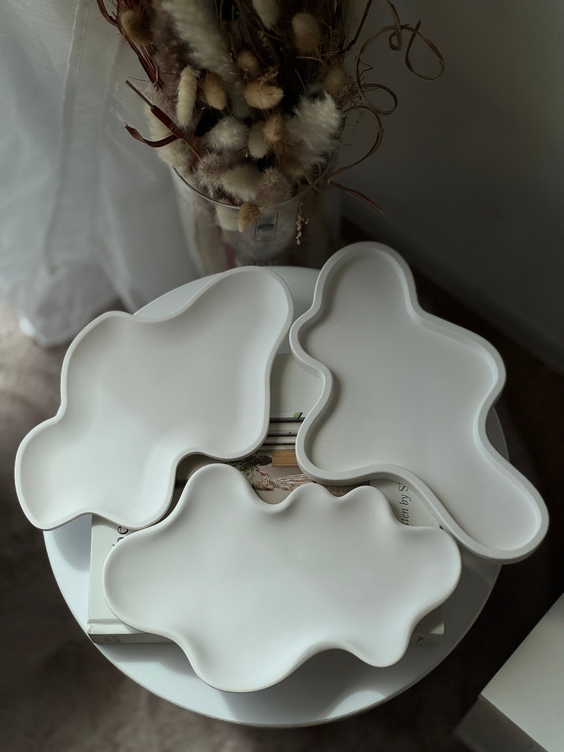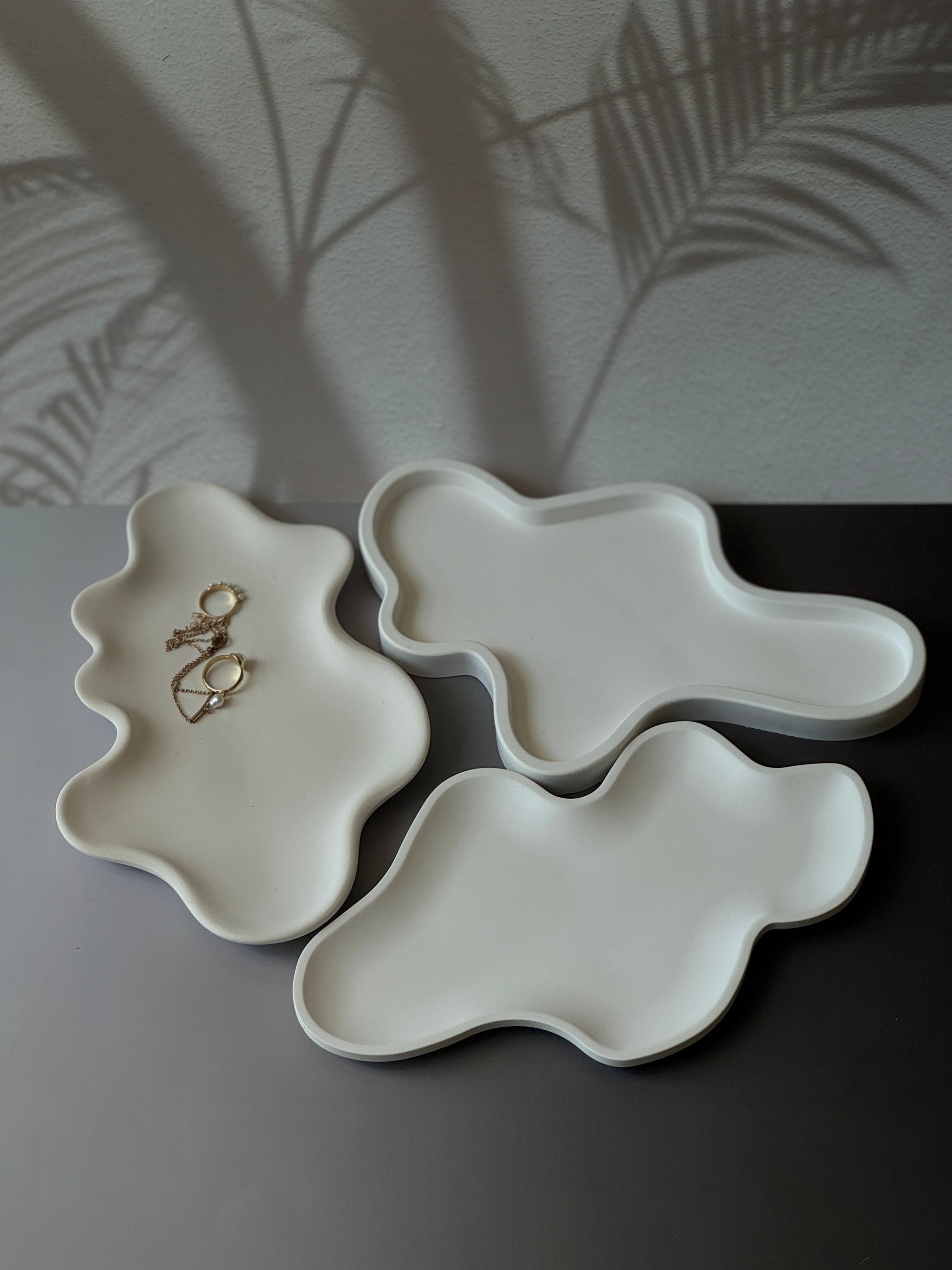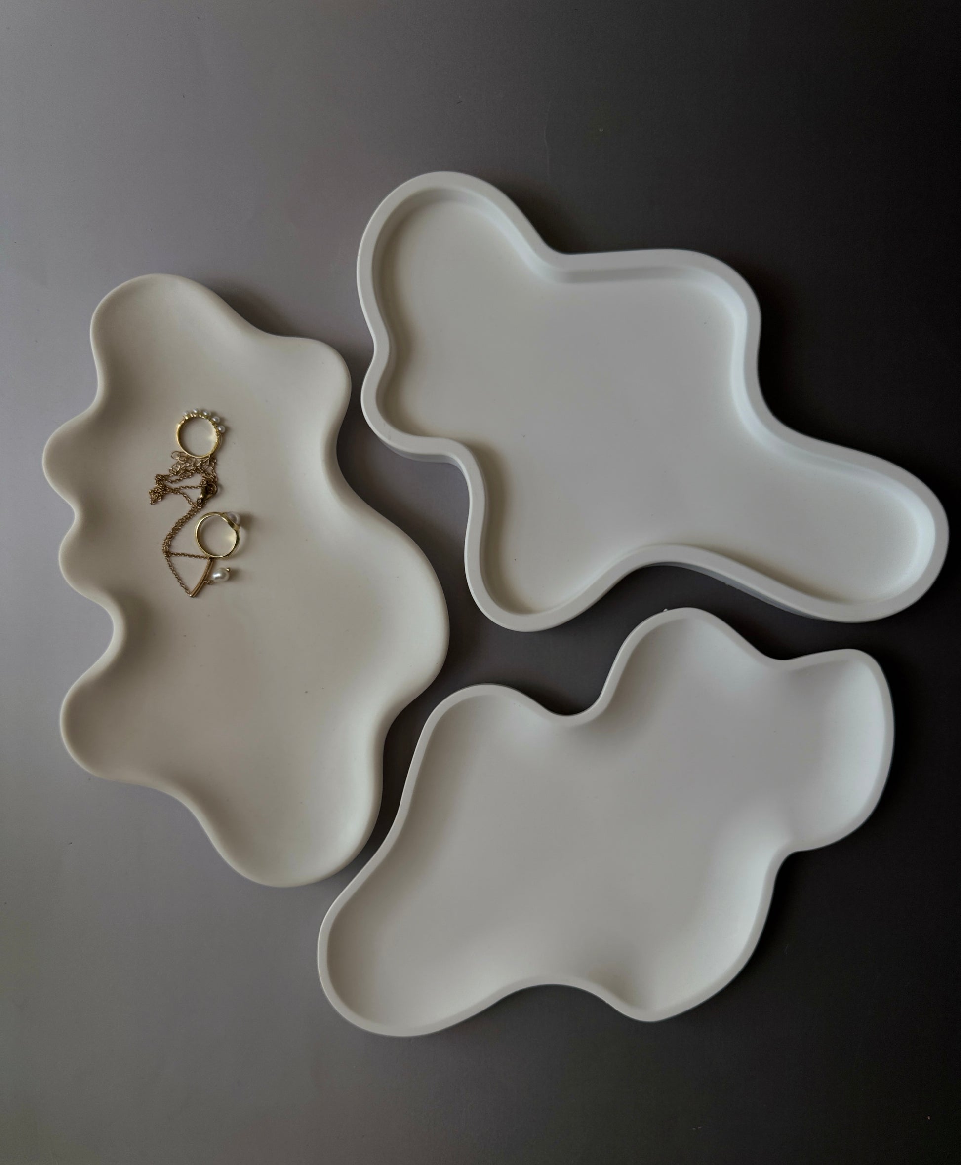 Sculptural, organic, and handmade — this trio of trays brings soft movement and functional art into your space.