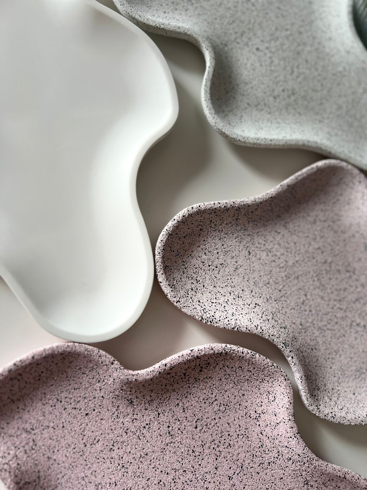 Available in: Ivory (jesmonite), white(porcelain),black(jesmonite), granite(jesmonite)
